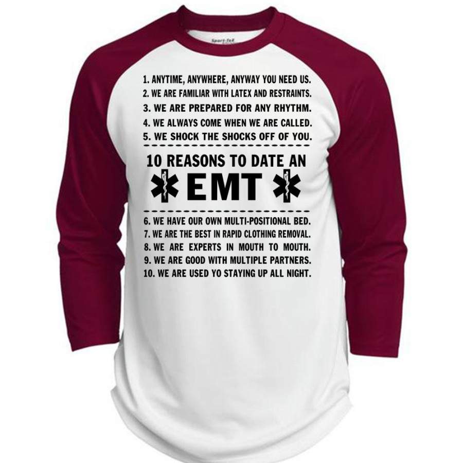 10 Reasons To Date An EMT T Shirt, I Love Doctor T Shirt, Awesome T-Shirts (Polyester Game Baseball Jersey)