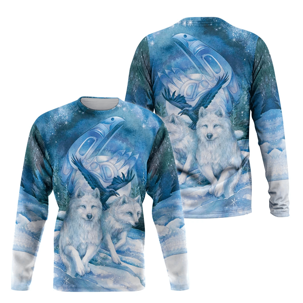 3D All Over Printed Picturesque Couple Of White Wolves In Snow Night Shirt