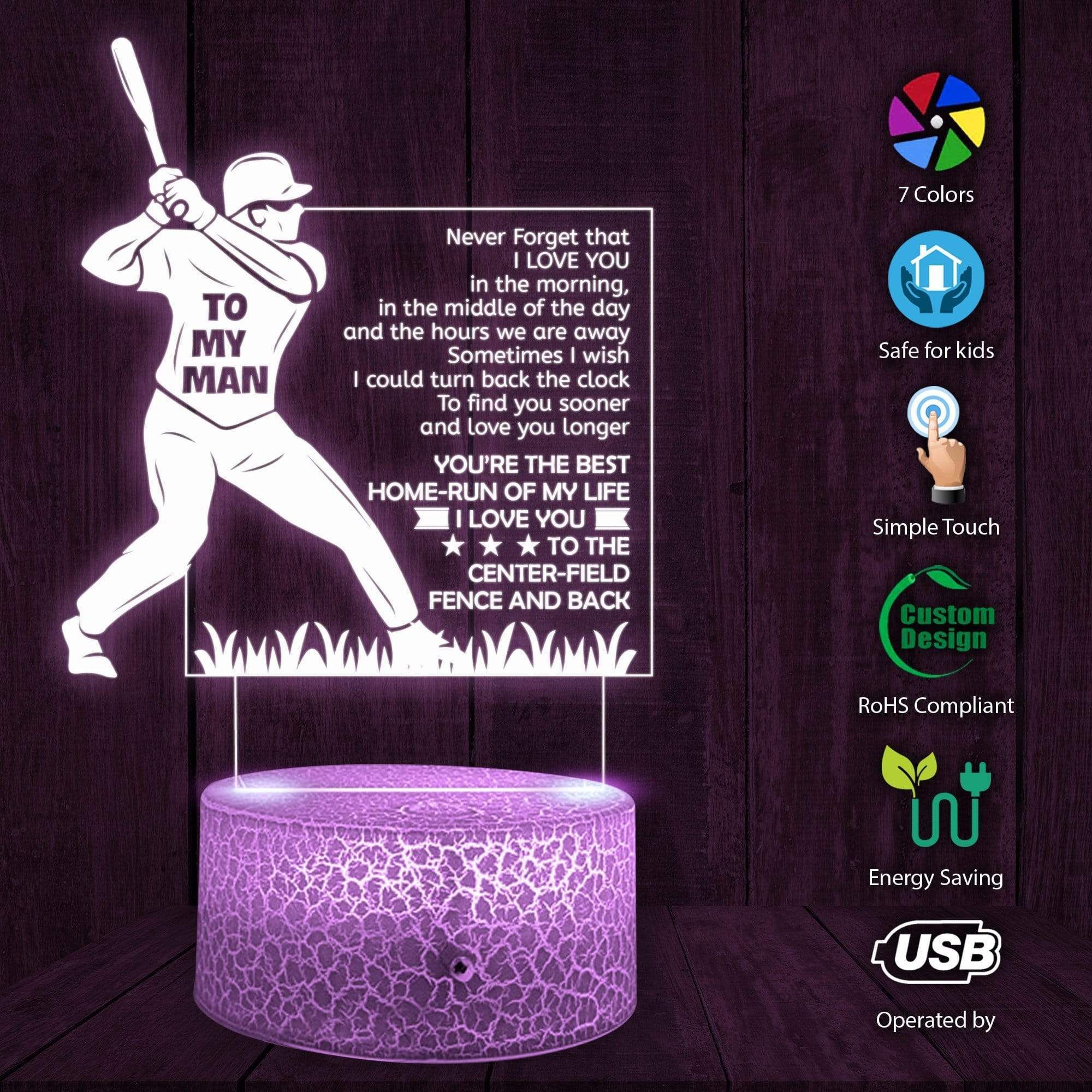 3D Illusion Night Light Led Light To Baseball Man Never Forget That I Love You