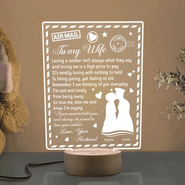 So whether you're looking to show off your own name or create a personalized gift for someone special, LateAndLow Store has got you covered. Start designing your own custom 3D Led Lamp To My Wife Soldier Couple print-on-demand product today, and let us bring your vision to life!