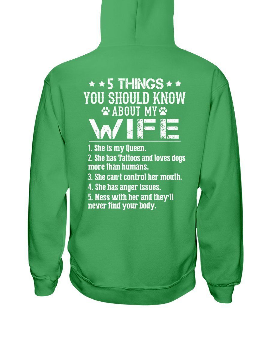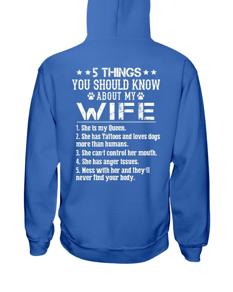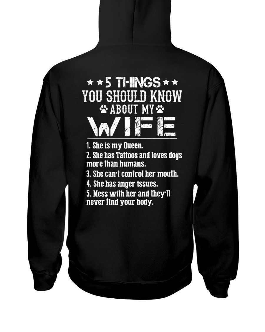 So whether you're looking to show off your own name or create a personalized gift for someone special, LateAndLow Store has got you covered. Start designing your own custom 5 Things About My Wife Has Tattoos Loves Dogs More Than Humans Hoodie print-on-demand product today, and let us bring your vision to life!
