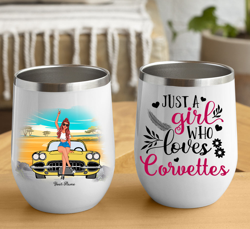 89Customized Just A Girl Who Loves Her Corvette Customized Wine Tumbler