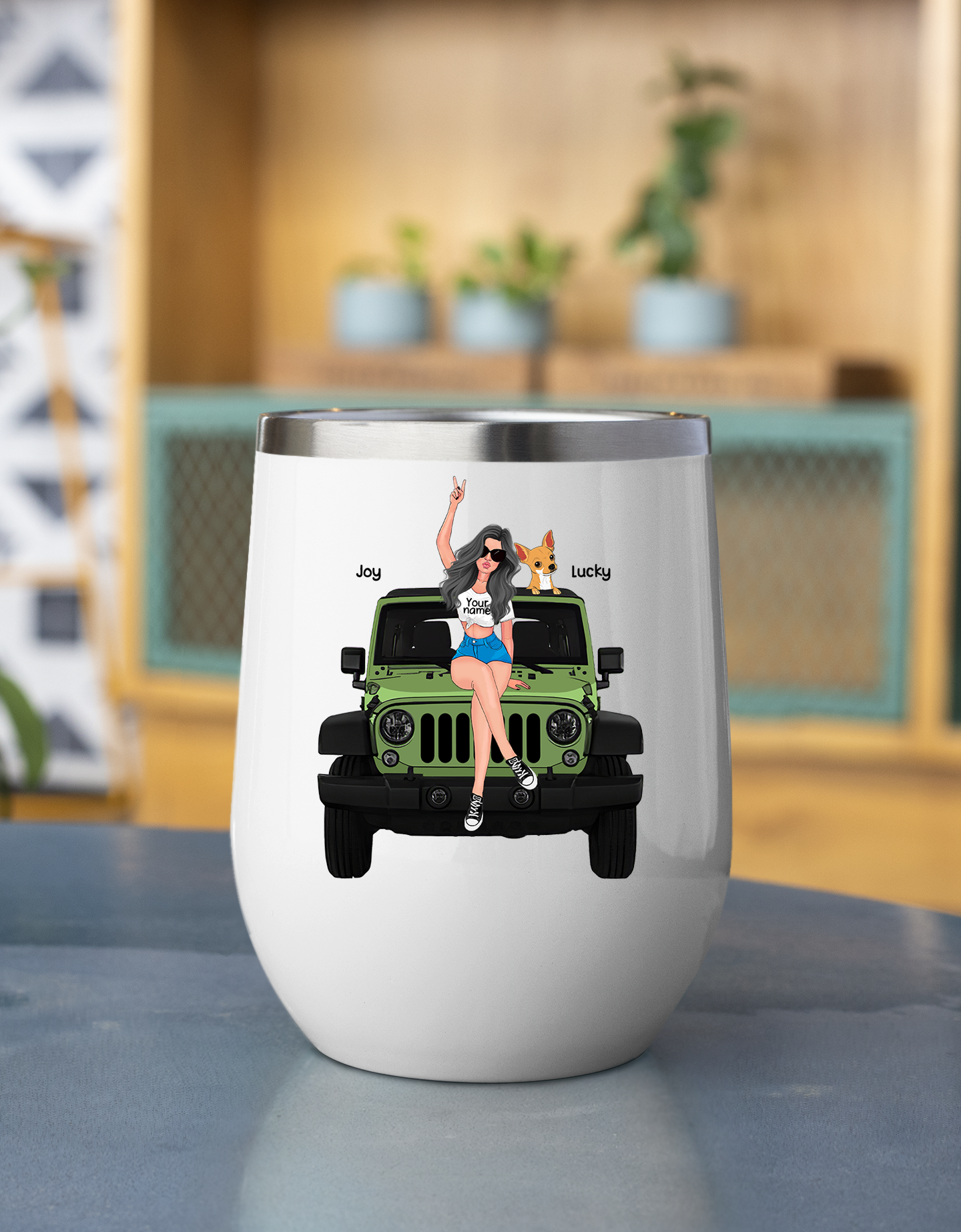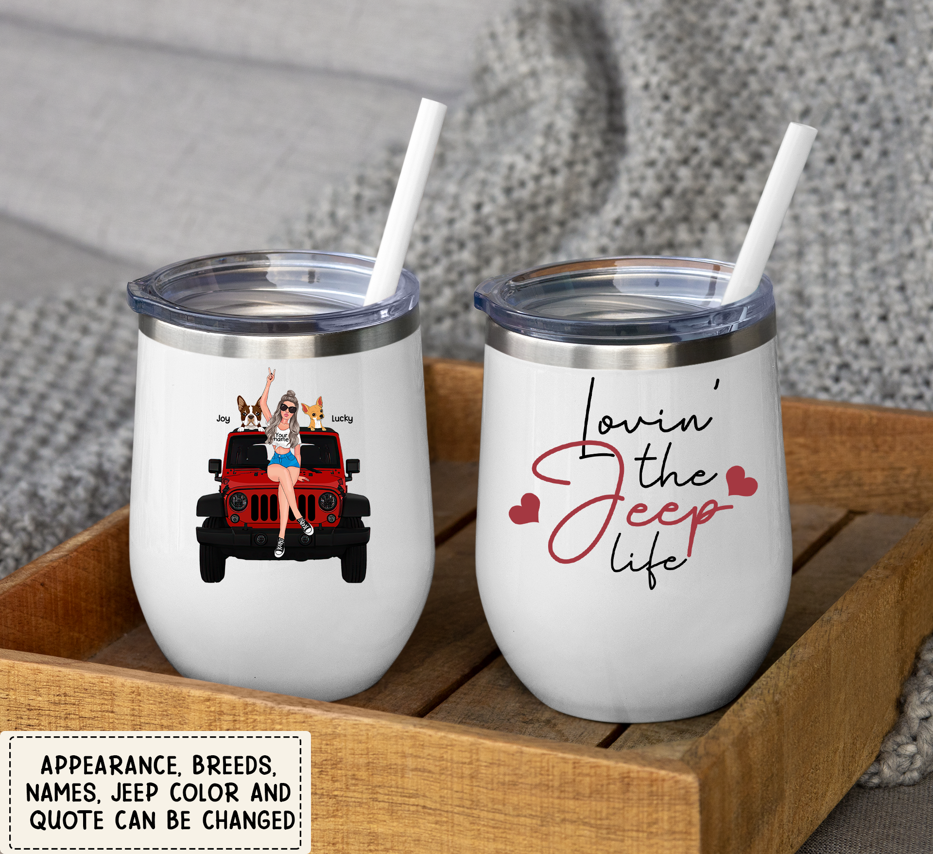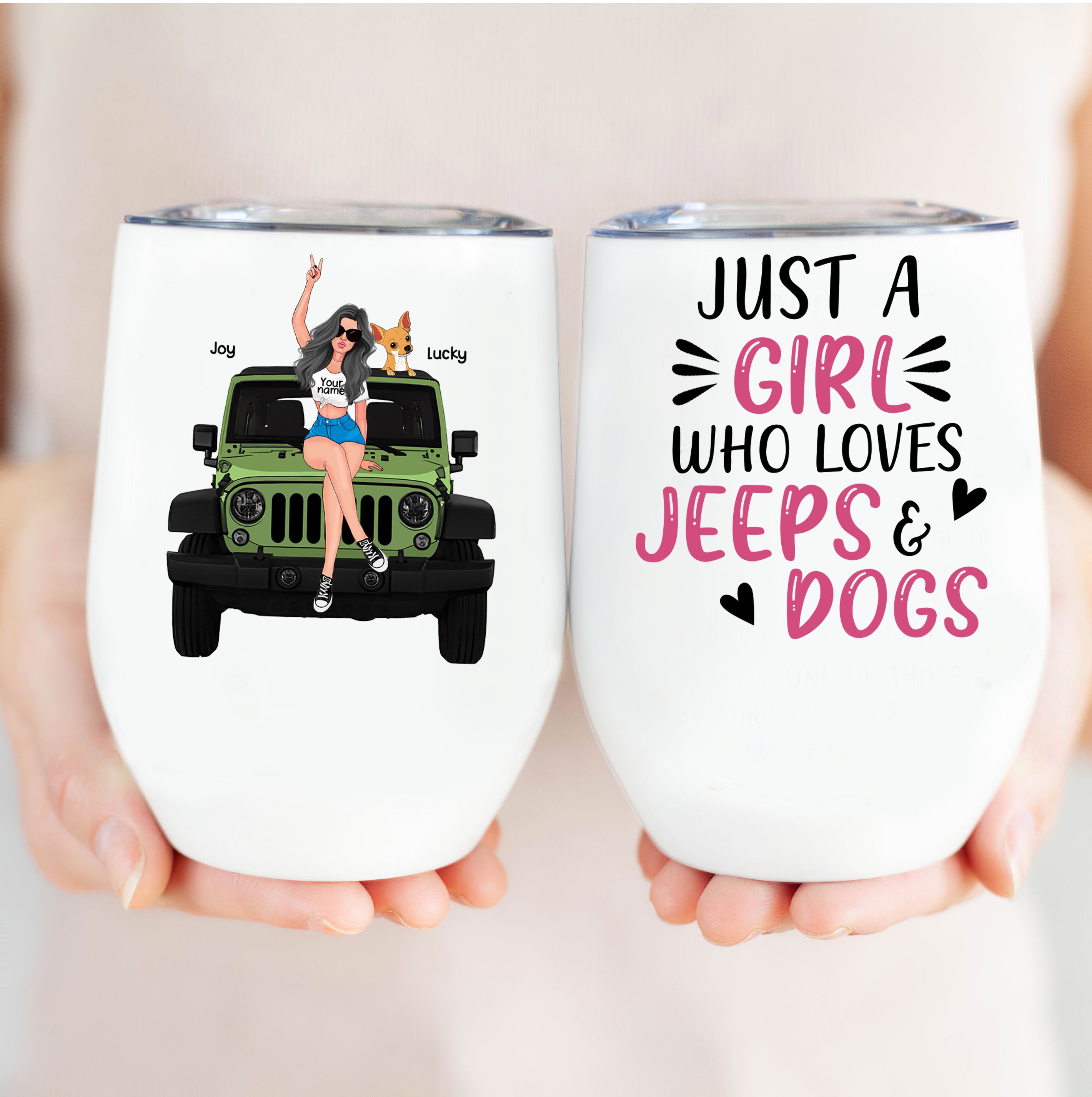 89Customized Just A Girl Who Loves Jeep And Dogs Personalized (No Straw Included) Wine Tumbler