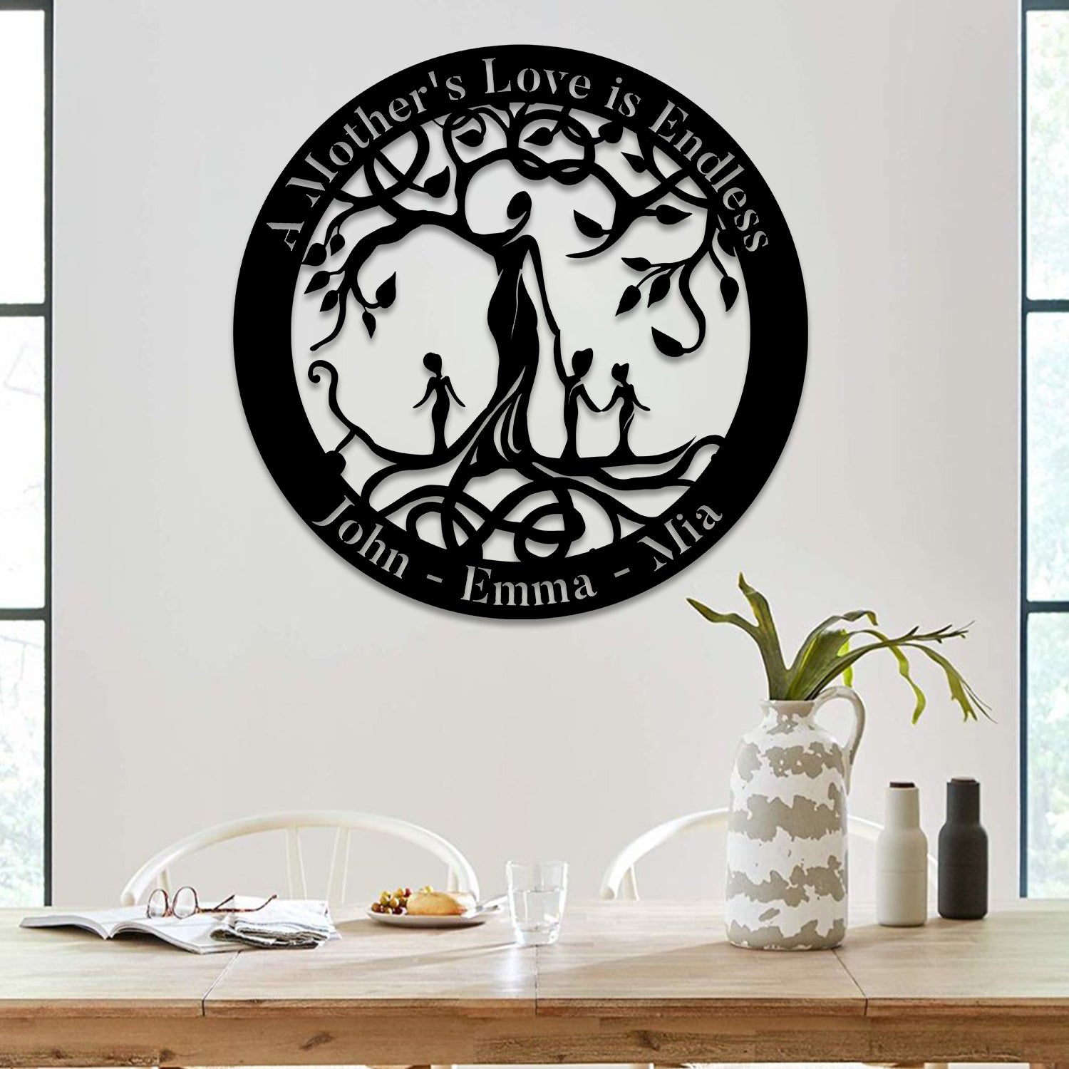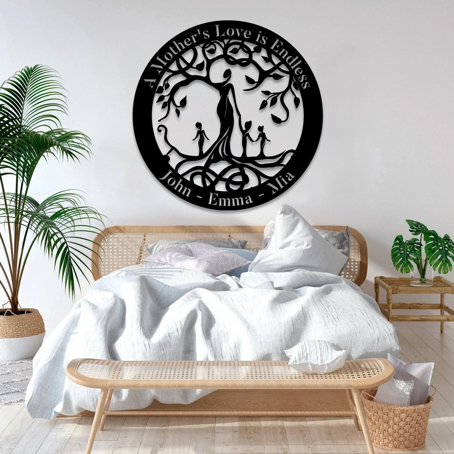 So whether you're looking to show off your own name or create a personalized gift for someone special, LateAndLow Store has got you covered. Start designing your own custom A Mother’S Love Is Endless Tree Of Life Metal Sign, Mother And Three Children Steel Wall Hanger print-on-demand product today, and let us bring your vision to life!