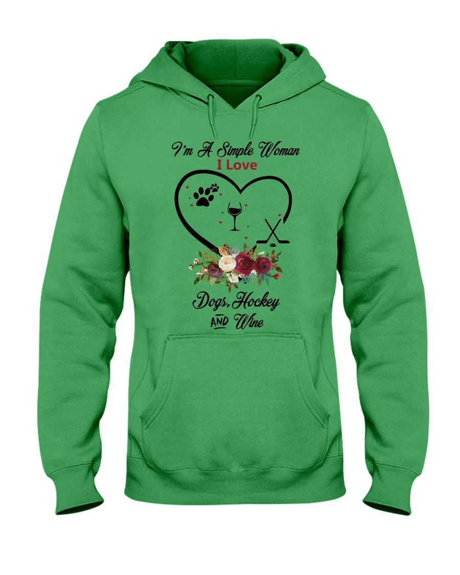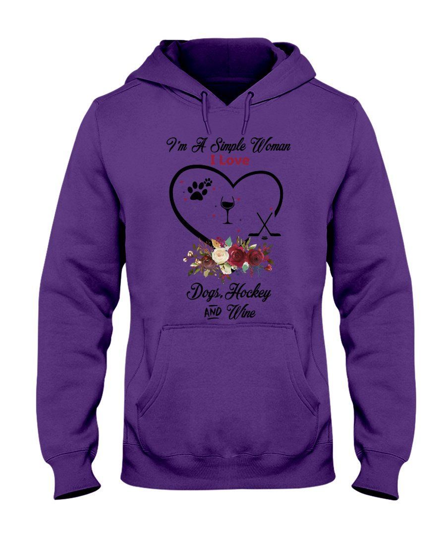 A Simple Woman Loves Dog Hockey And Wine Custom Design Hoodie