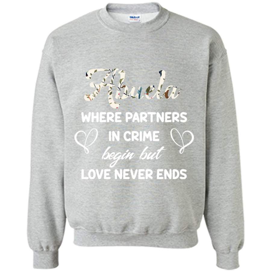 Abuela Where Partners In Crime Begin But Love Never Ends – Gildan Crewneck Sweatshirt