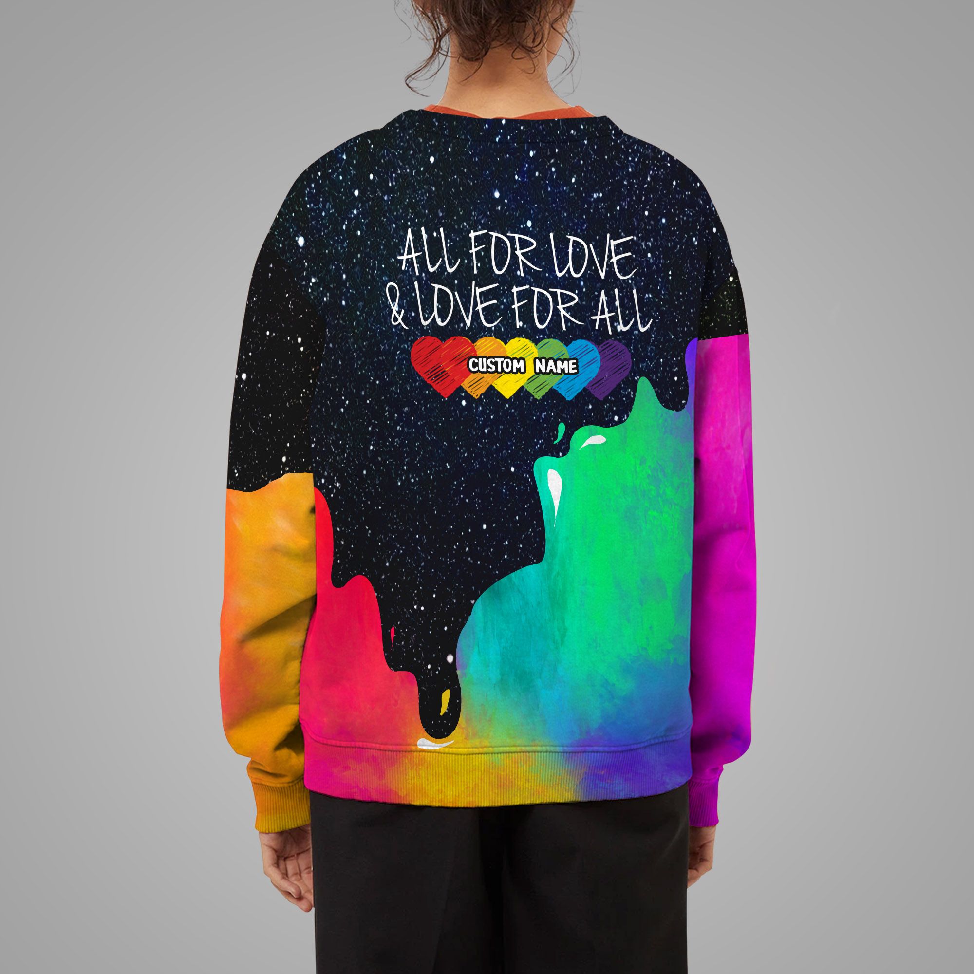 All For Love And Love For All Rainbow Painting Custom Name 3D Long Sleeve Shirt For LGBTQ Community