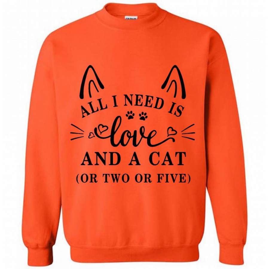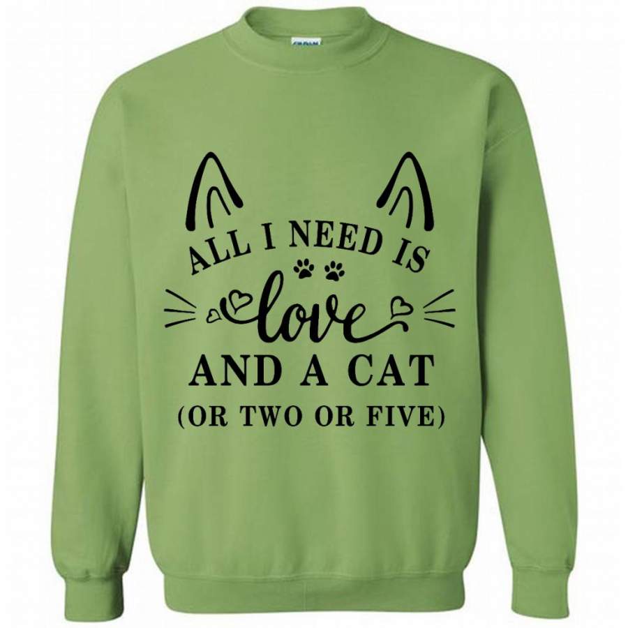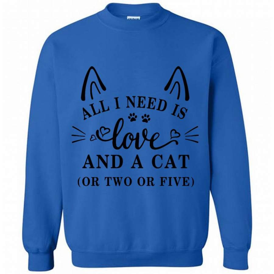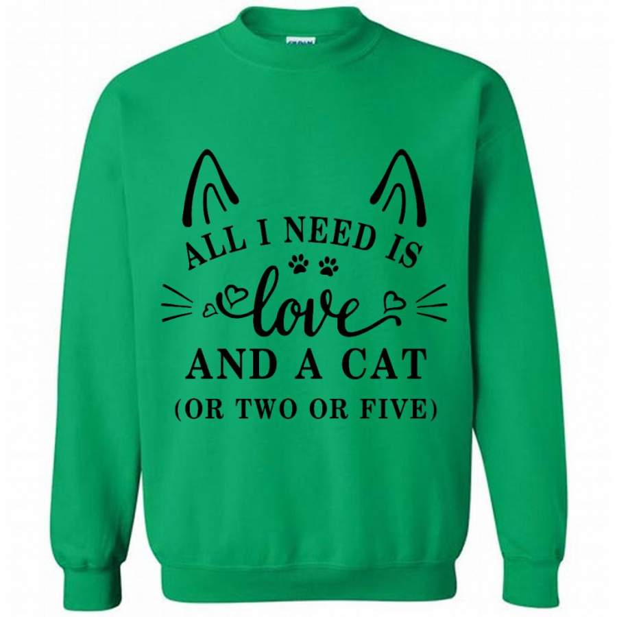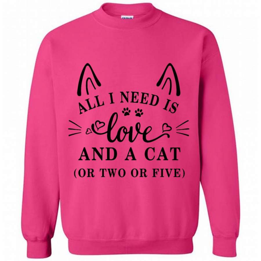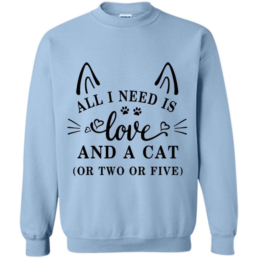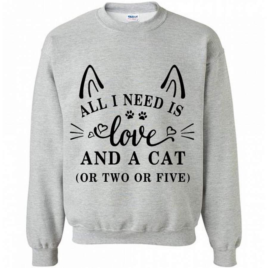 All I Need Is Love And A Cat Or Two Or Five (w) – Gildan Crewneck Sweatshirt