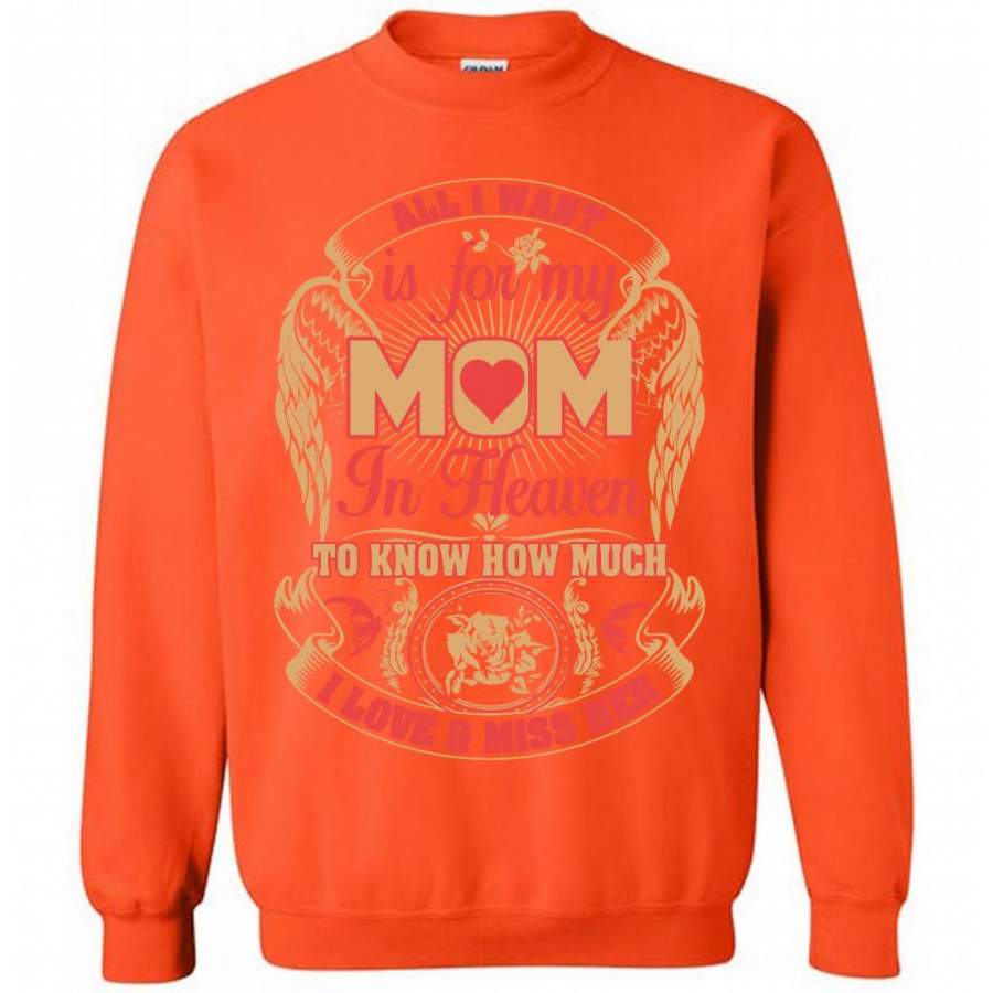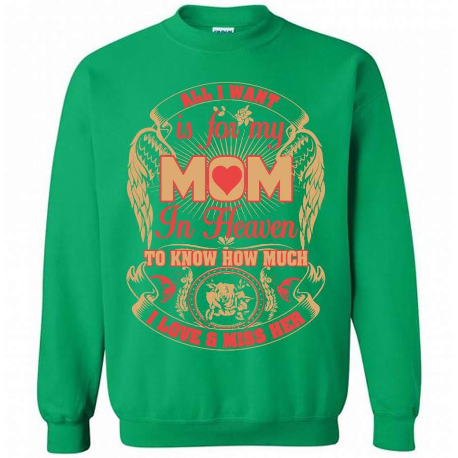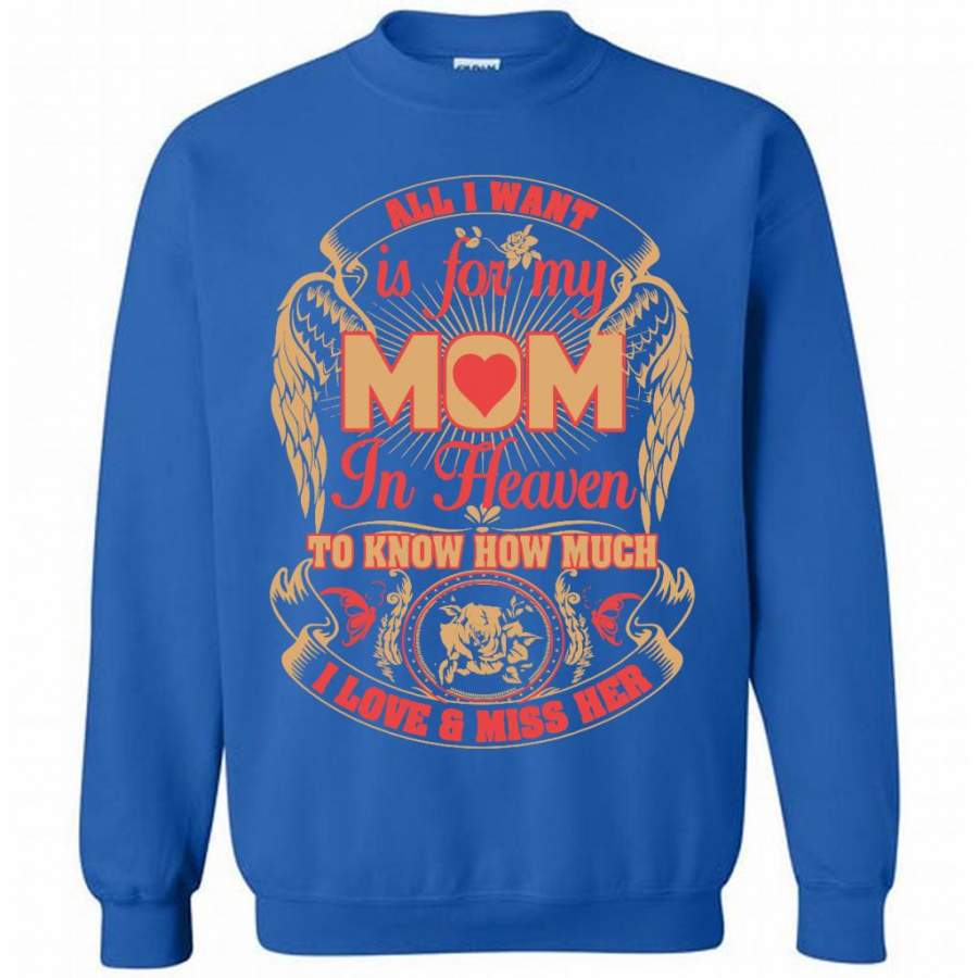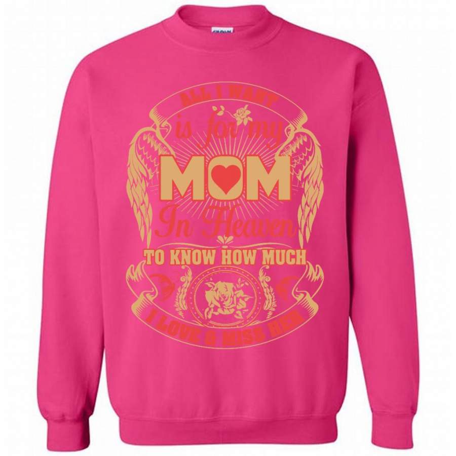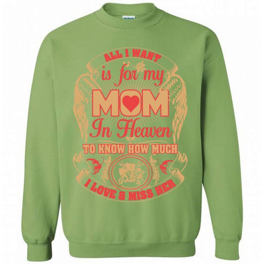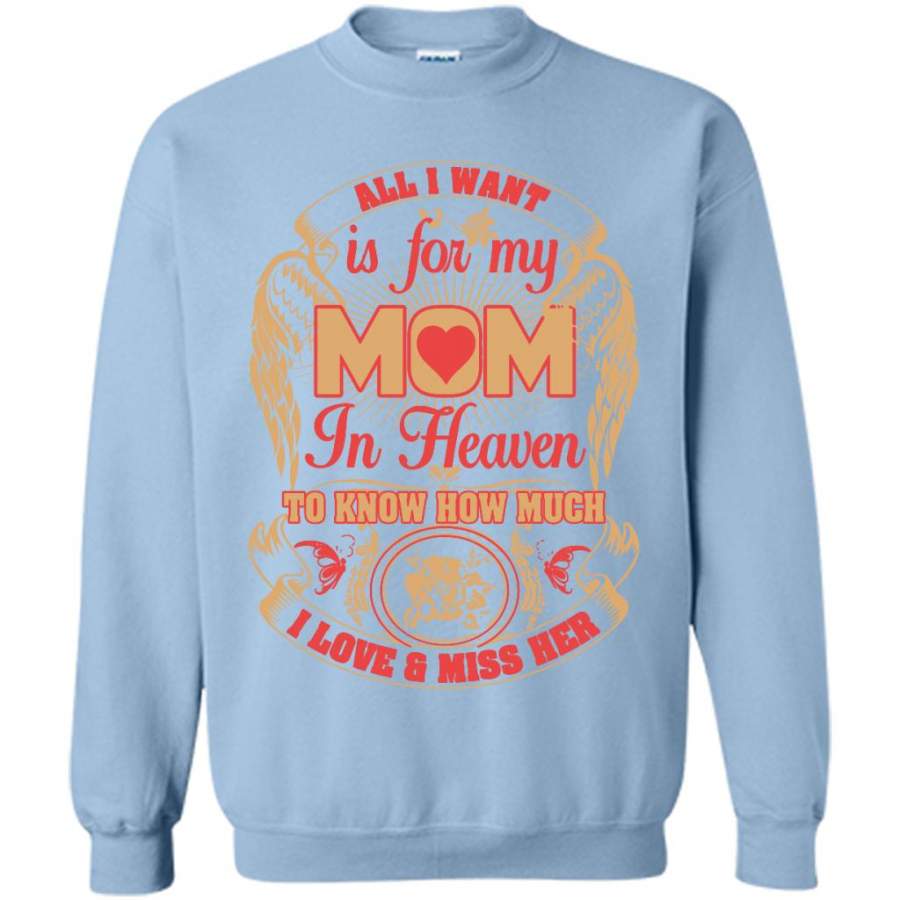 All I Want Is For My Mom In Heaven To Know How Much I Love And Miss Her (w) – Gildan Crewneck Sweatshirt