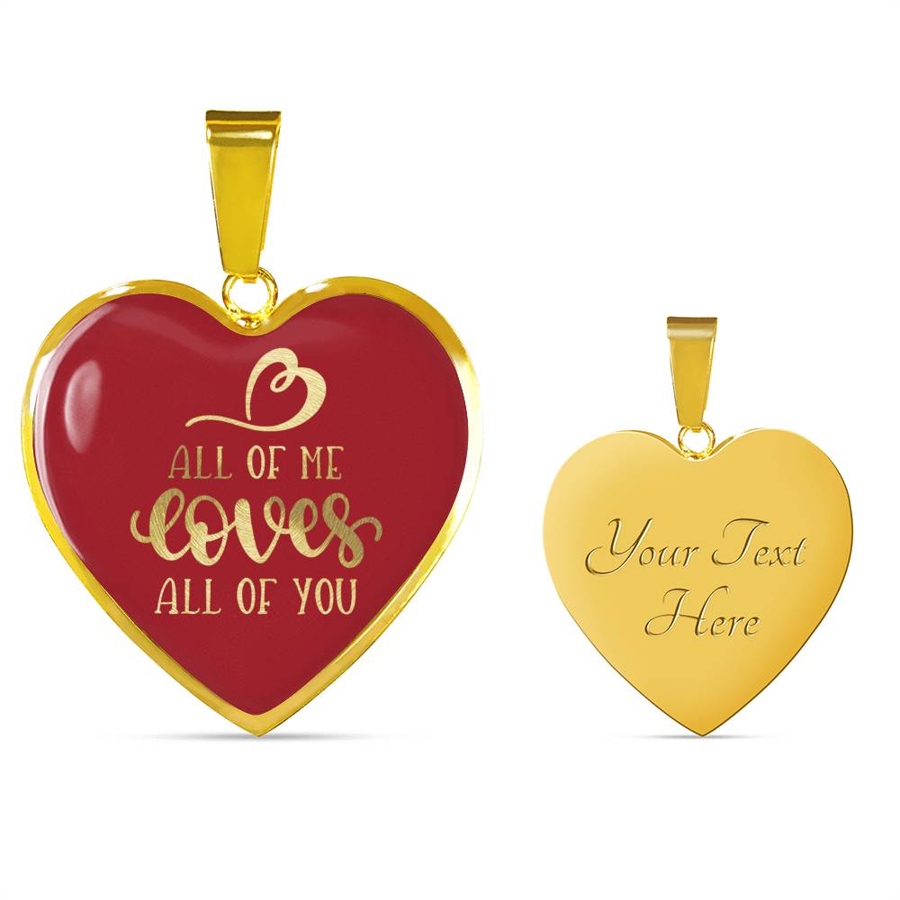 All Of Me Loves All Of You Red Heart Shaped Necklace In 18K Gold Or Stainless Steel