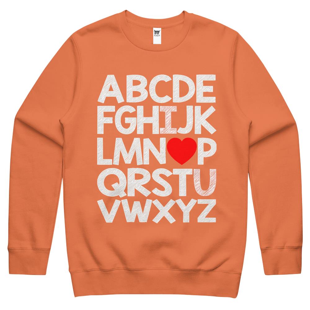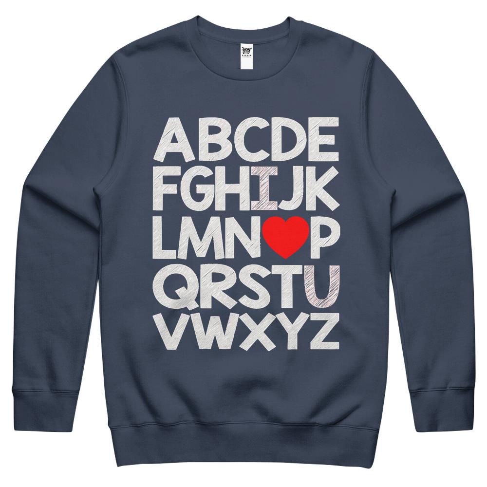 So whether you're looking to show off your own name or create a personalized gift for someone special, LateAndLow Store has got you covered. Start designing your own custom Alphabet Abc I Love You Valentines Day Heart Crewneck Sweatshirt print-on-demand product today, and let us bring your vision to life!