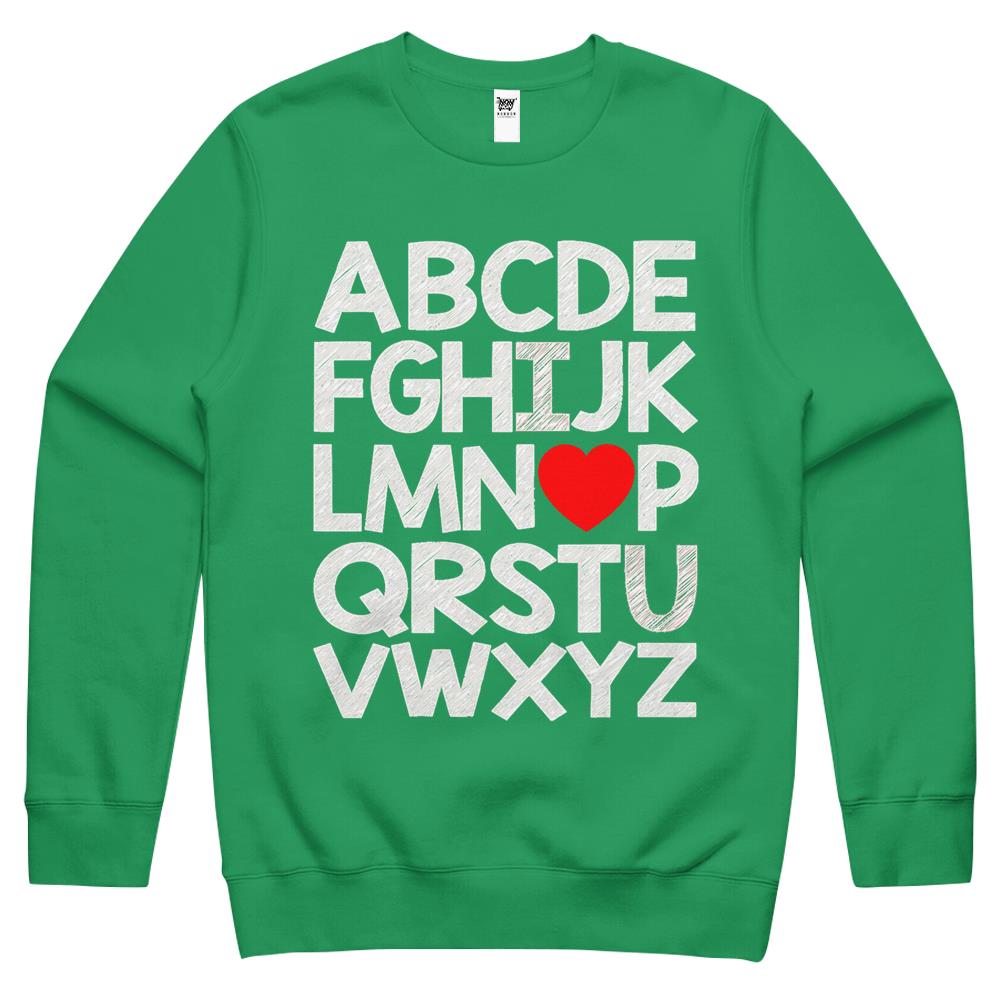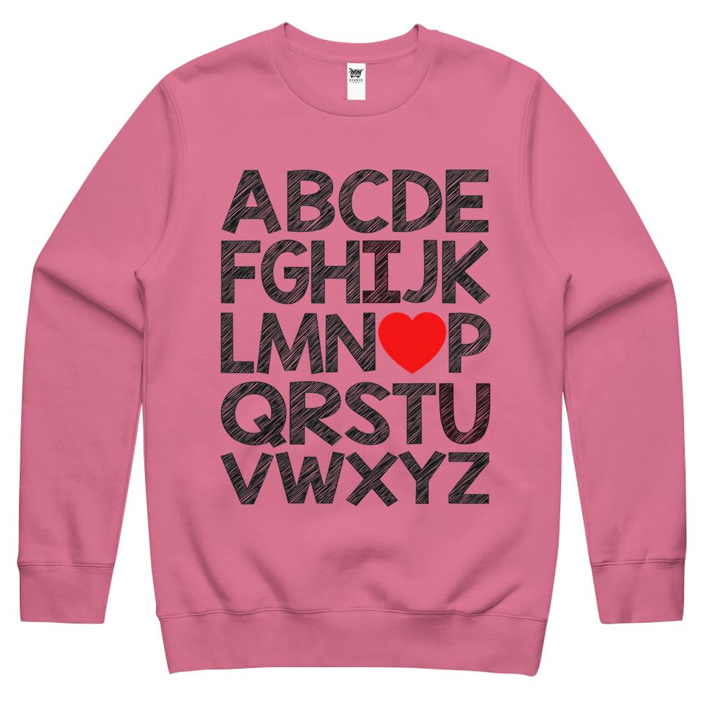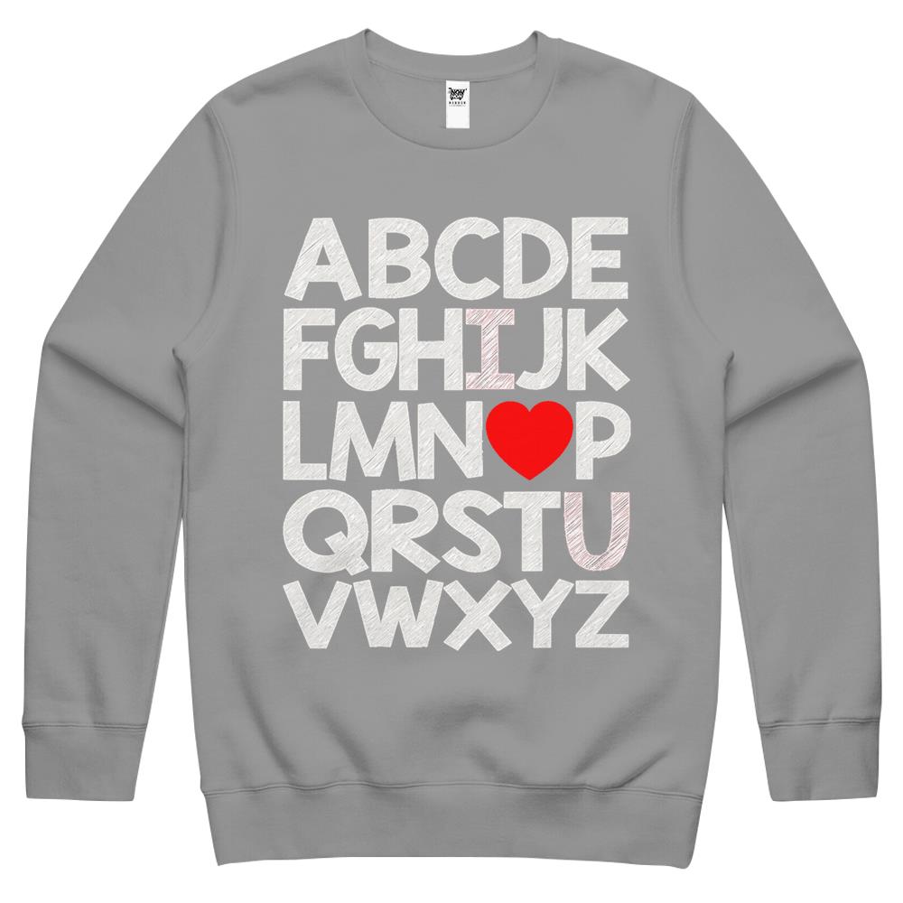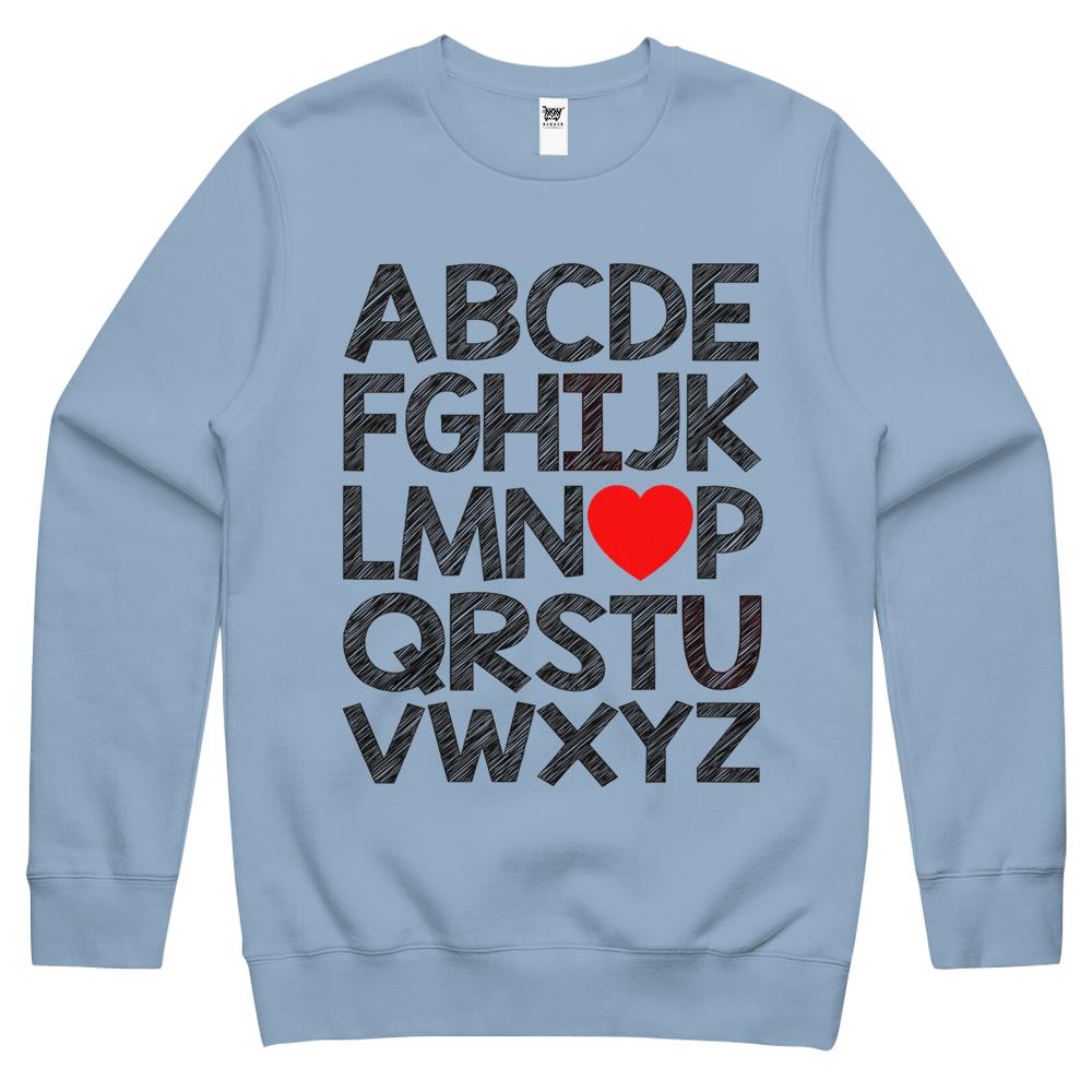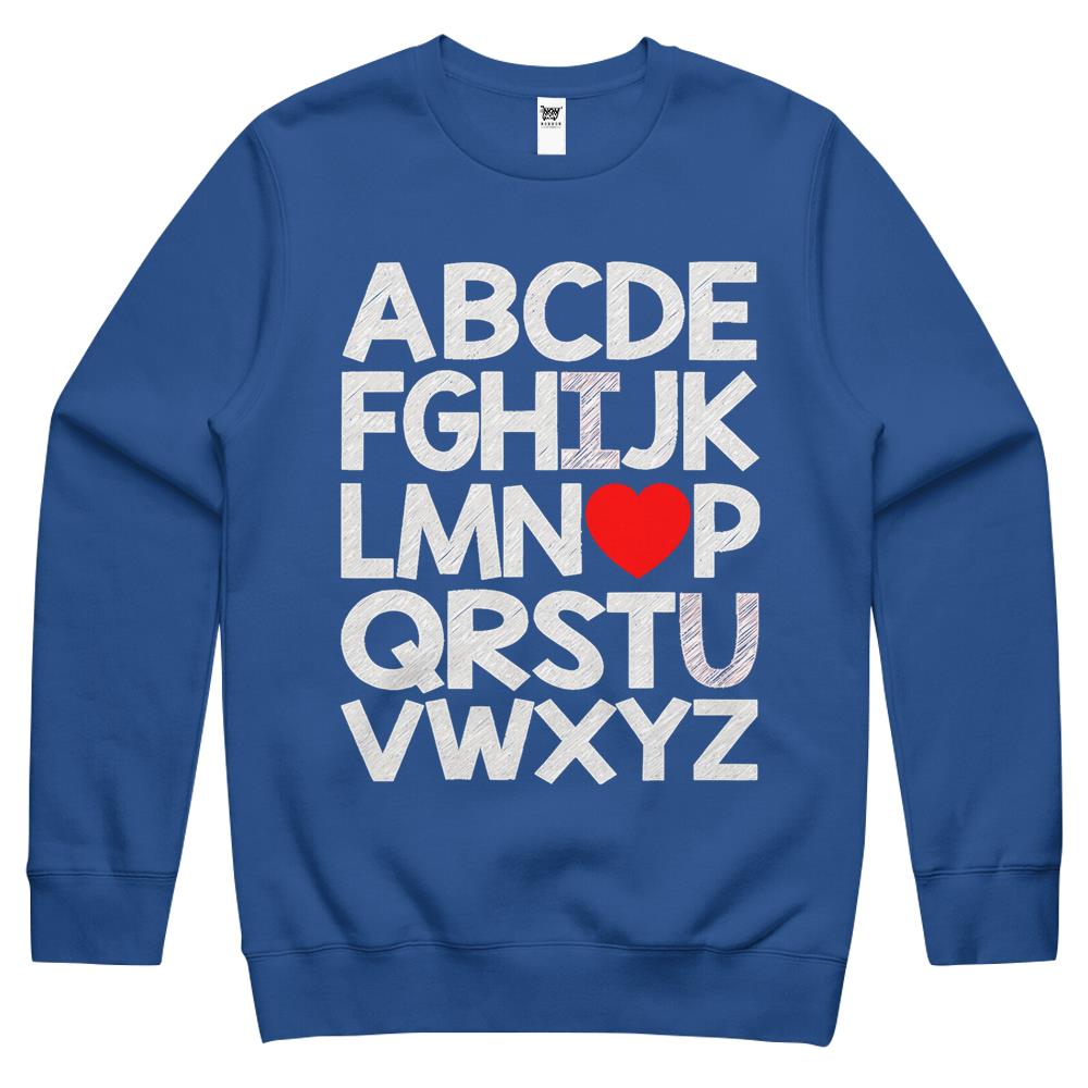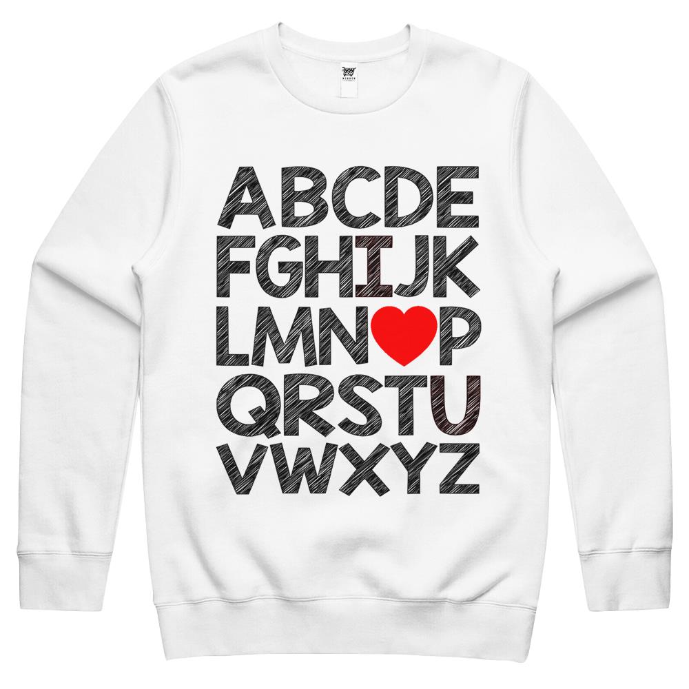 Alphabet Abc I Love You Valentines Day Heart Crewneck Sweatshirt
