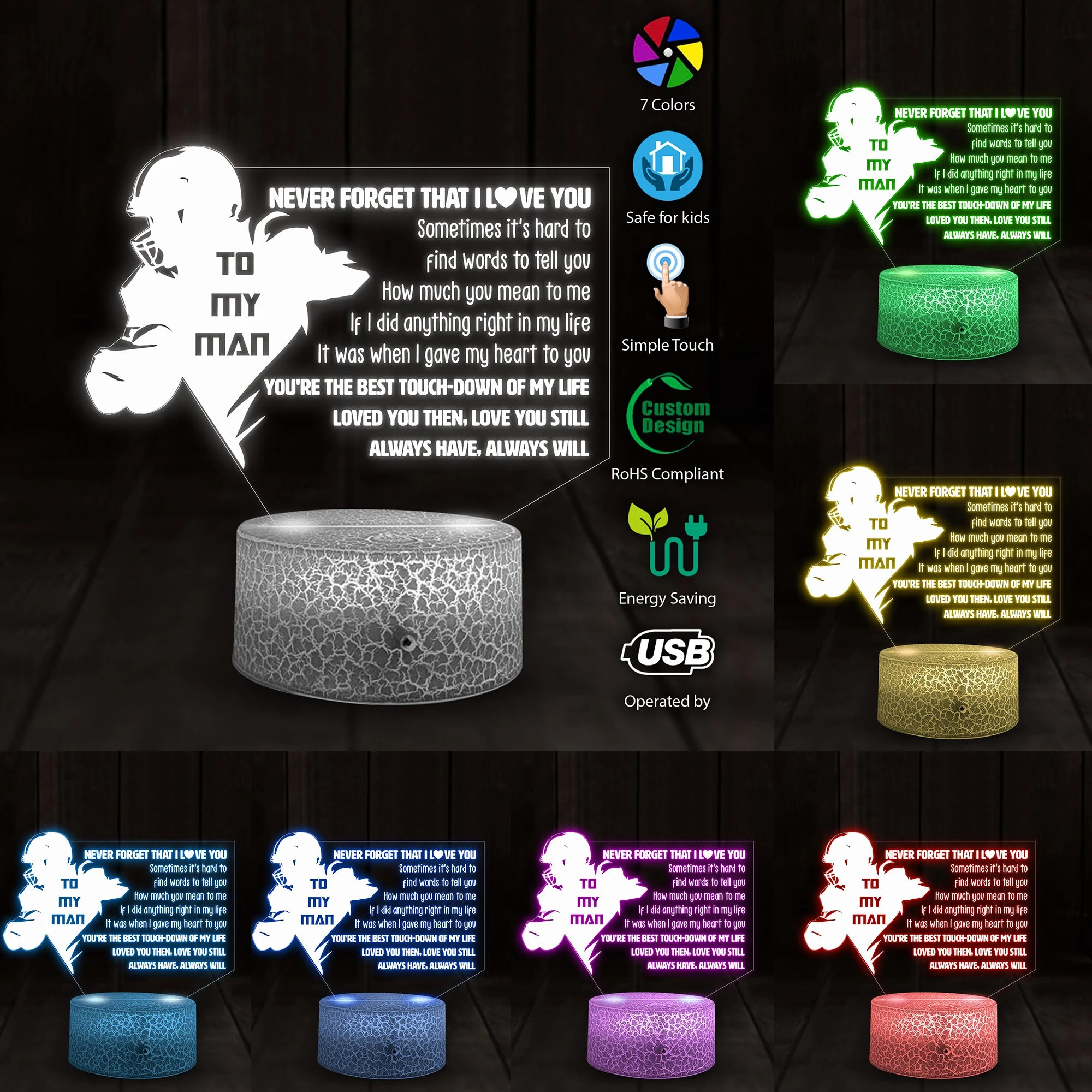 At Cotenis Store, we offer a fantastic range of print-on-demand products that can be personalized with your name. Our American Football Player Gift Love You Still 3D Illusion Night Light Led Light print-on-demand products are the perfect way to add a personal touch to your wardrobe or to create a unique and thoughtful gift for someone special.