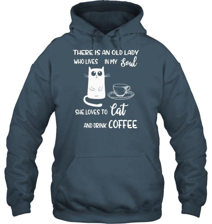So whether you're looking to show off your own name or create a personalized gift for someone special, LateAndLow Store has got you covered. Start designing your own custom An Old Lady Who Loves In My Soul She Loves Cat And Drink Coffee Hoodie print-on-demand product today, and let us bring your vision to life!