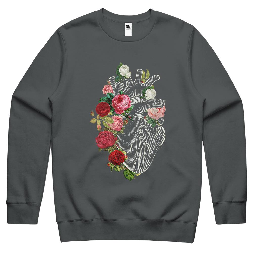 So whether you're looking to show off your own name or create a personalized gift for someone special, LateAndLow Store has got you covered. Start designing your own custom Anatomical Heart And Flowers Show Your Love Crewneck Sweatshirt print-on-demand product today, and let us bring your vision to life!