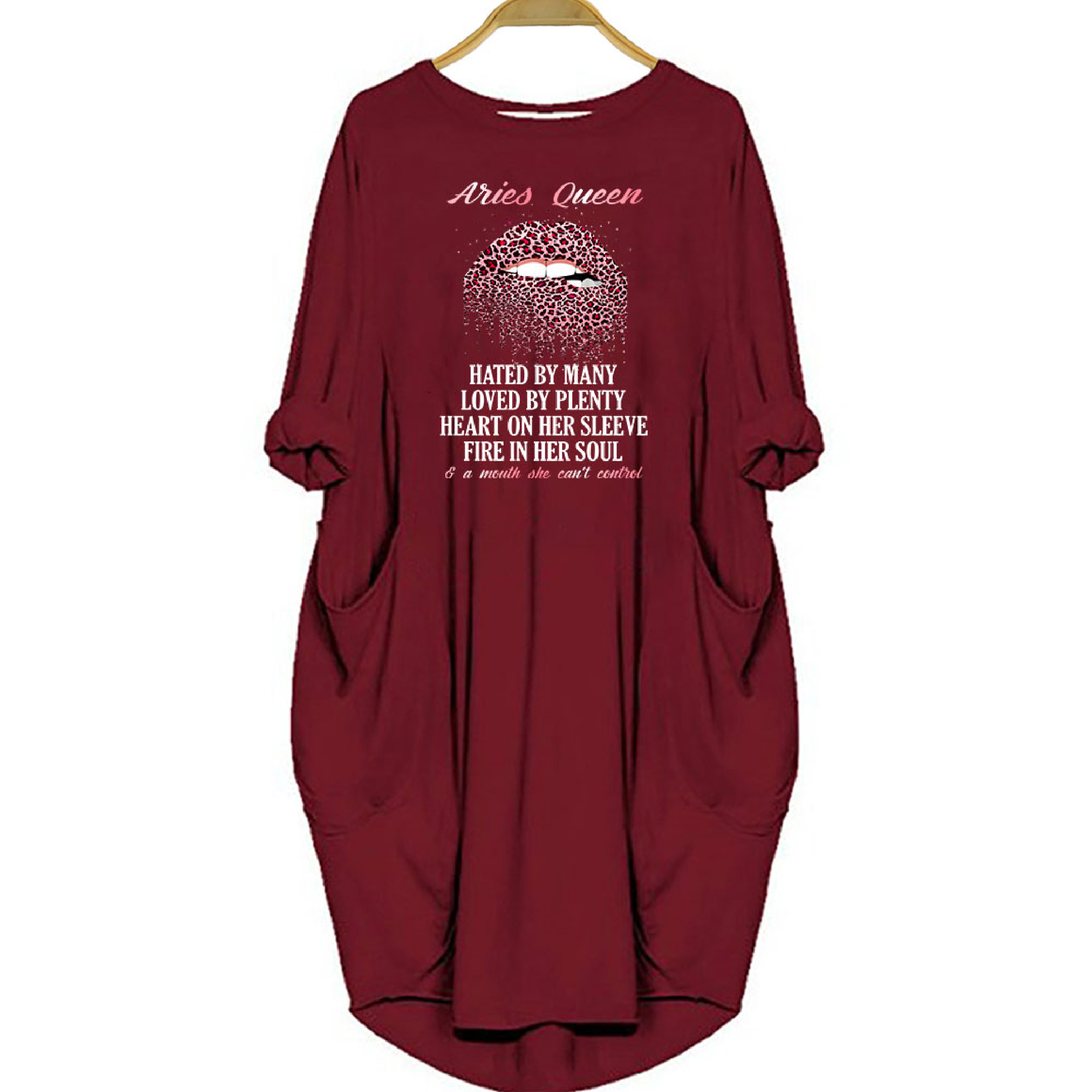Aries Queen Hated By Many Loved By Plenty Shirt Queen Girl Women’s Long Sleeve Loose Pocket Dresses