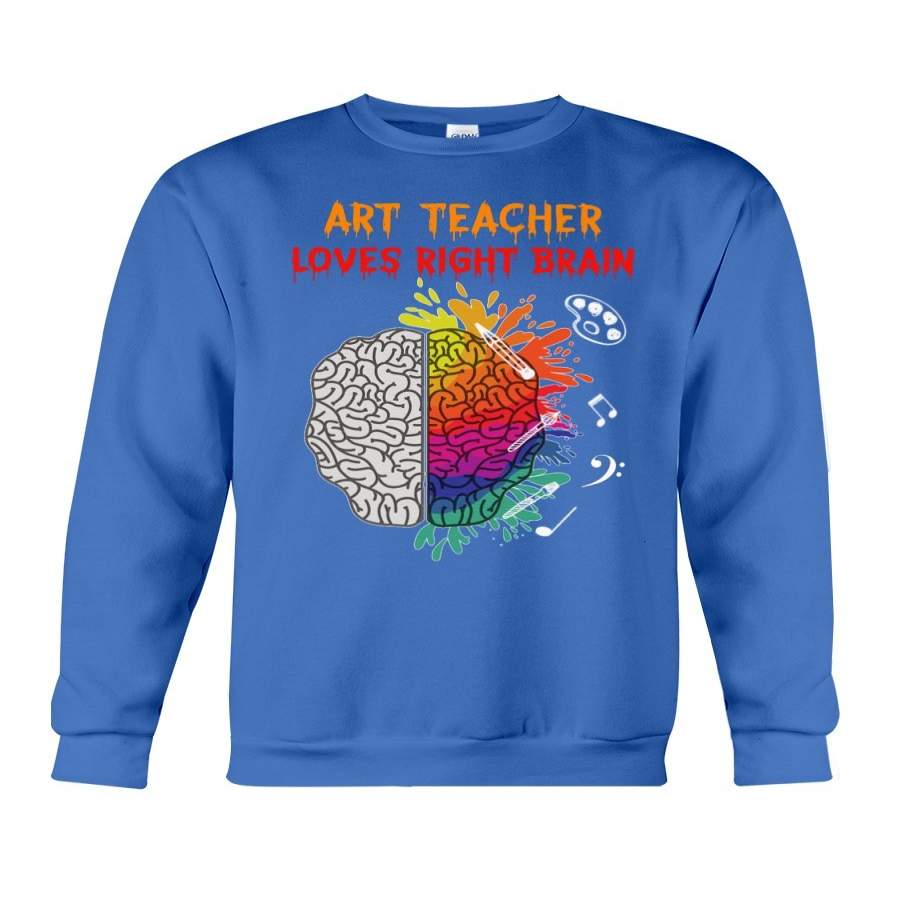 So whether you're looking to show off your own name or create a personalized gift for someone special, LateAndLow Store has got you covered. Start designing your own custom Art Teacher Loves Right Brain Which More Soaring Sweatshirt print-on-demand product today, and let us bring your vision to life!