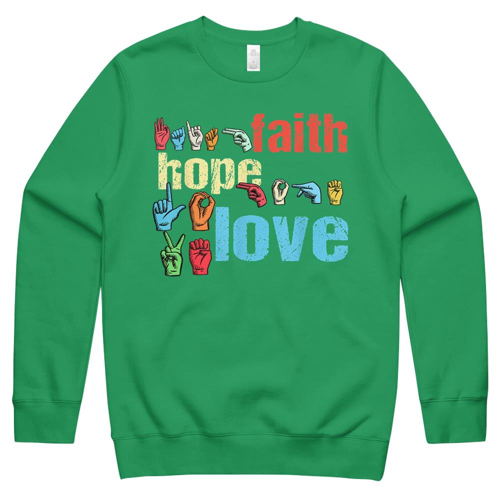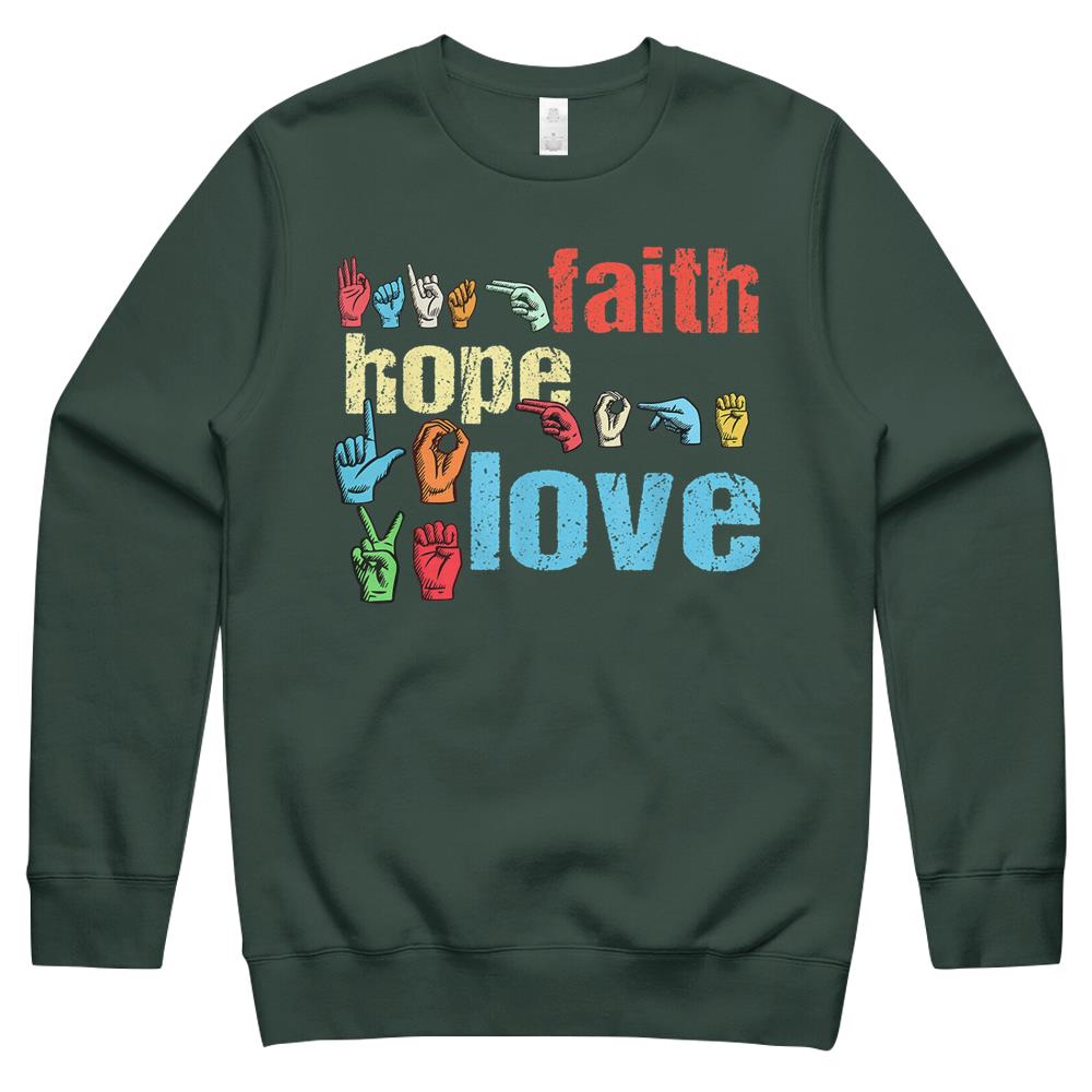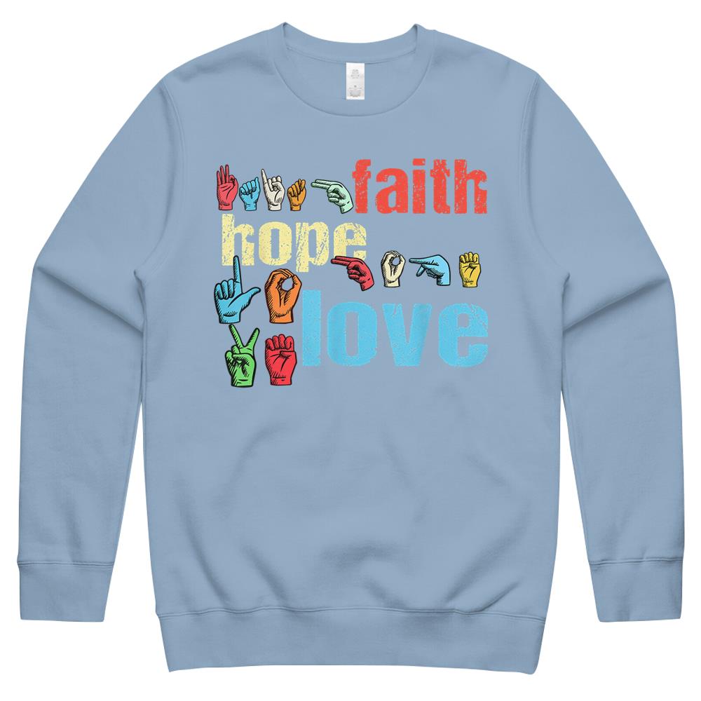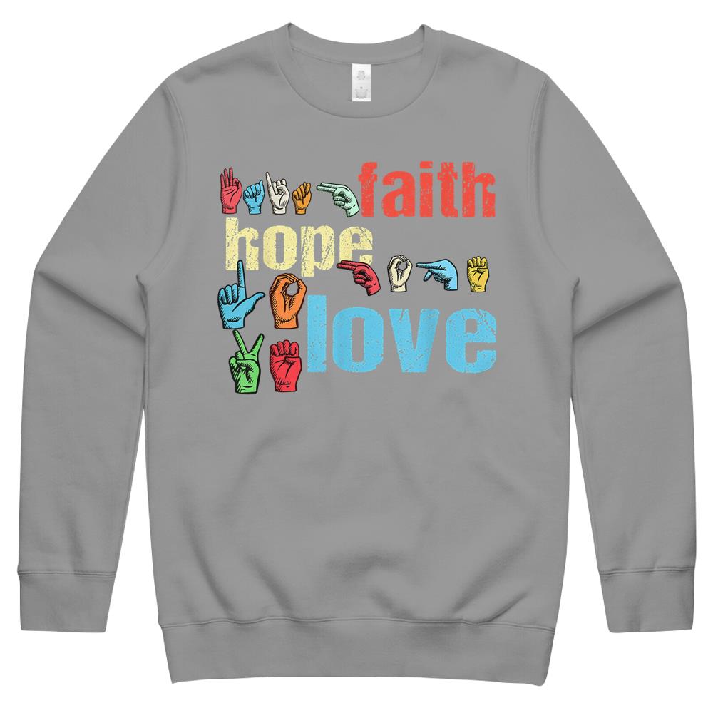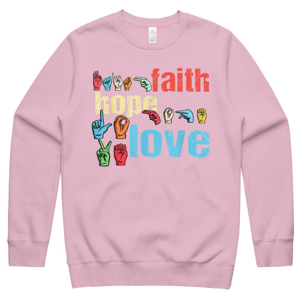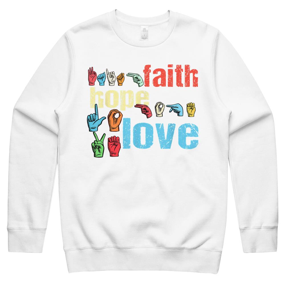Asl Faith Hope Love American Sign Language Christian Easter Crewneck Sweatshirt