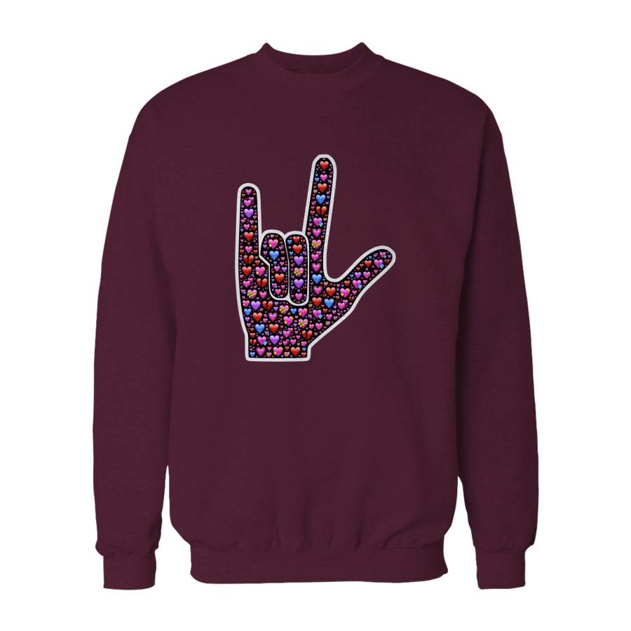 So whether you're looking to show off your own name or create a personalized gift for someone special, LateAndLow Store has got you covered. Start designing your own custom Asl I Love You Sign Language Interpreter Gift Sweatshirt print-on-demand product today, and let us bring your vision to life!