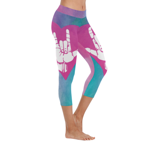 ASL Love Sign Low Rise Capri Leggings (Invisible Stitch) (Model L08)