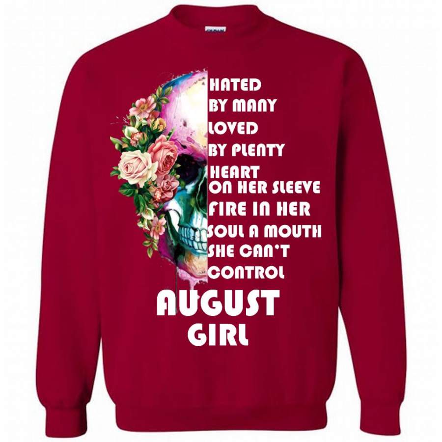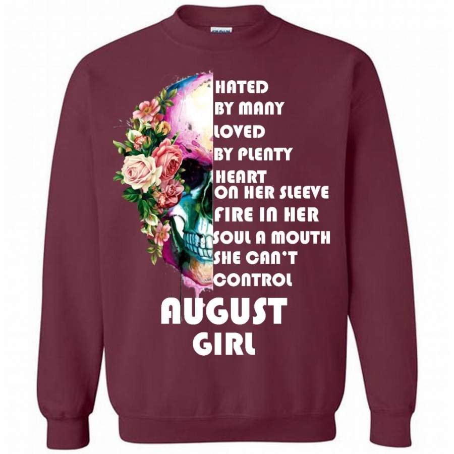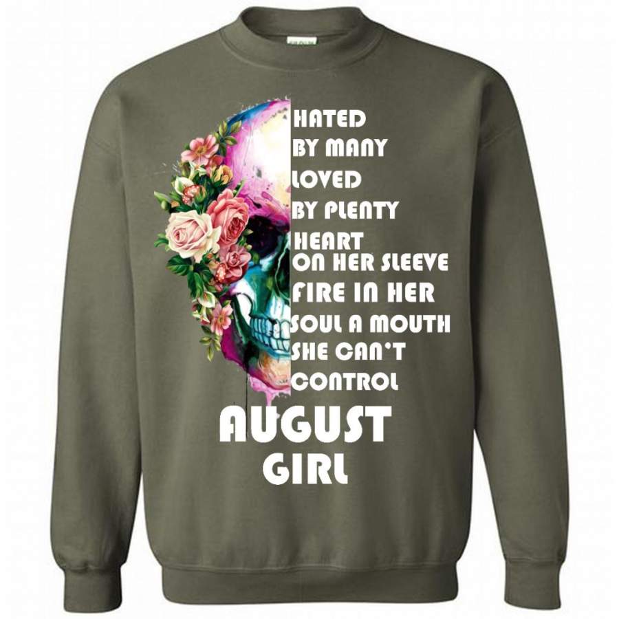 August Girl, Hated By Many Loved By Plenty Heart On Her Sleeve Fire In Her Soul A Mouth She Can’t Control – Gildan Crewneck Sweatshirt