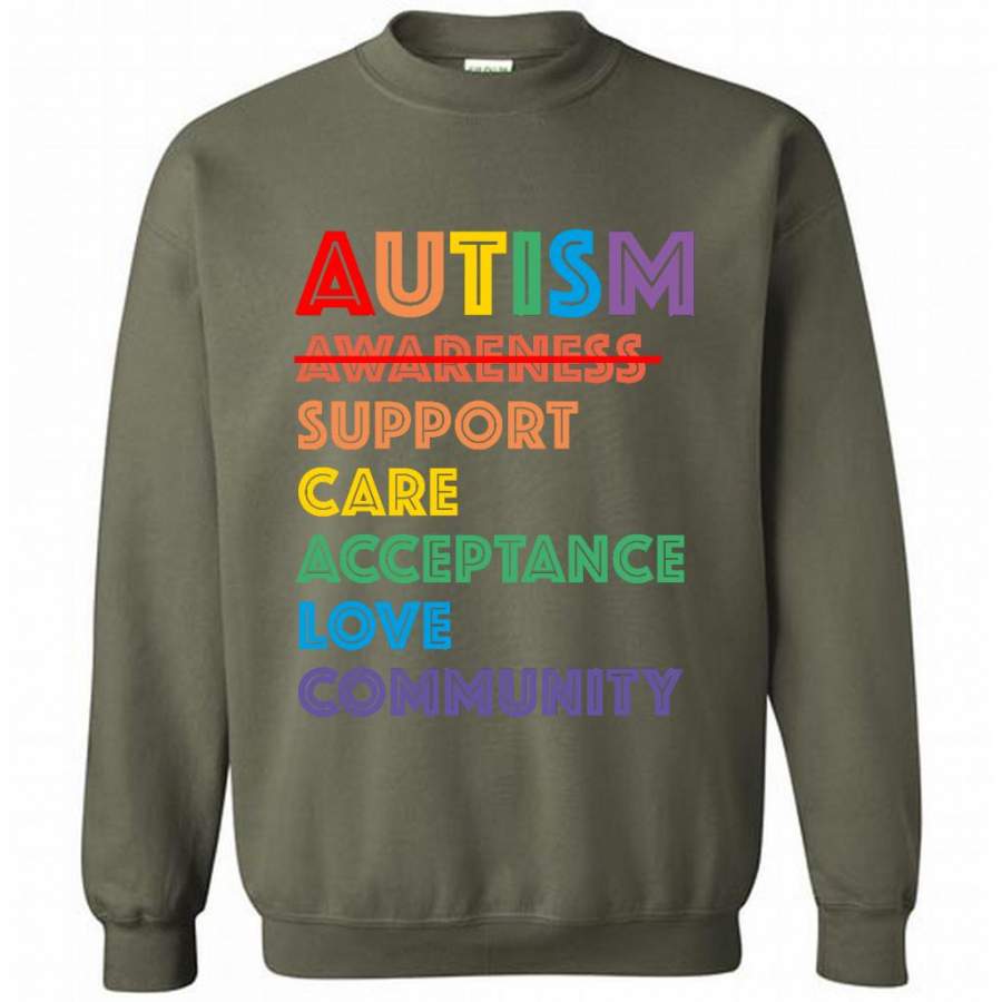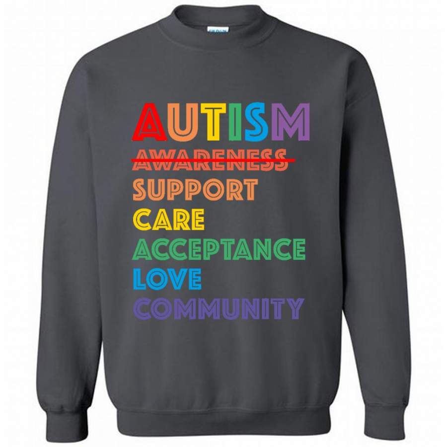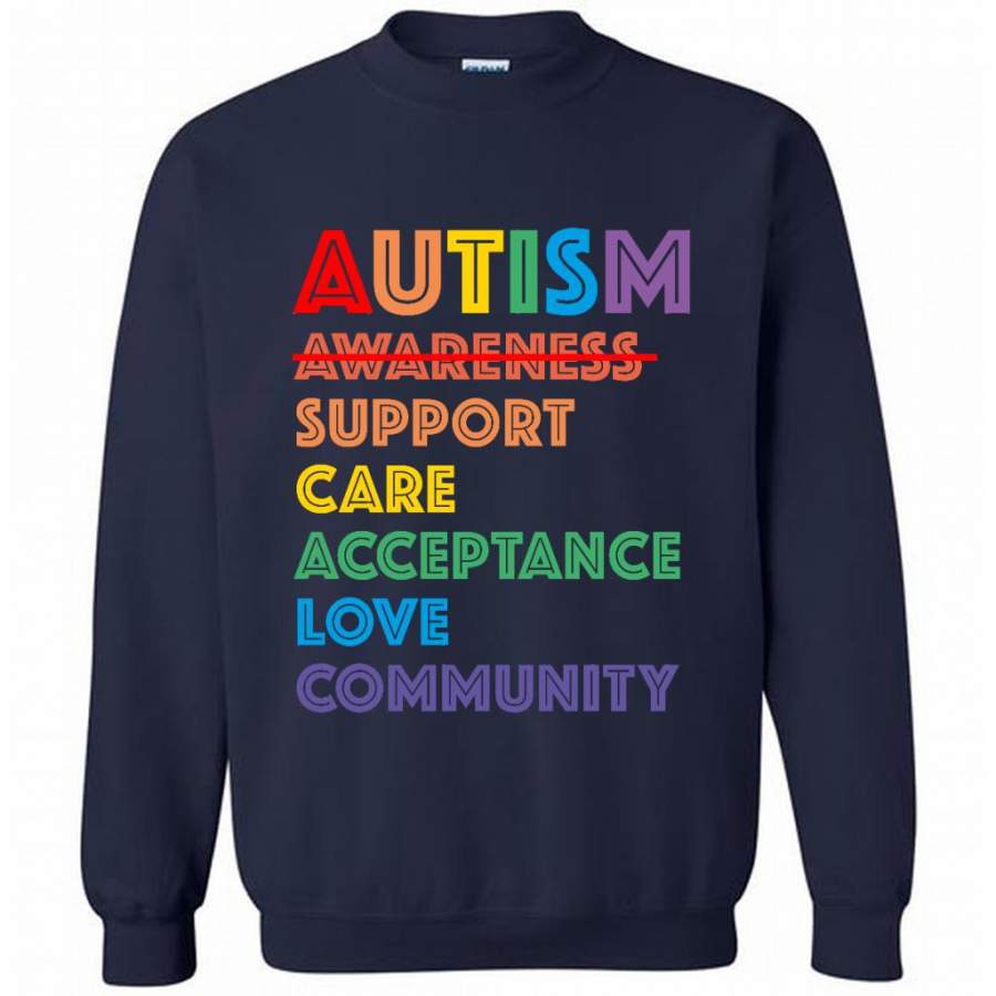 Autism Awareness Support Care Acceptance Love Community – Gildan Crewneck Sweatshirt