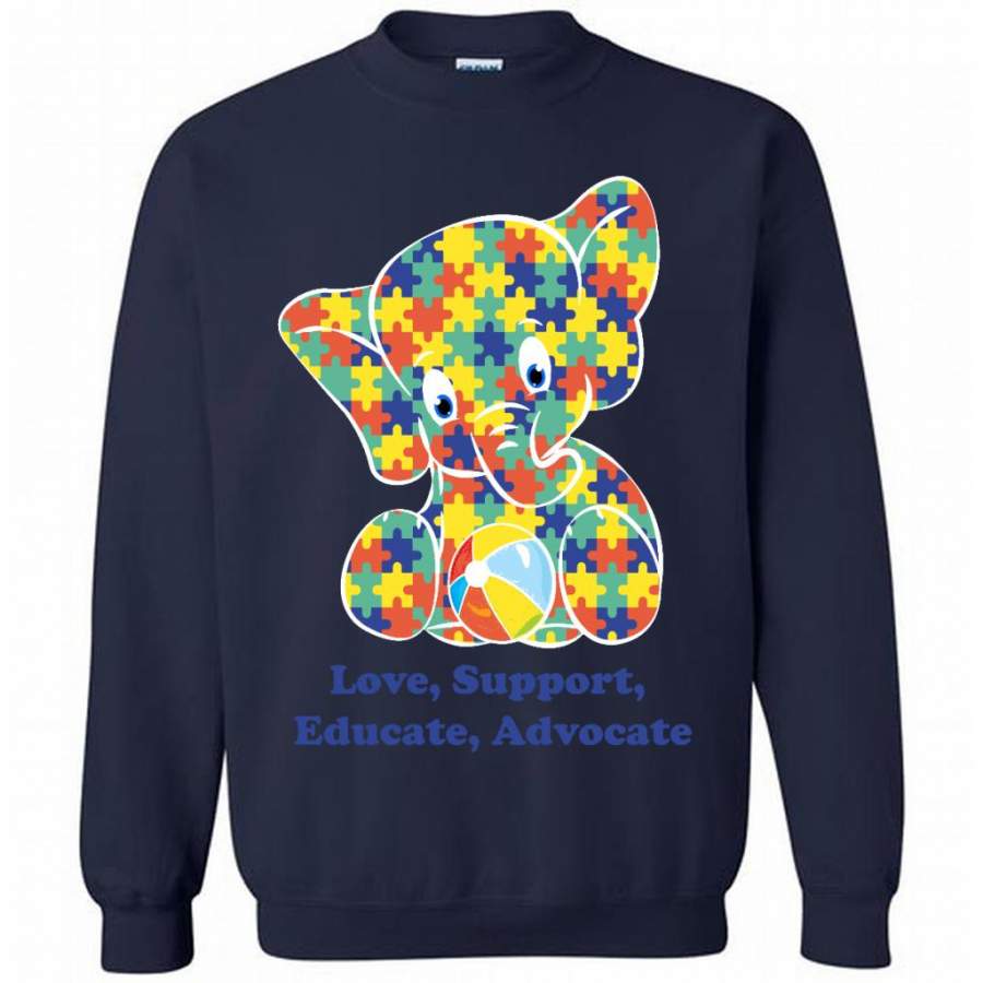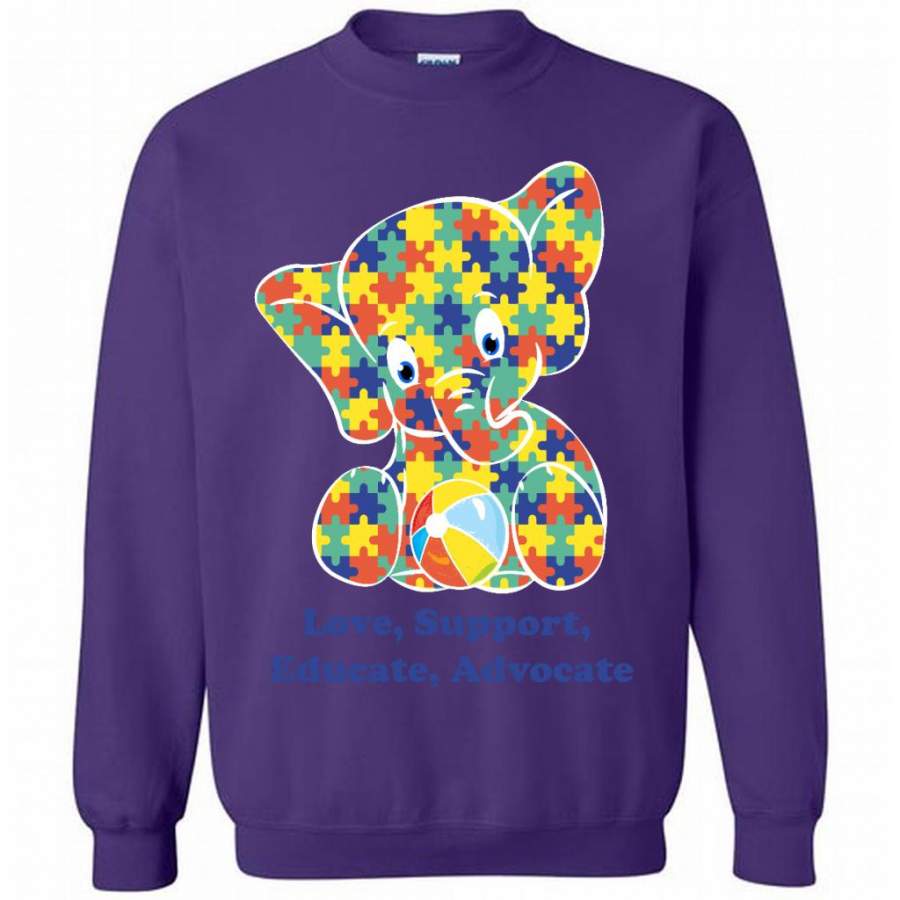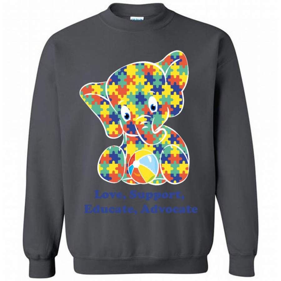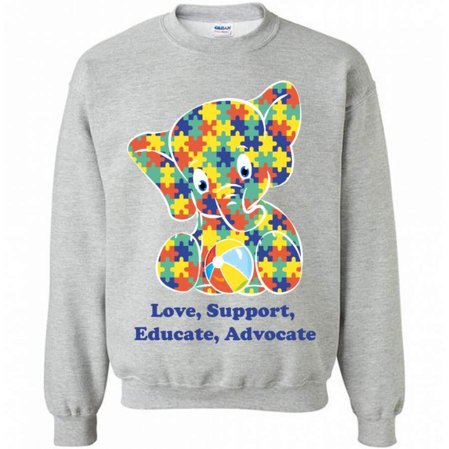 Autism Elephant Strong Love Support Educate Advocate – Gildan Crewneck Sweatshirt