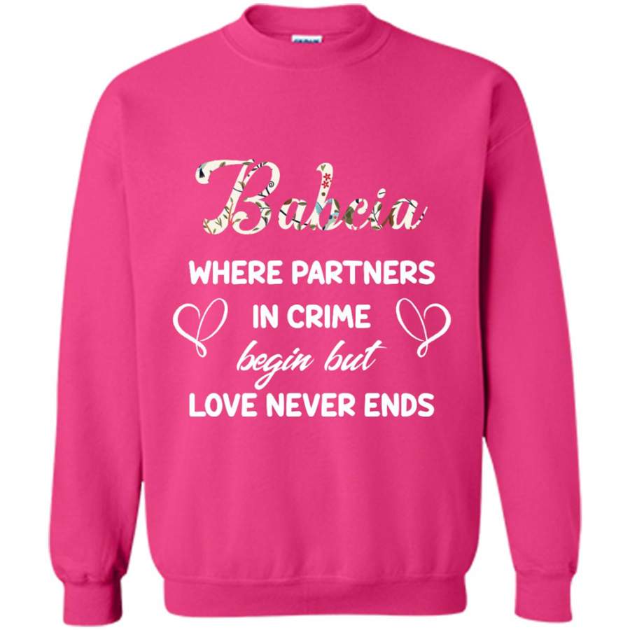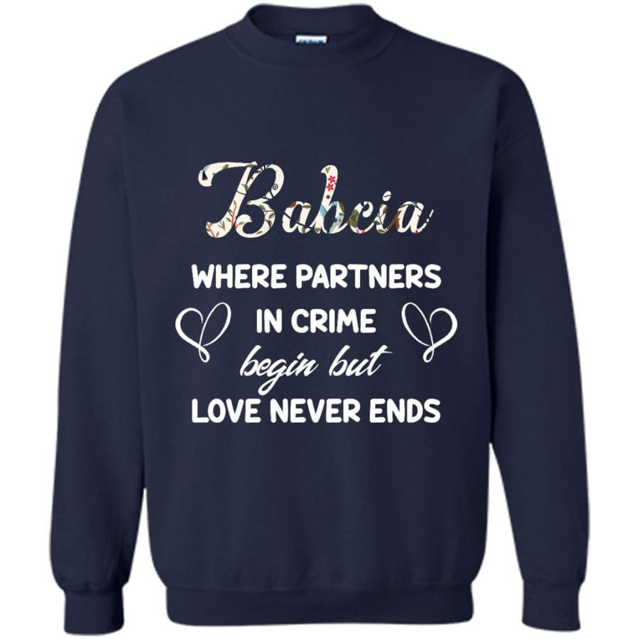 Babcia Where Partners In Crime Begin But Love Never Ends – Gildan Crewneck Sweatshirt