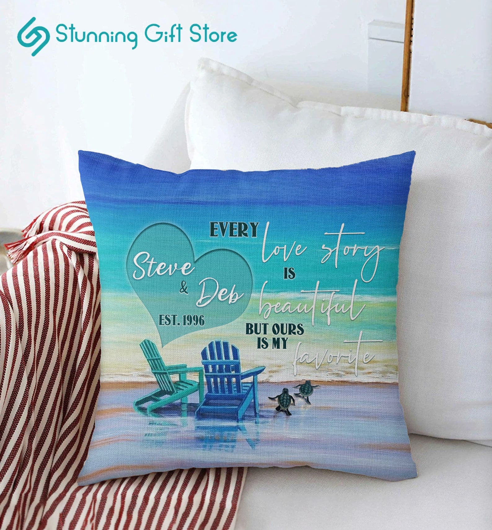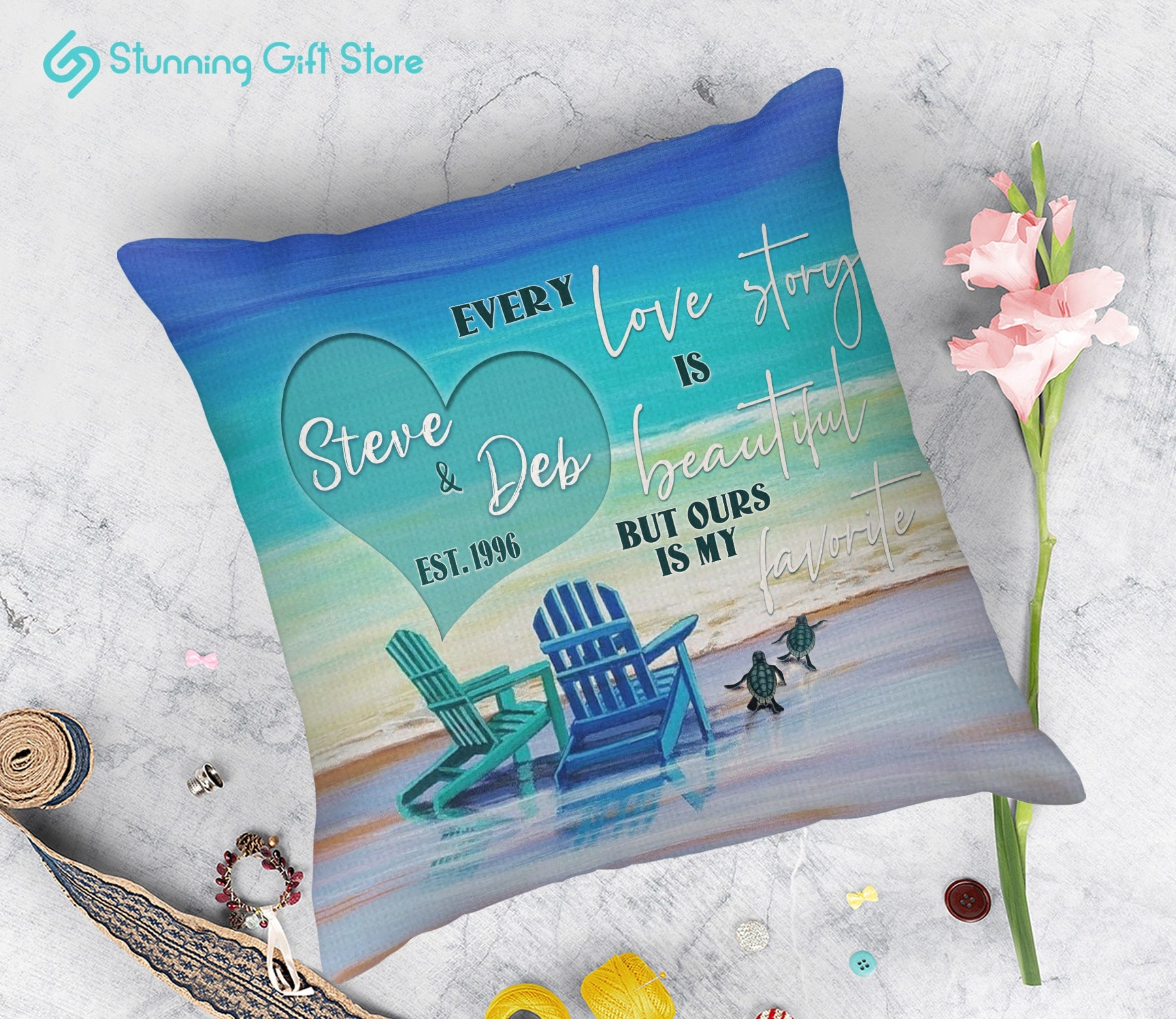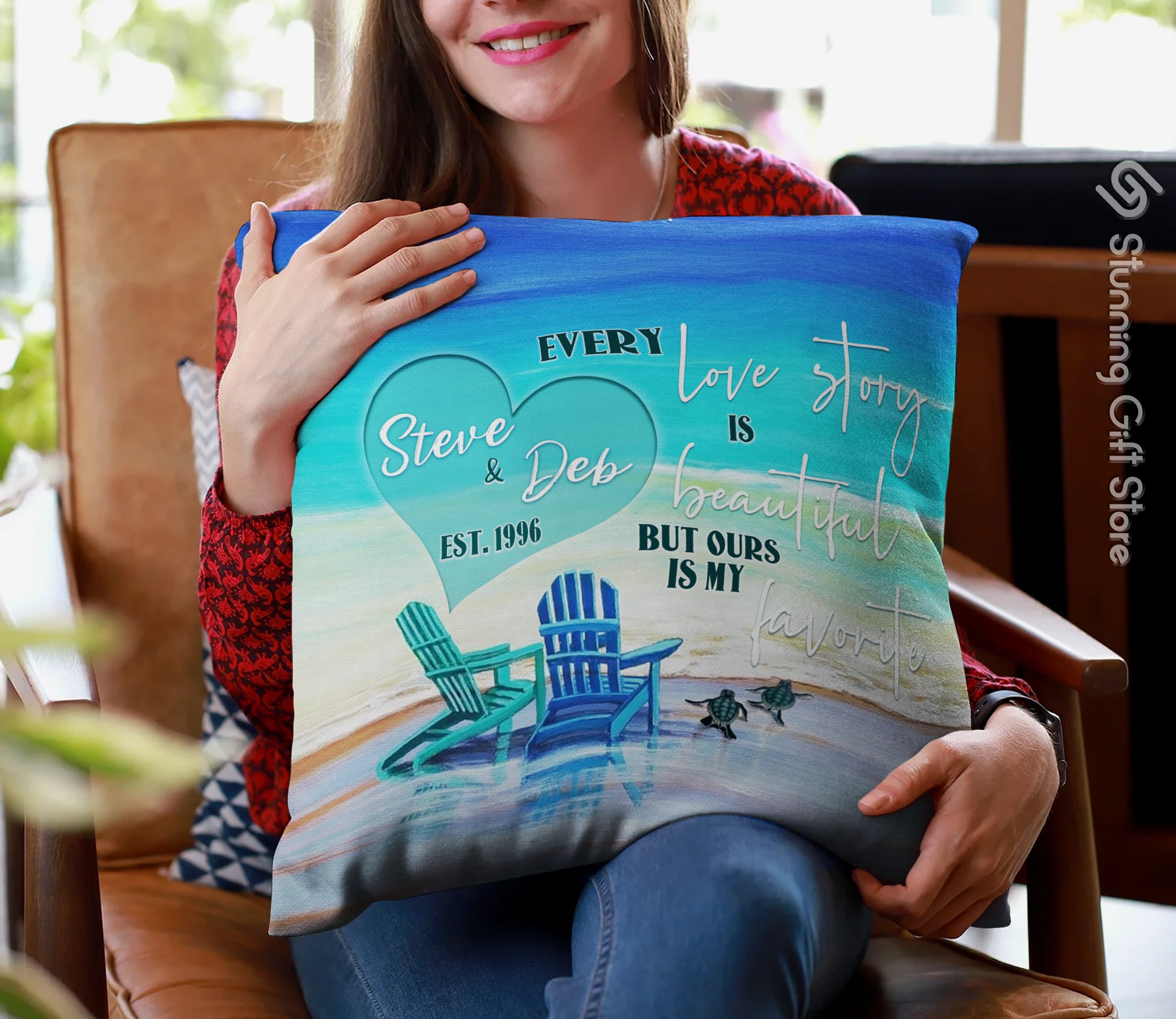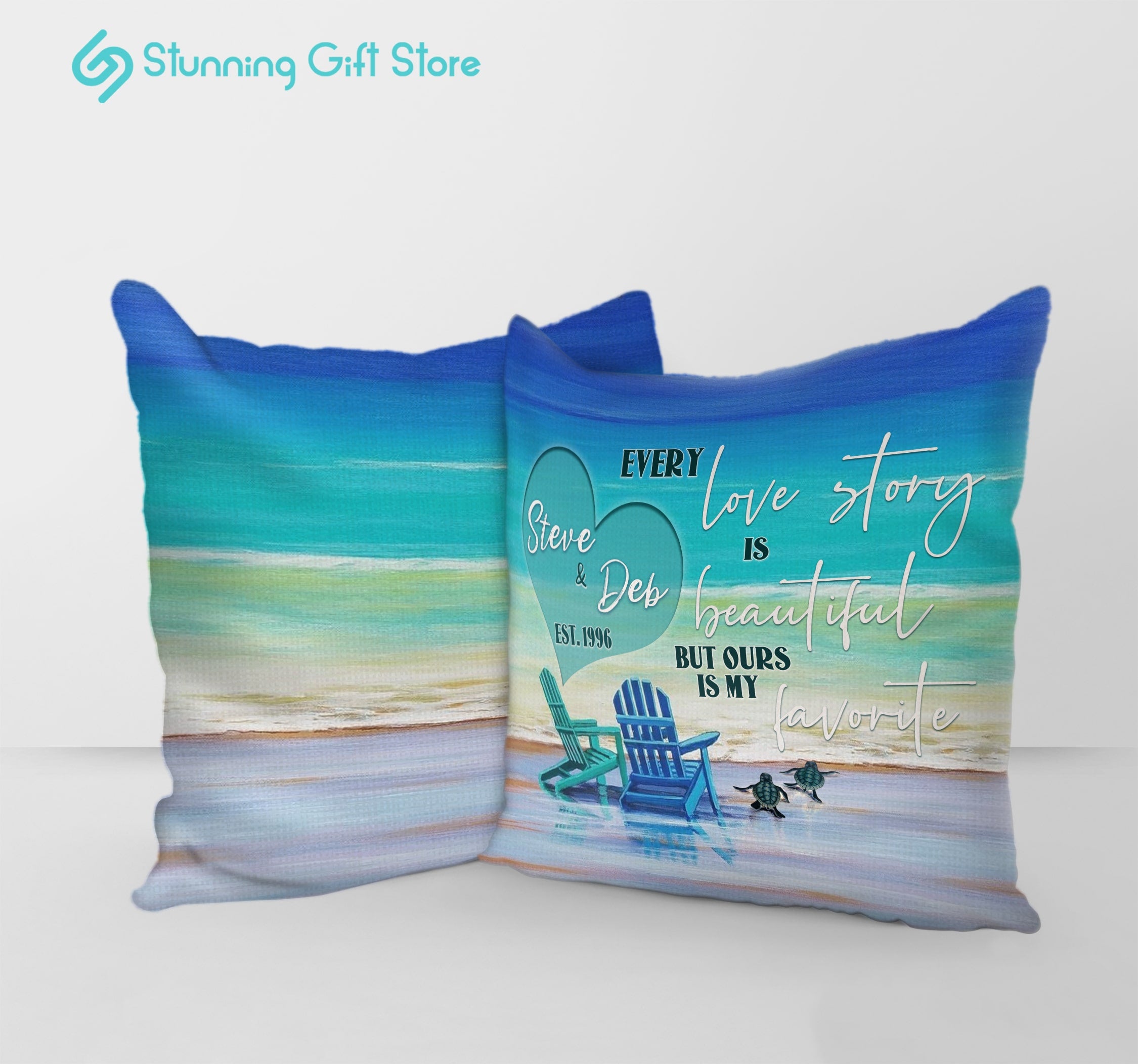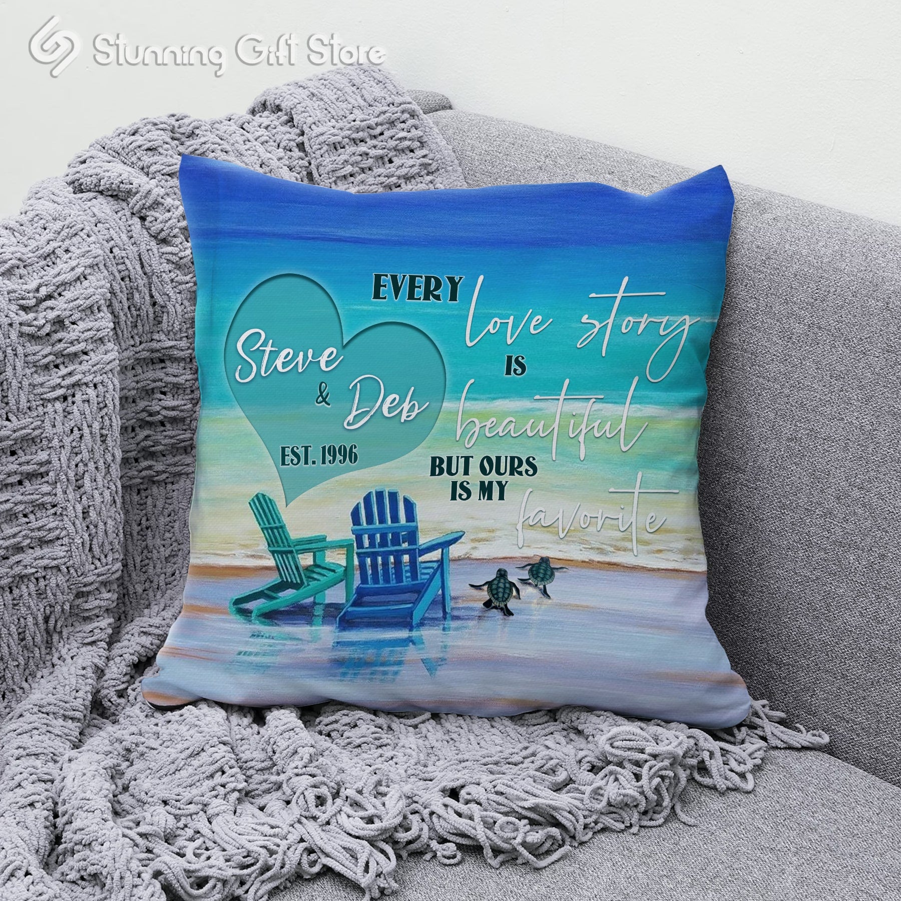 Beach Themed Throw Pillow, Love Pillow For Couples, Custom Valentine’S Day Gift