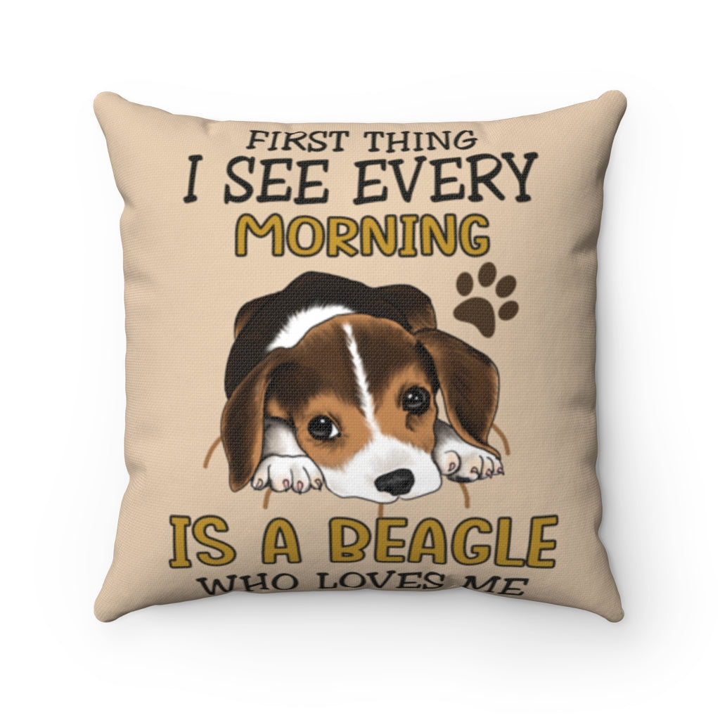 Beagle Dog Pillow, Dog Lovers Gifts, Love Pet Gif, First Thing I See Every Morning Is A Beagle Who Loves Me Pillow