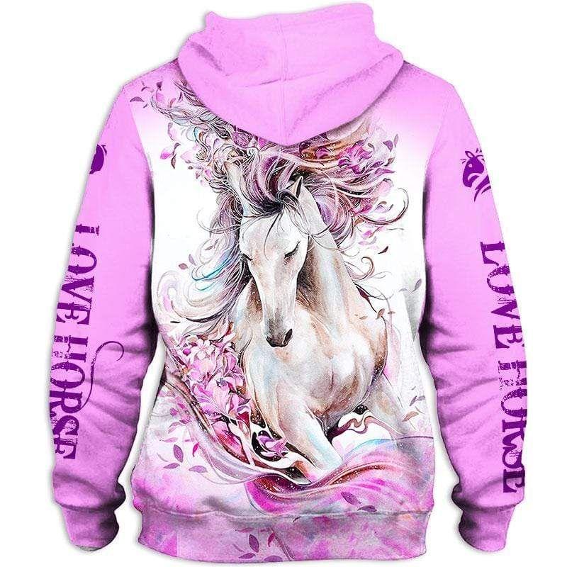 Beautiful Love Horse Pink Hoodie 3D All Over Print