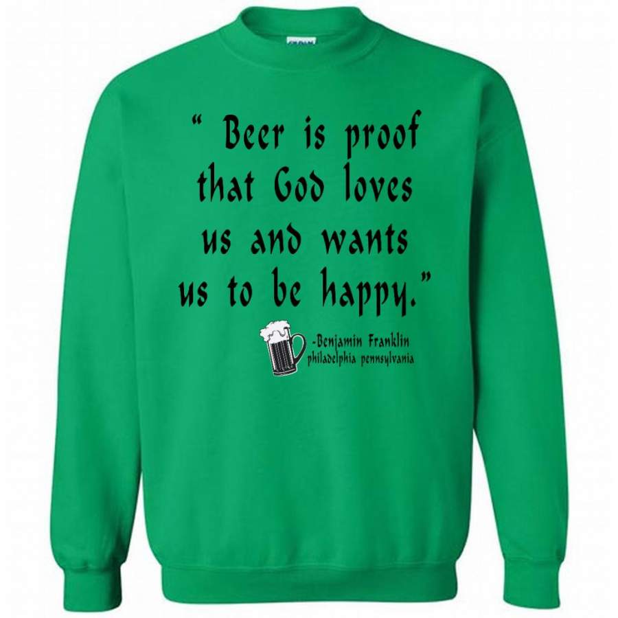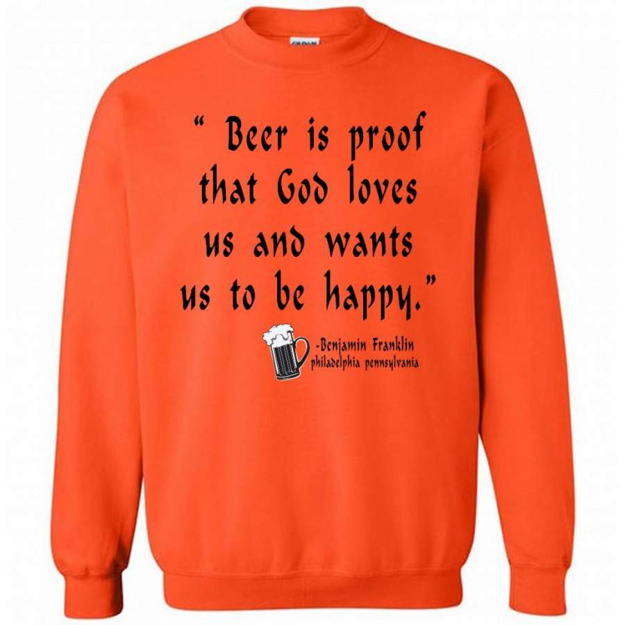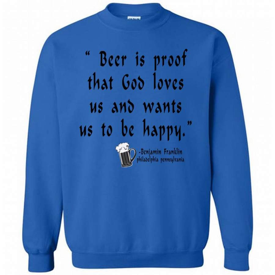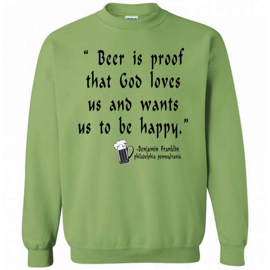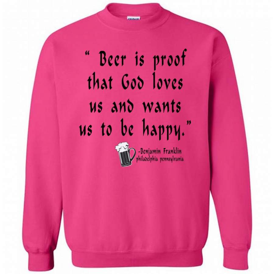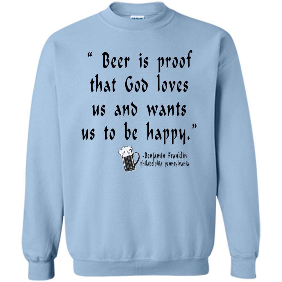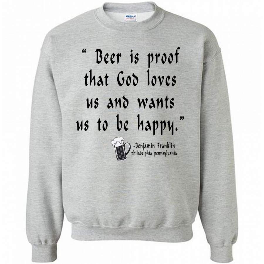 Beer is Proof That God Loves Us And Wants Us To Be Happy W – Gildan Crewneck Sweatshirt