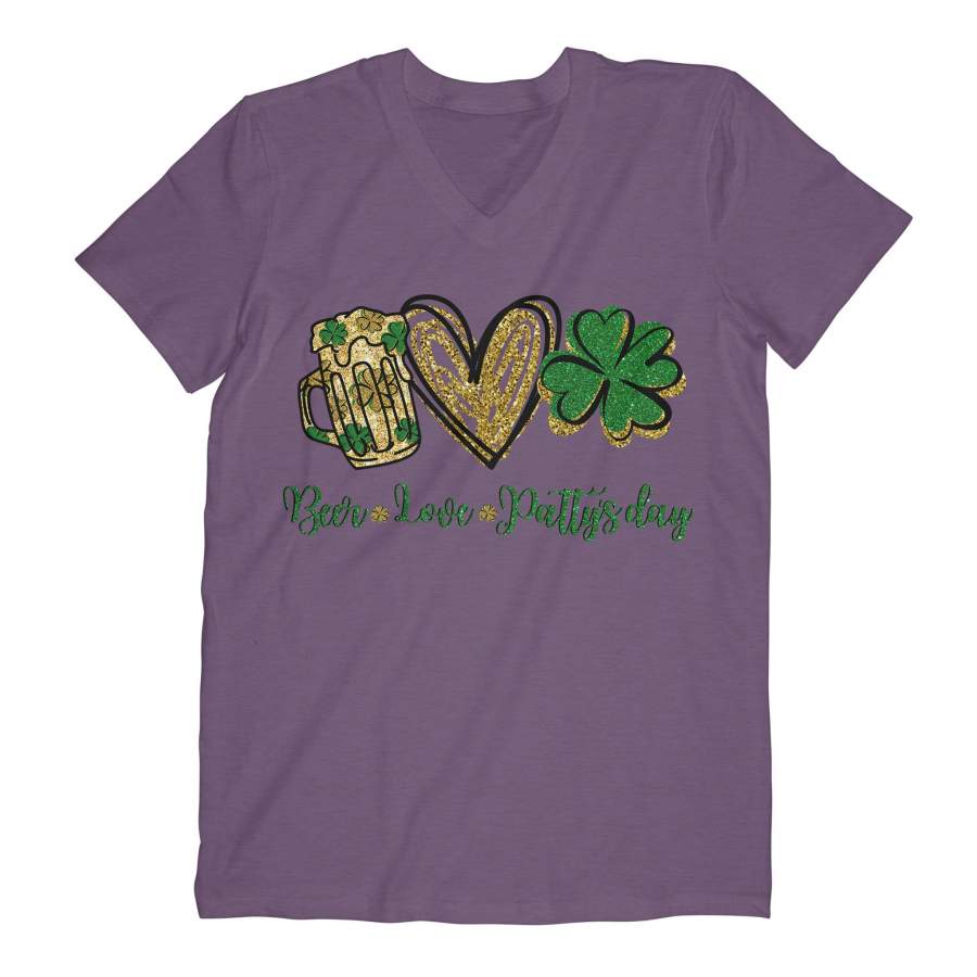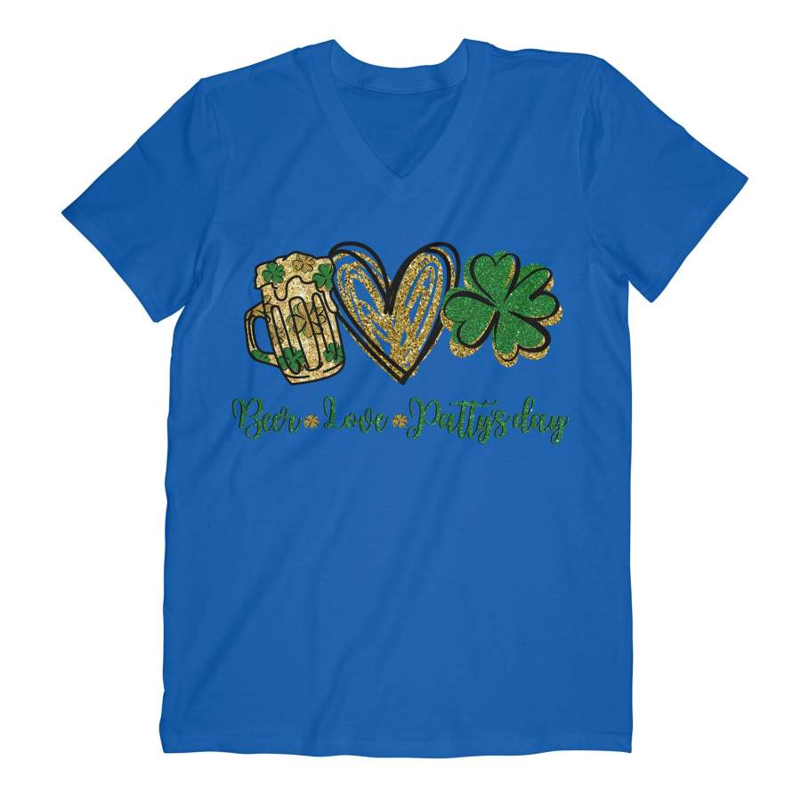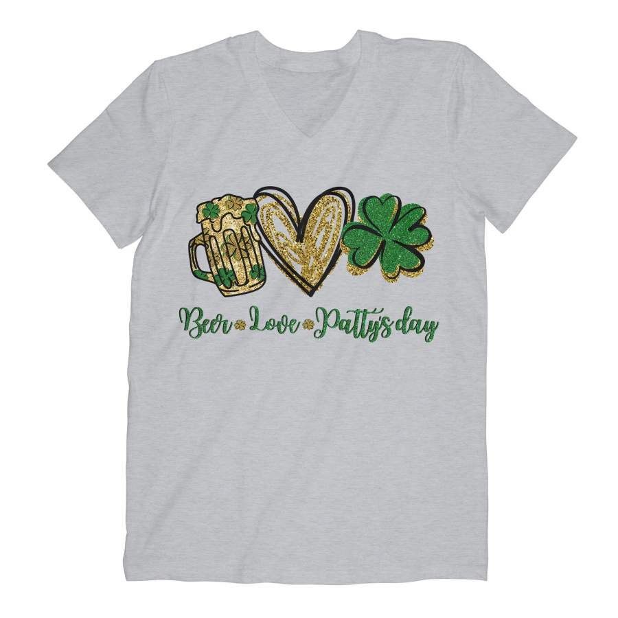 Beer Love Shamrock Patty’s Day V-neck, St. Patrick’s Day Irish Drinking Shirt