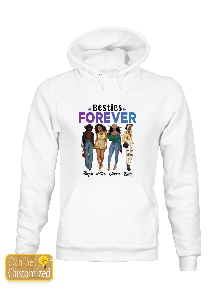 At Cotenis Store, we offer a fantastic range of print-on-demand products that can be personalized with your name. Our Bestie Forever Shirt For Best Friend Shirt To Best Friends Shirt For 4 Black Friends Customized print-on-demand products are the perfect way to add a personal touch to your wardrobe or to create a unique and thoughtful gift for someone special.