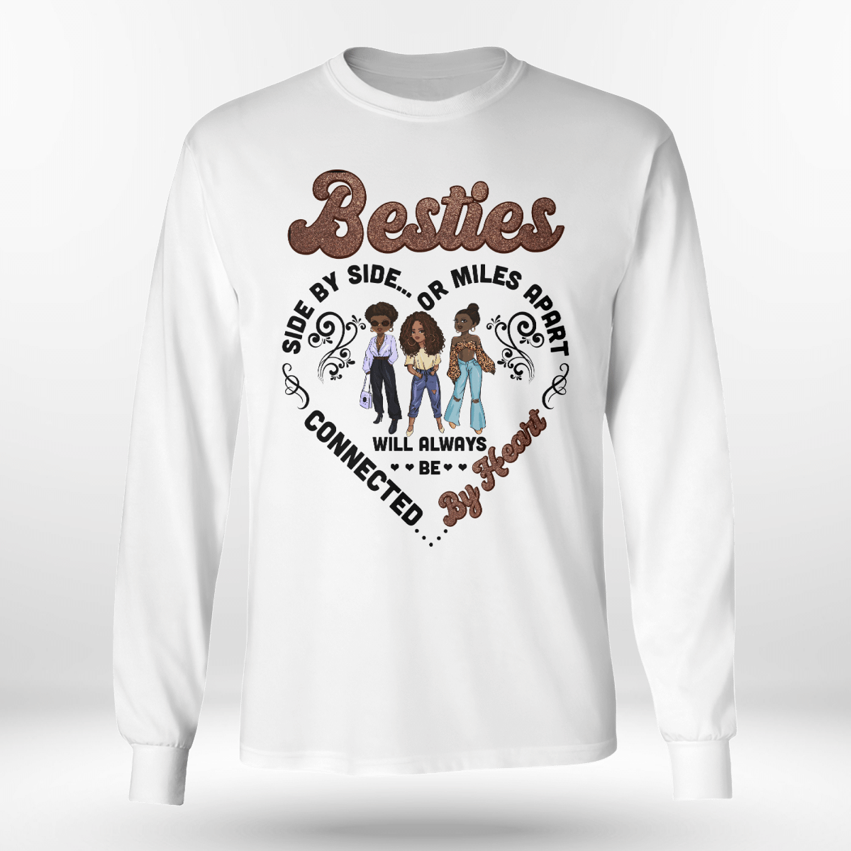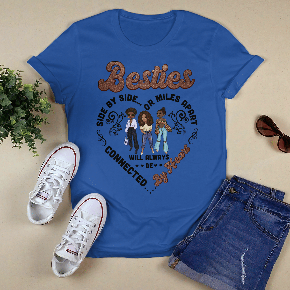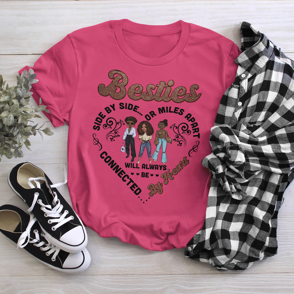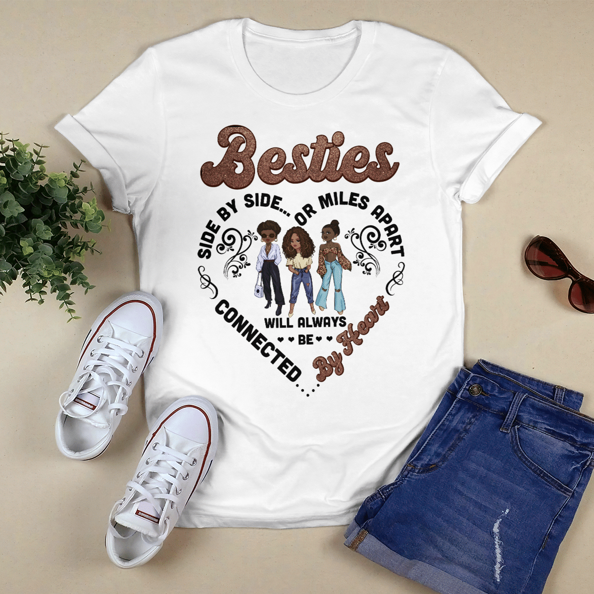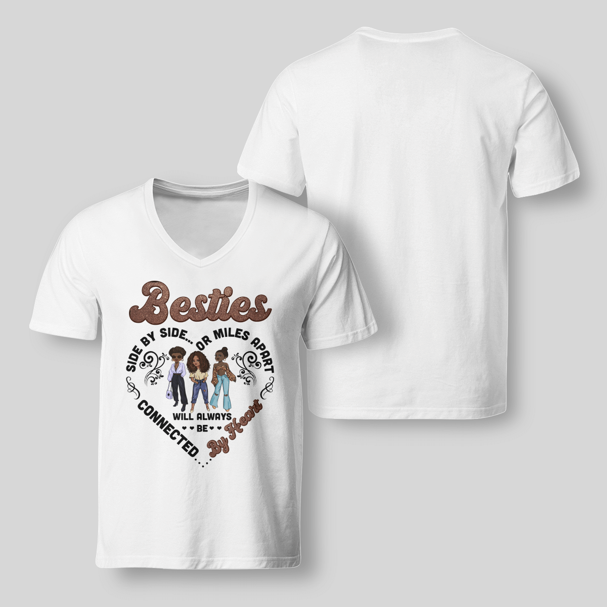 Besties Shirt For Sister Friends Shirts Side By Side Ormiles Apart Bestie Will Always Be Connected By Heart Tshirt