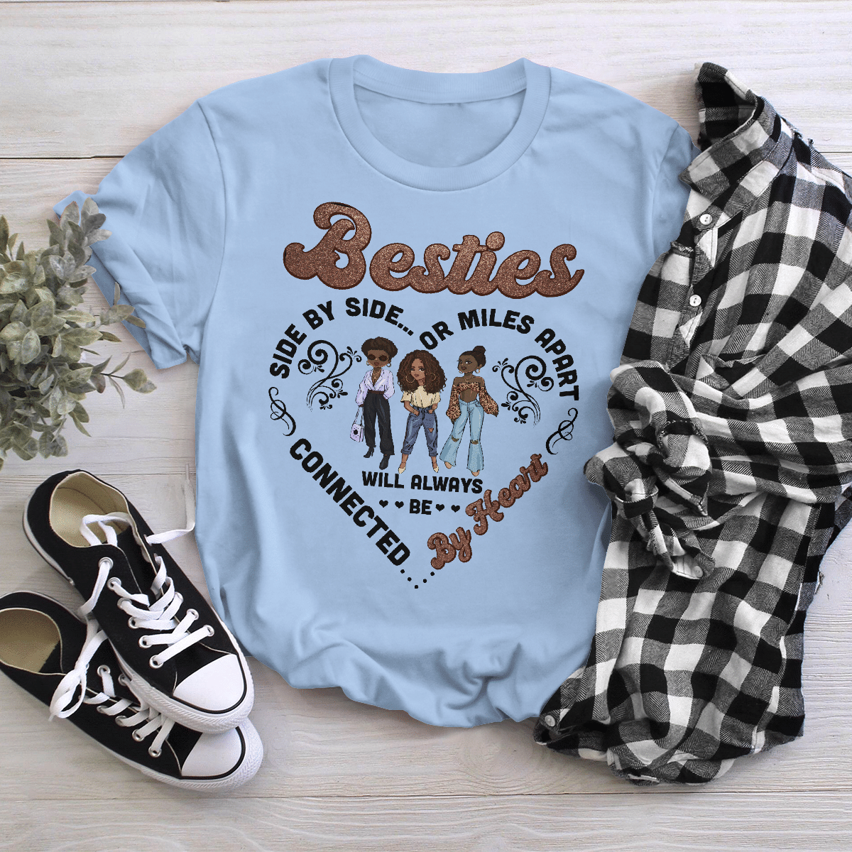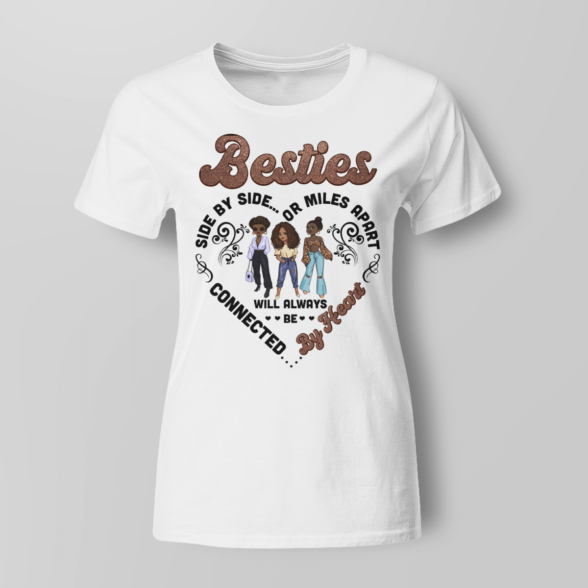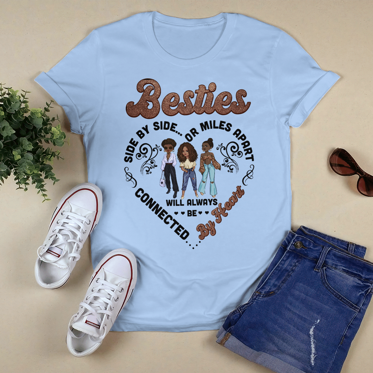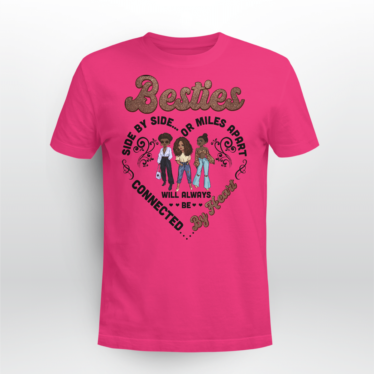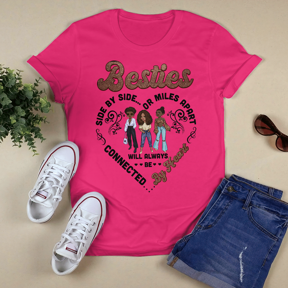 Besties Shirt For Sister Friends Shirts Side By Side Ormiles Apart Bestie Will Always Be Connected By Heart Tshirt