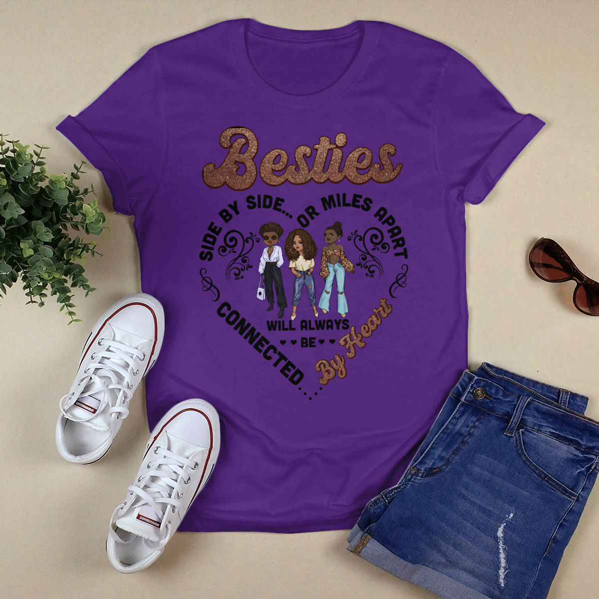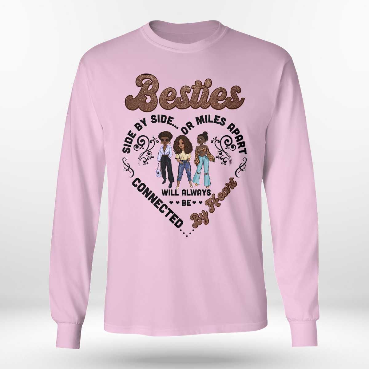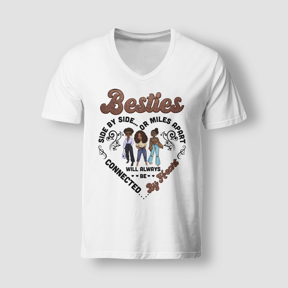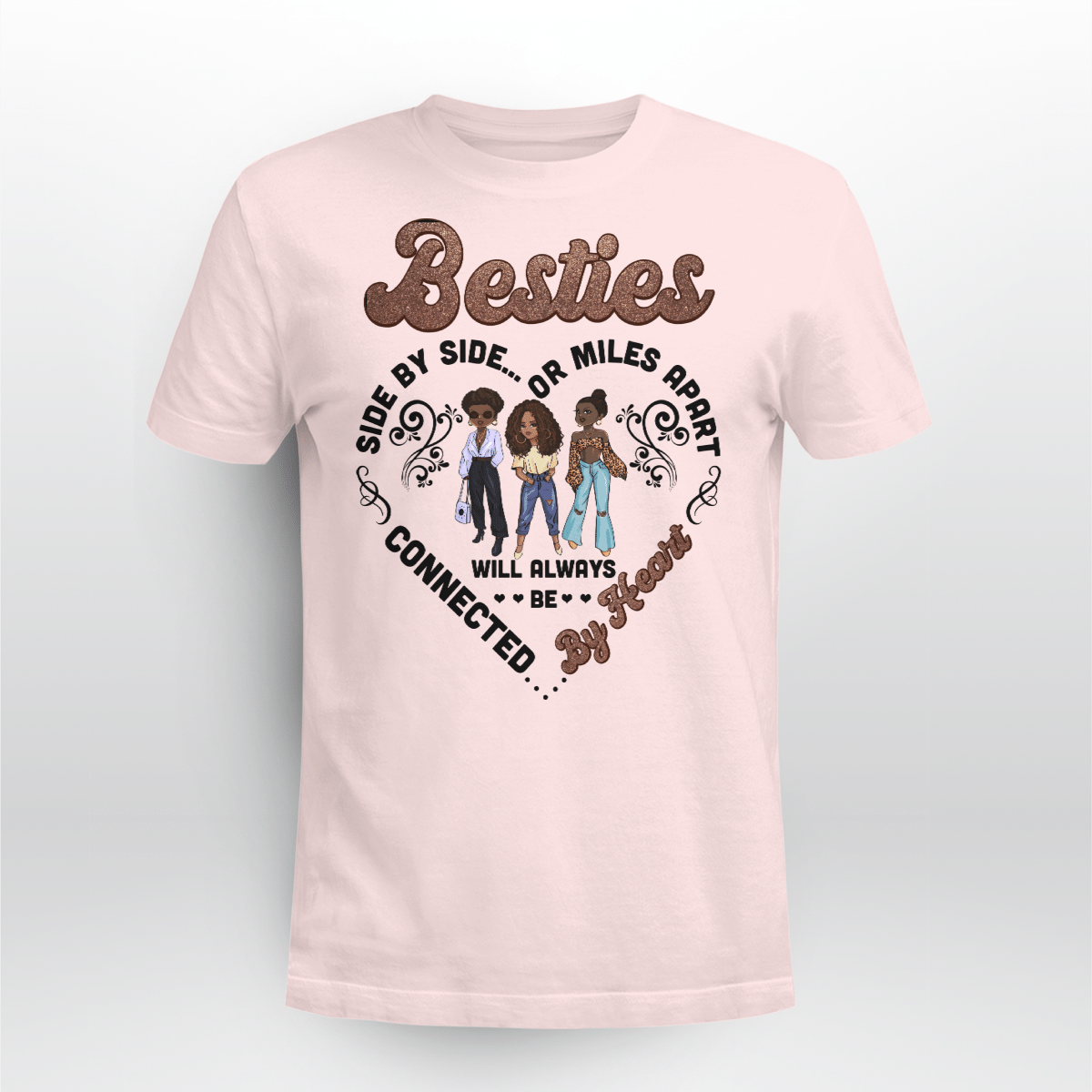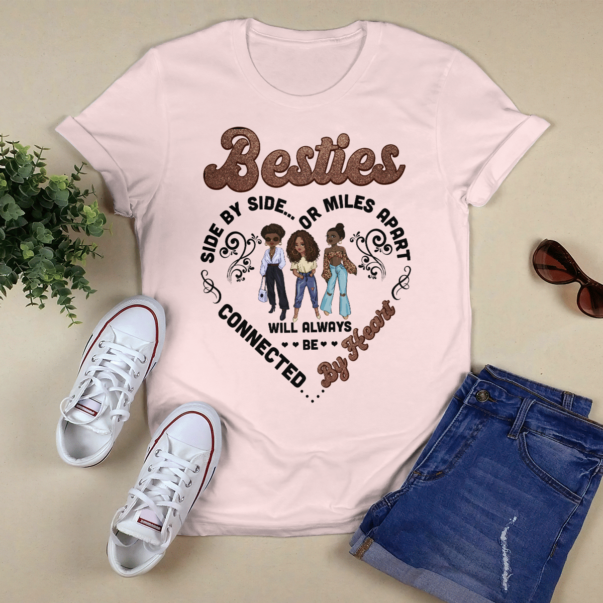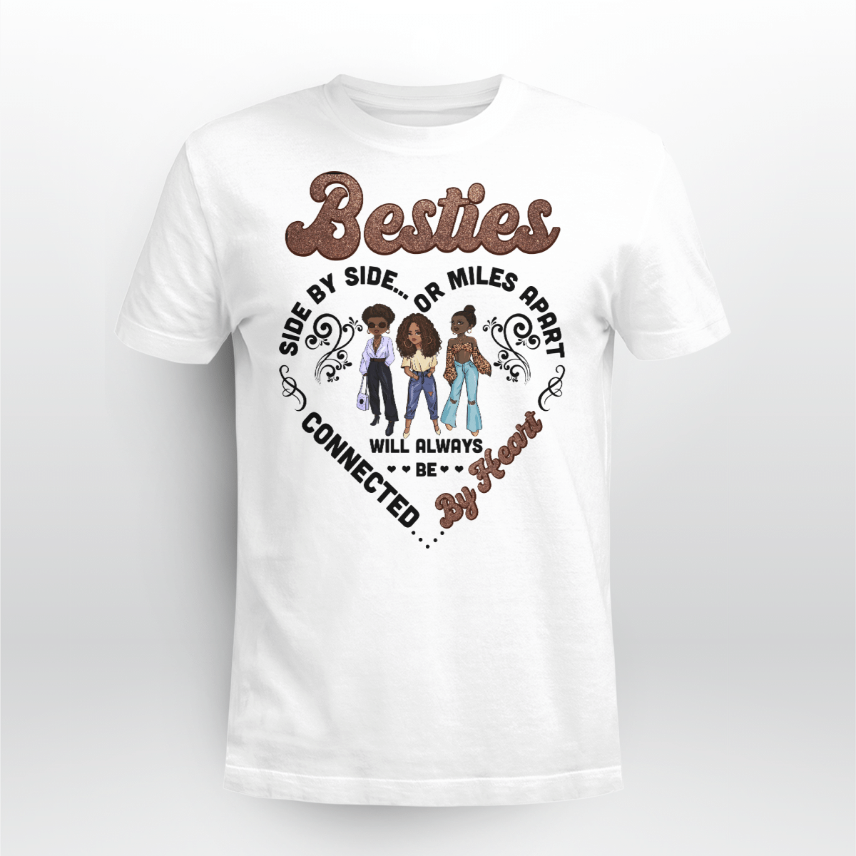 Besties Shirt For Sister Friends Shirts Side By Side Ormiles Apart Bestie Will Always Be Connected By Heart Tshirt