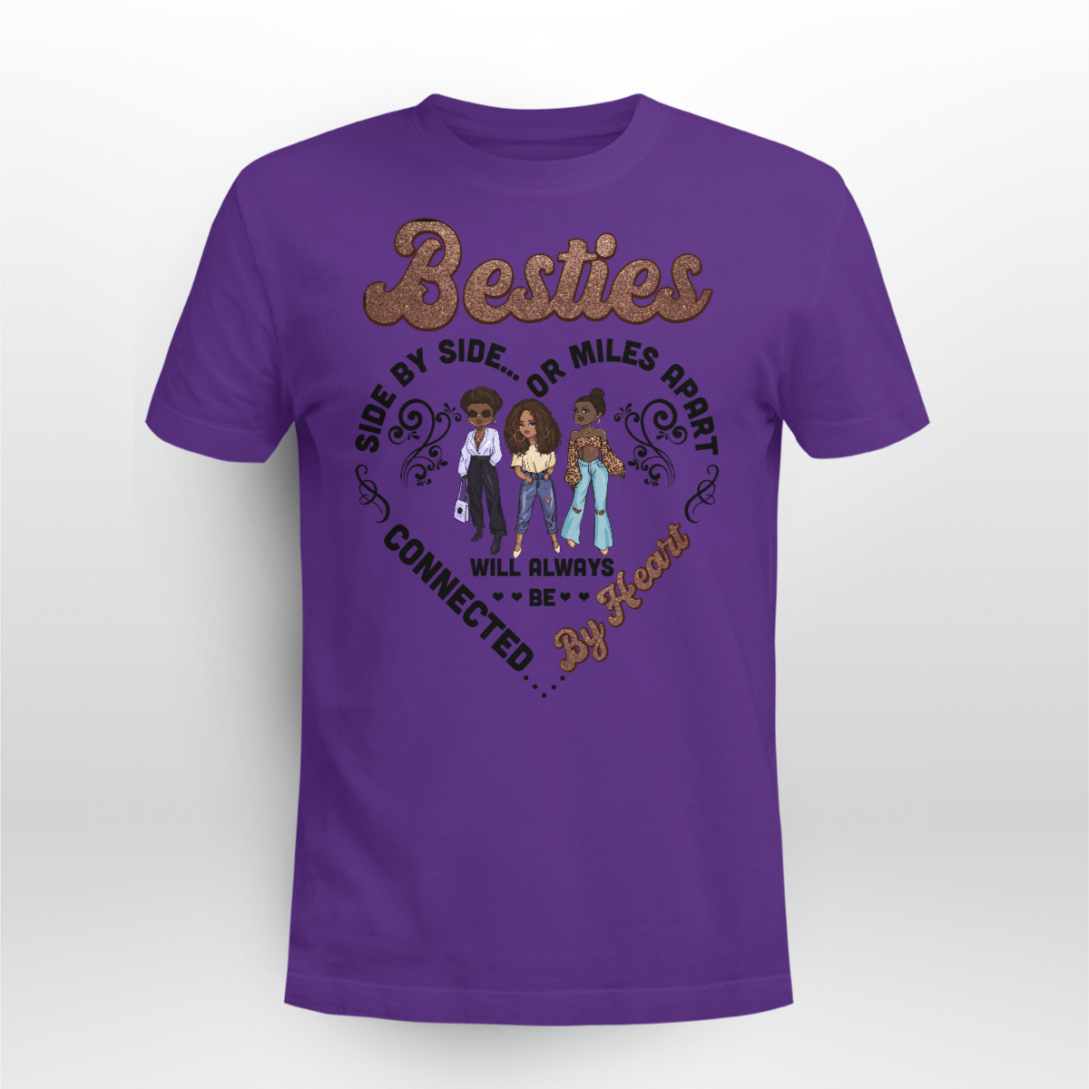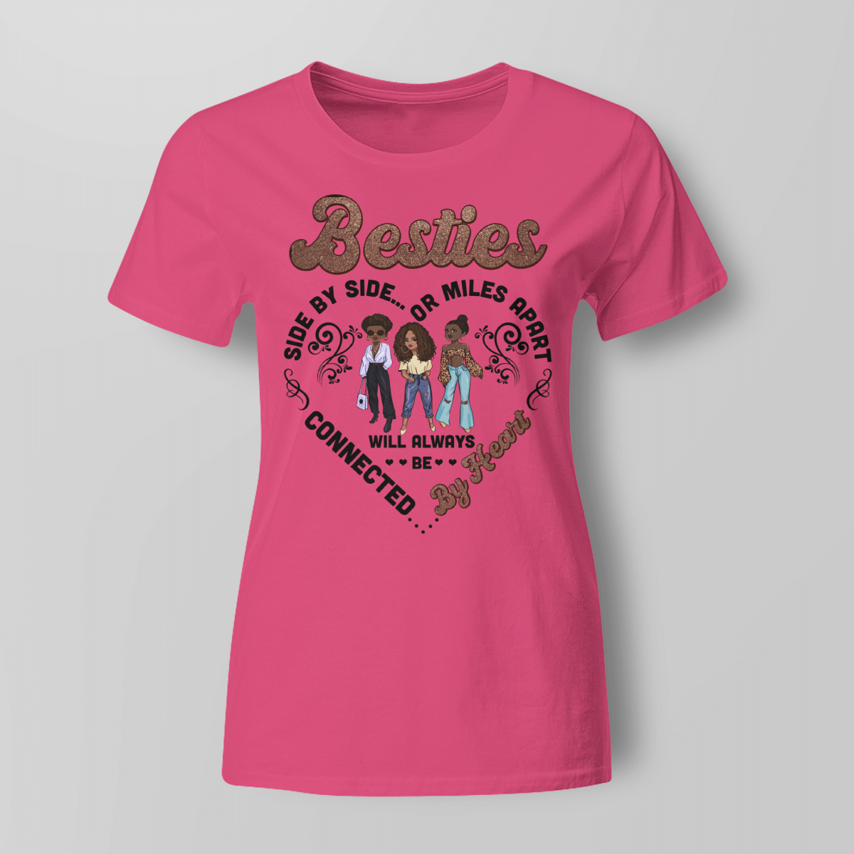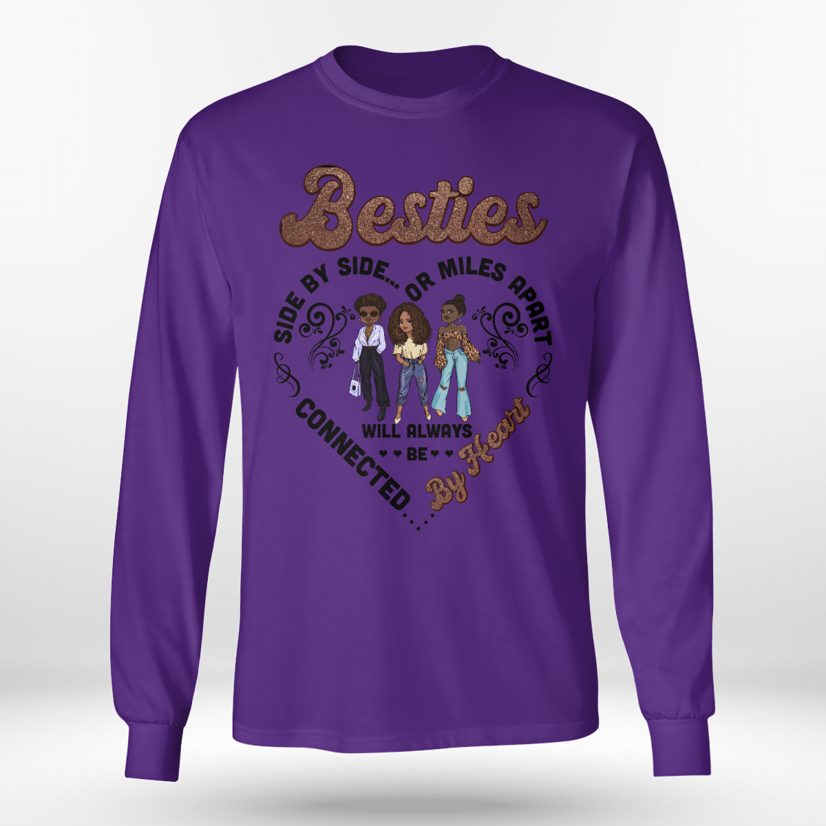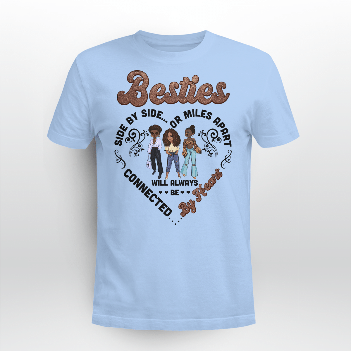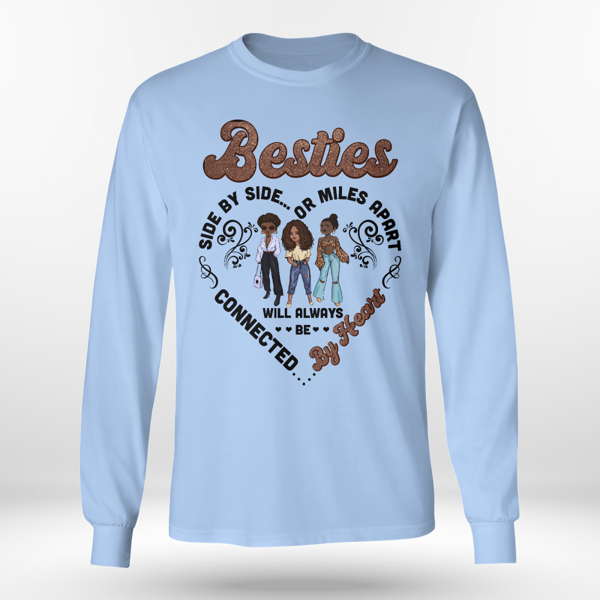 Besties Shirt For Sister Friends Shirts Side By Side Ormiles Apart Bestie Will Always Be Connected By Heart Tshirt
