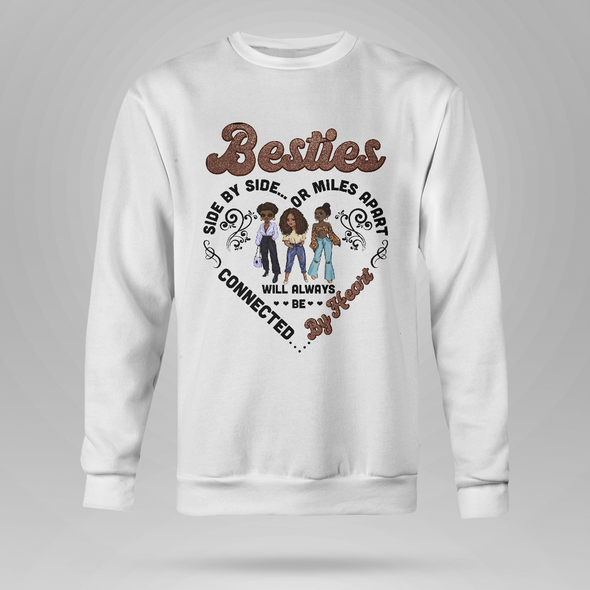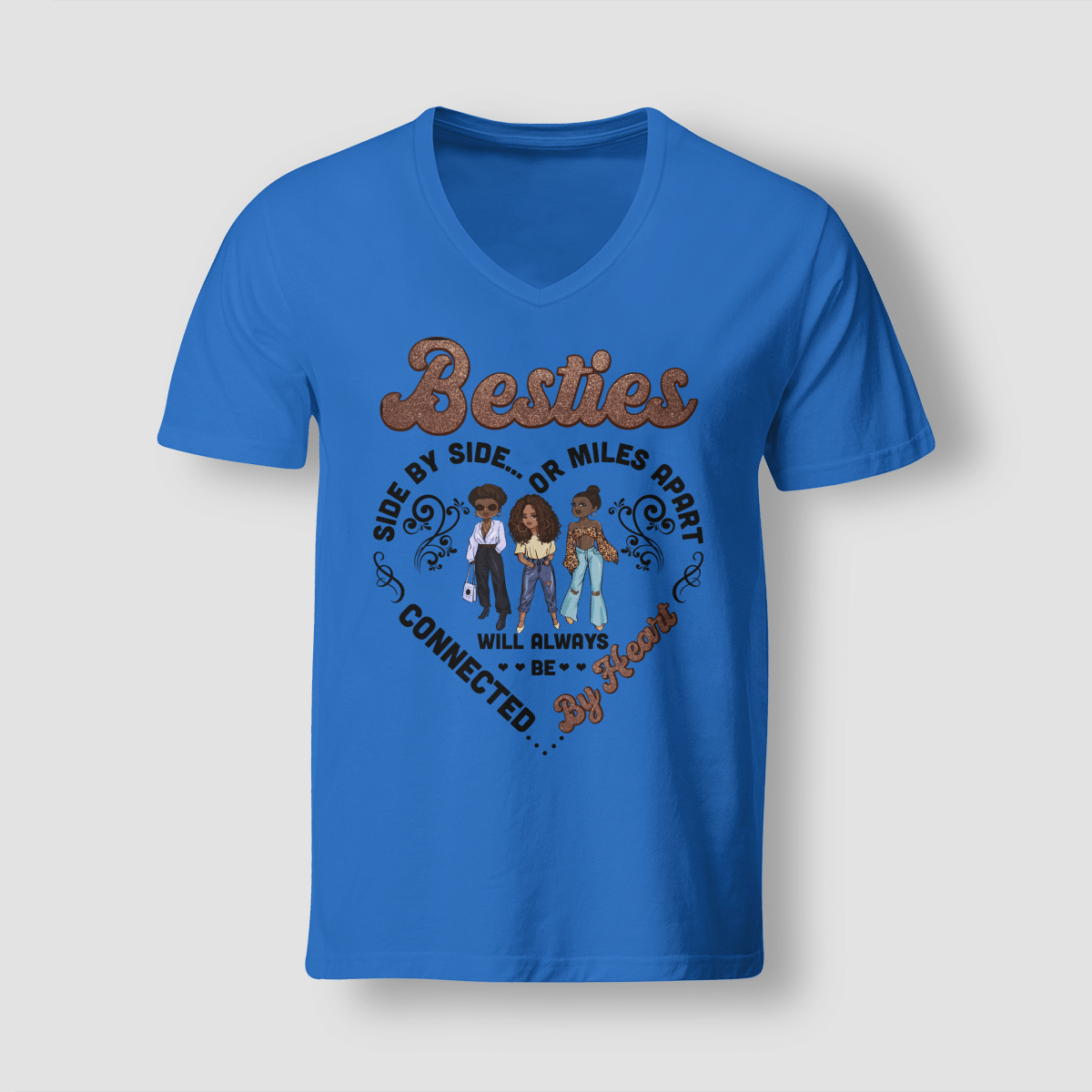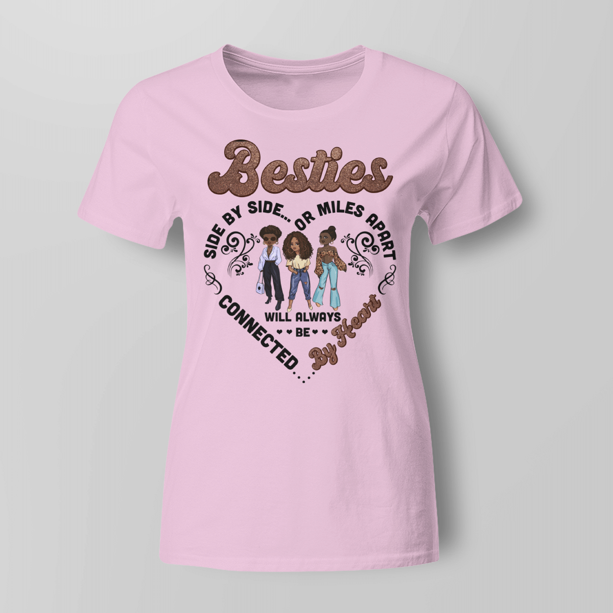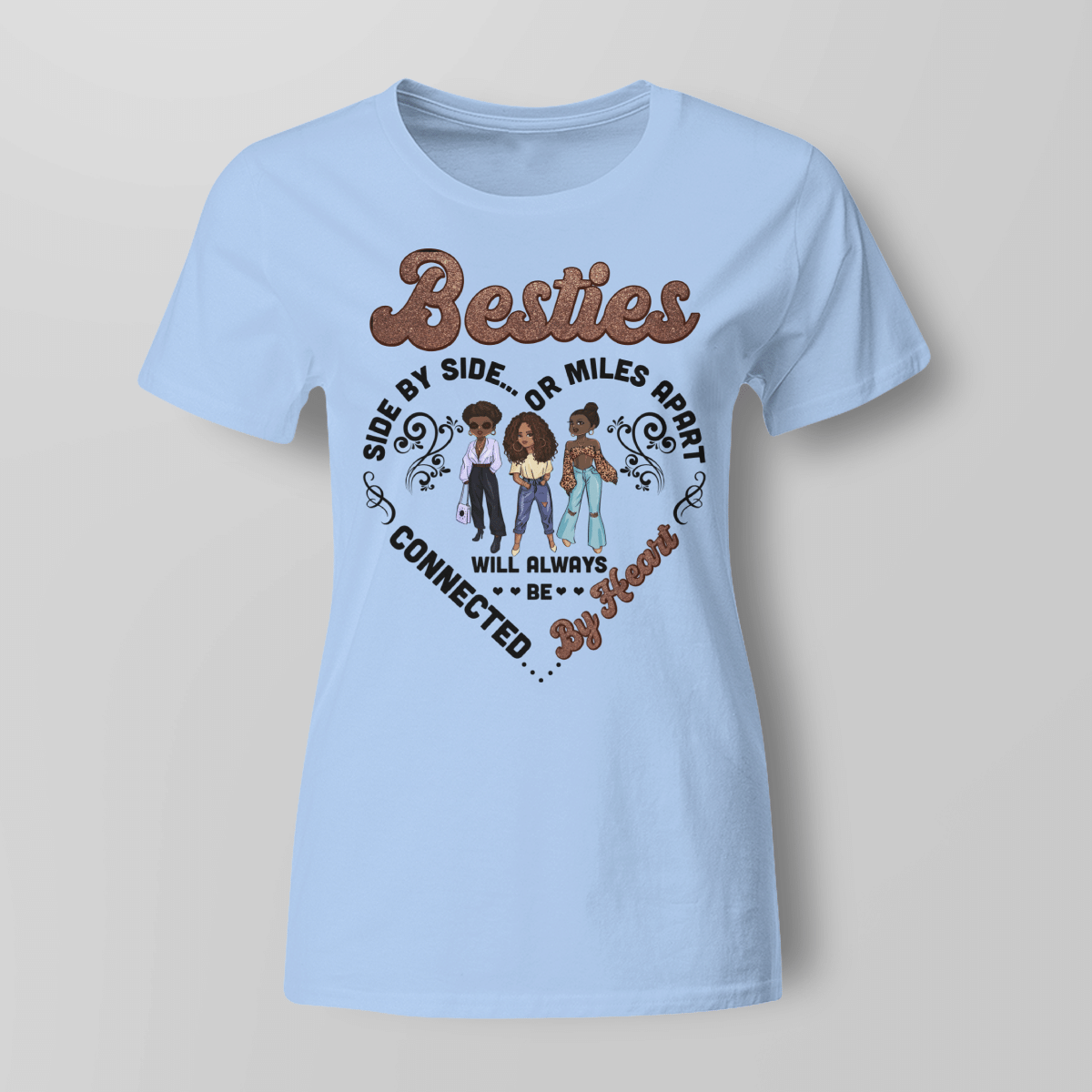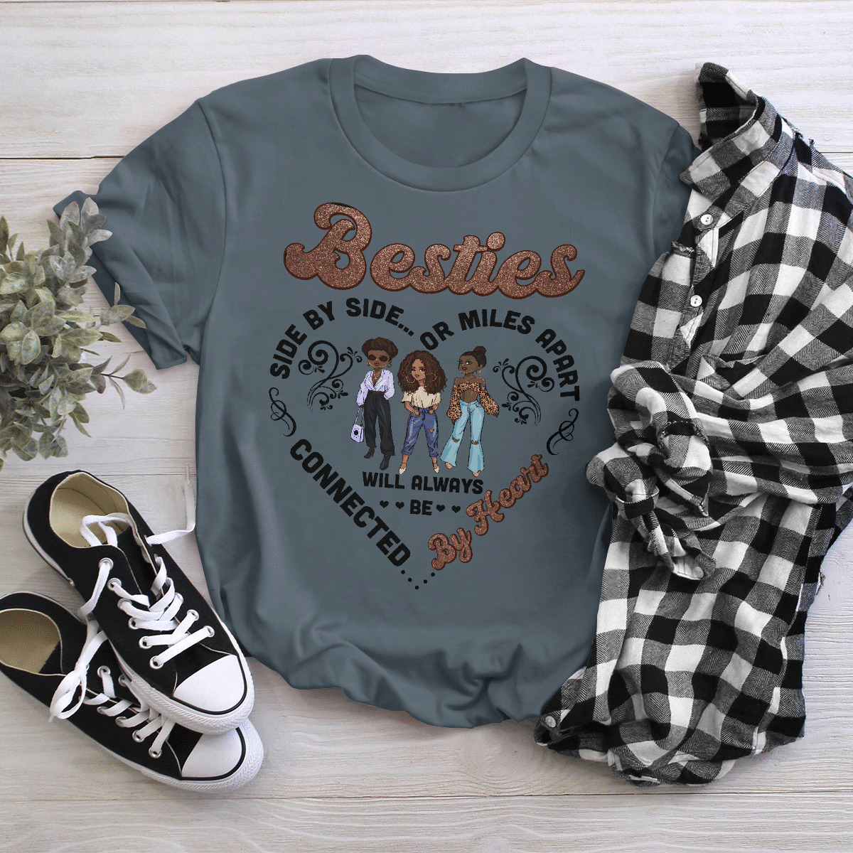 Besties Shirt For Sister Friends Shirts Side By Side Ormiles Apart Bestie Will Always Be Connected By Heart Tshirt