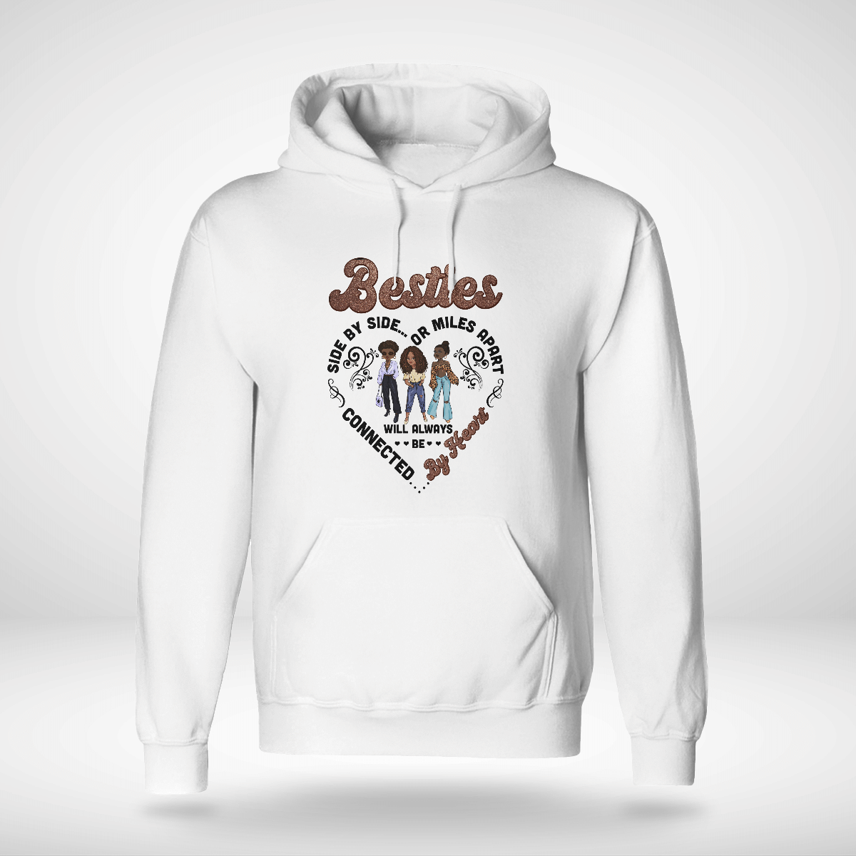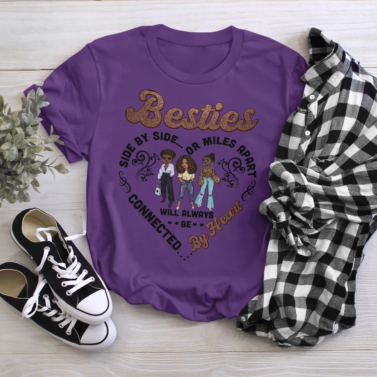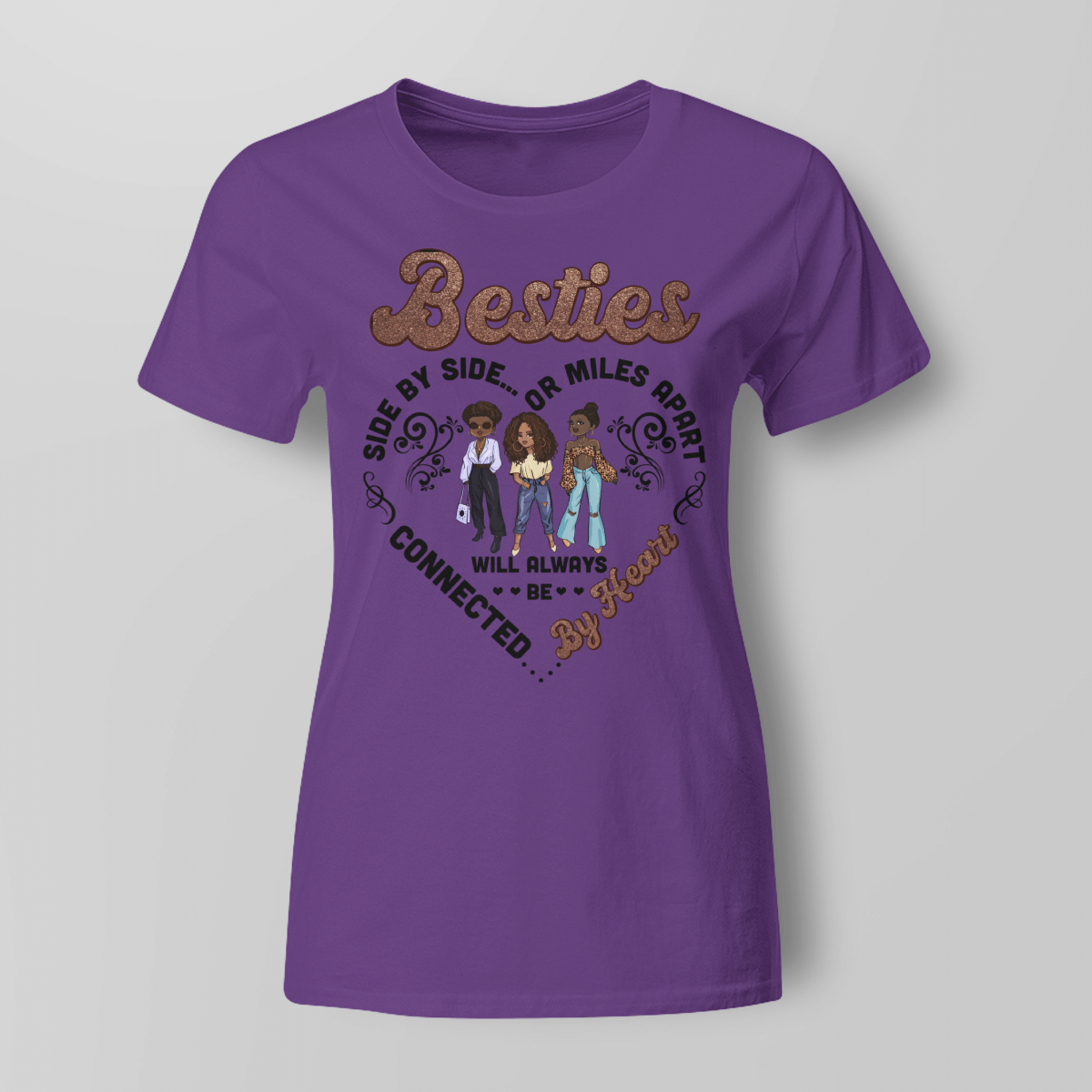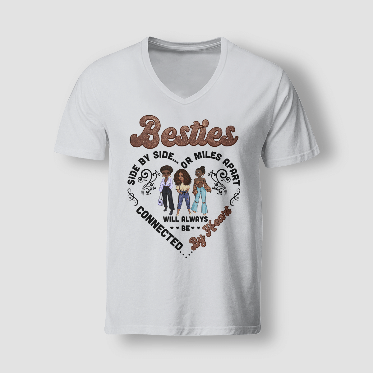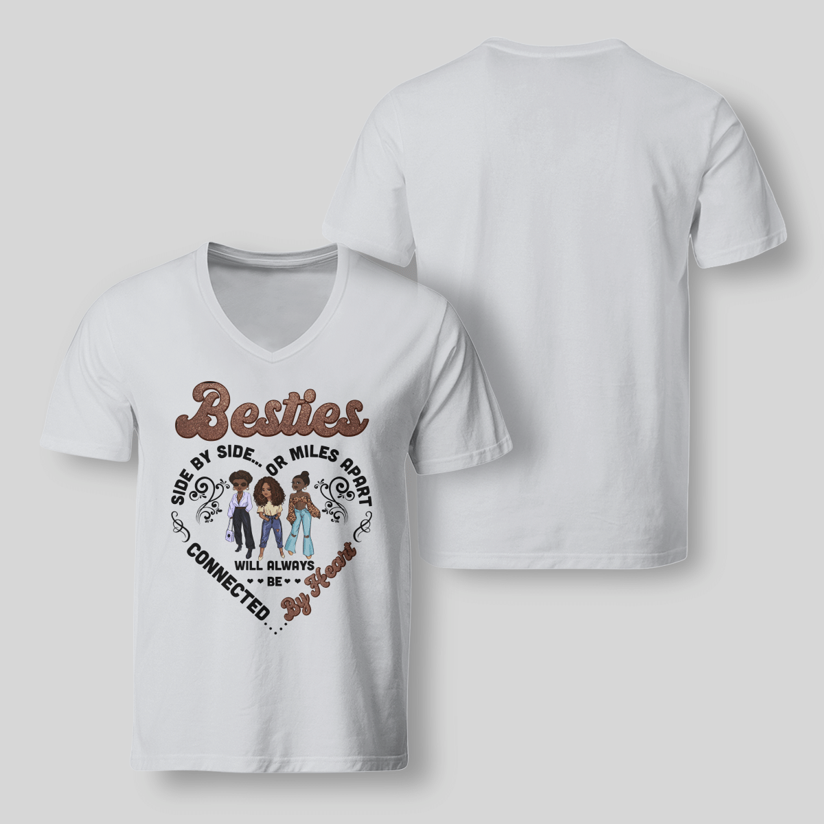 Besties Shirt For Sister Friends Shirts Side By Side Ormiles Apart Bestie Will Always Be Connected By Heart Tshirt