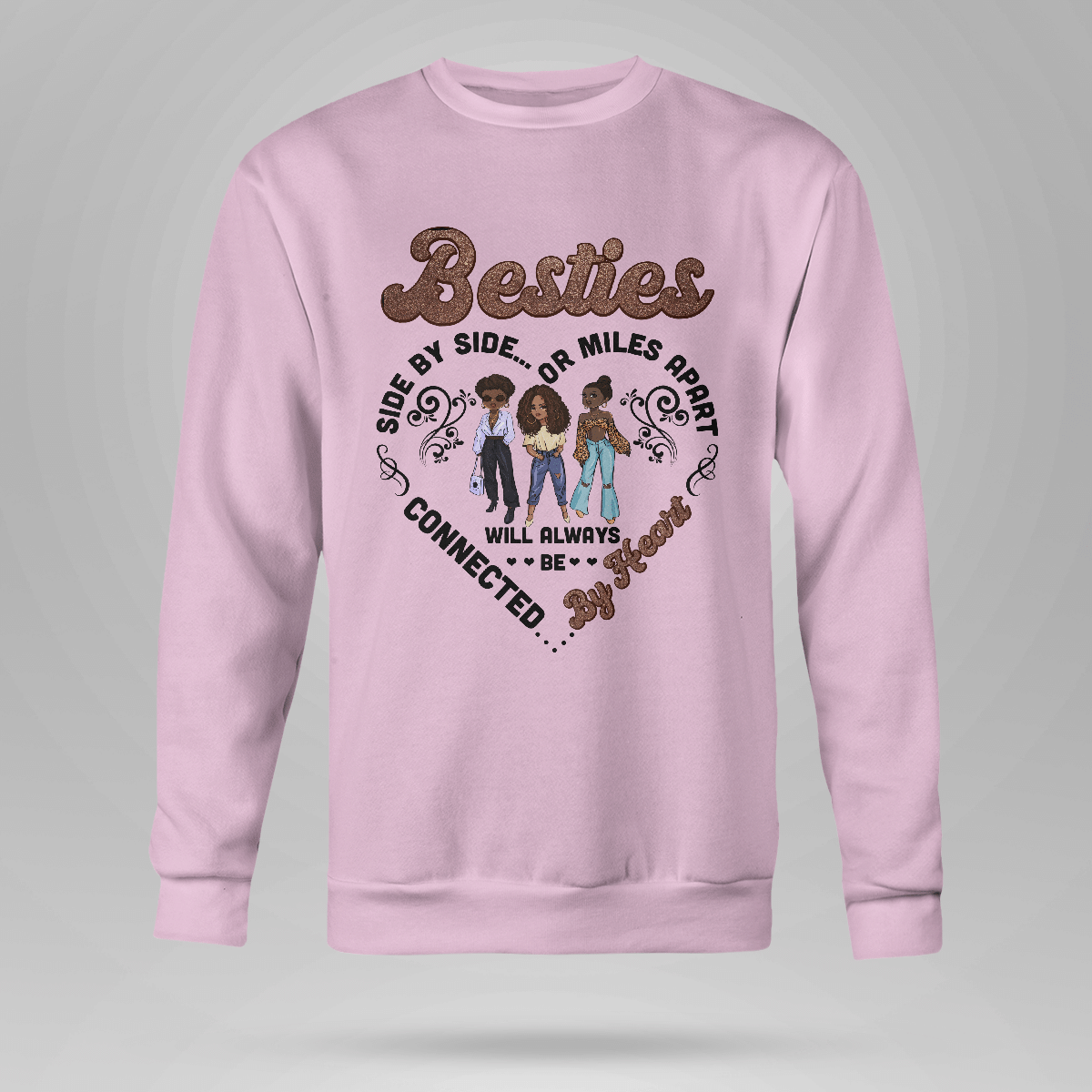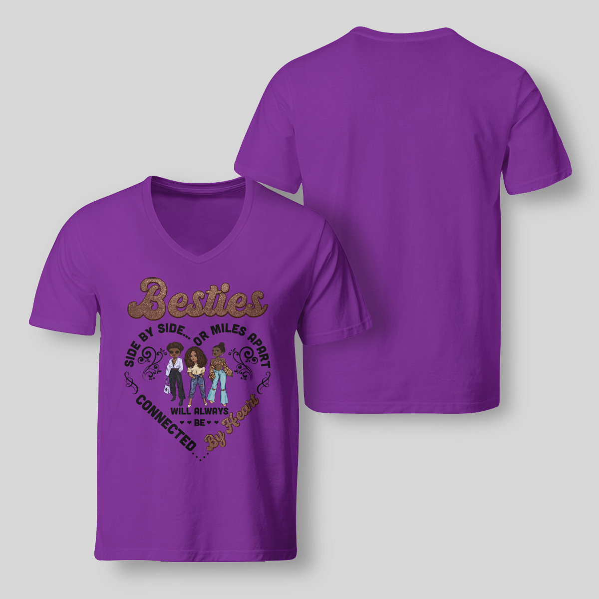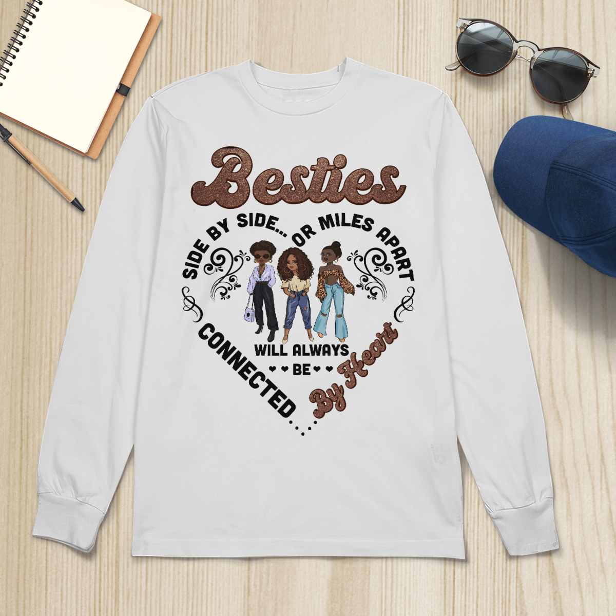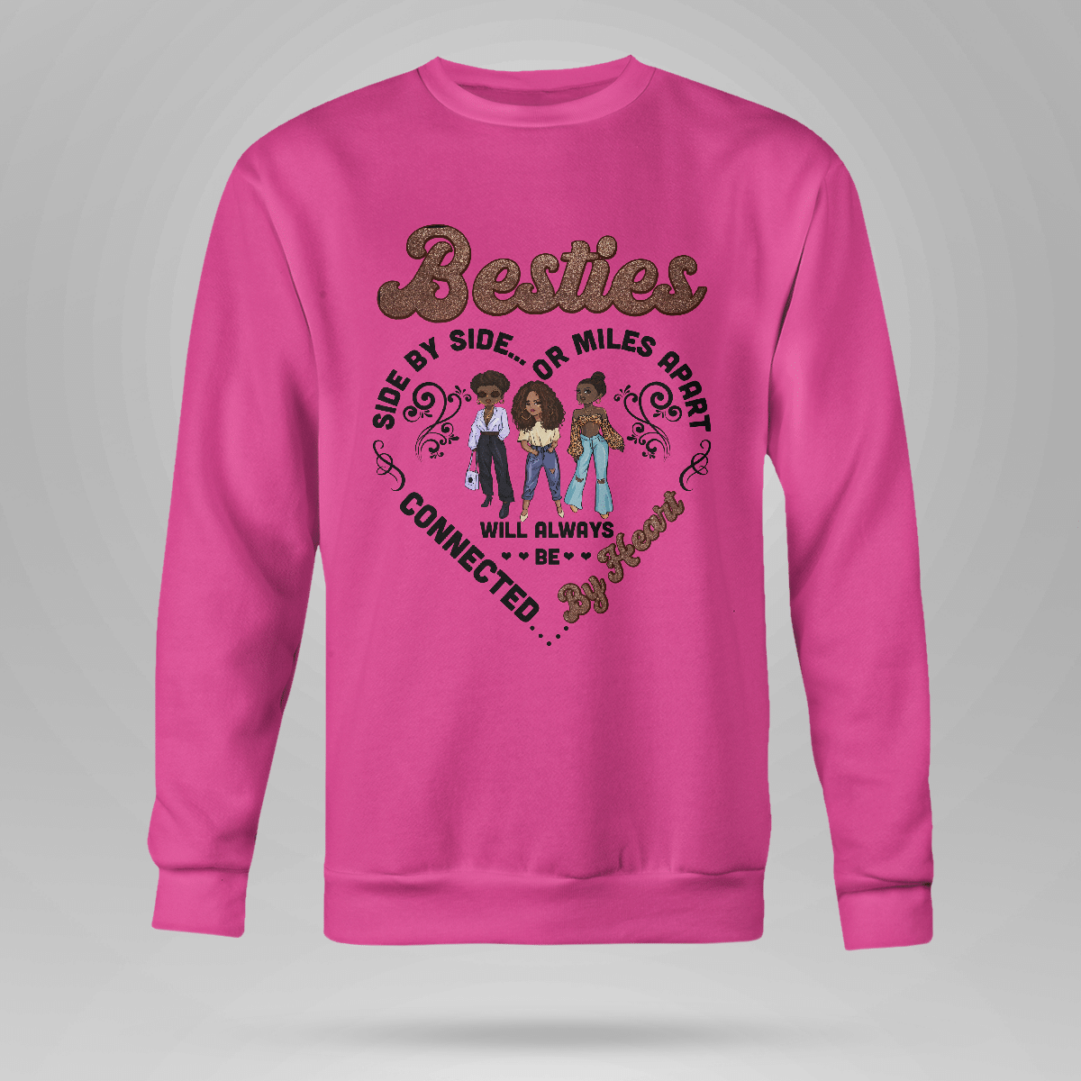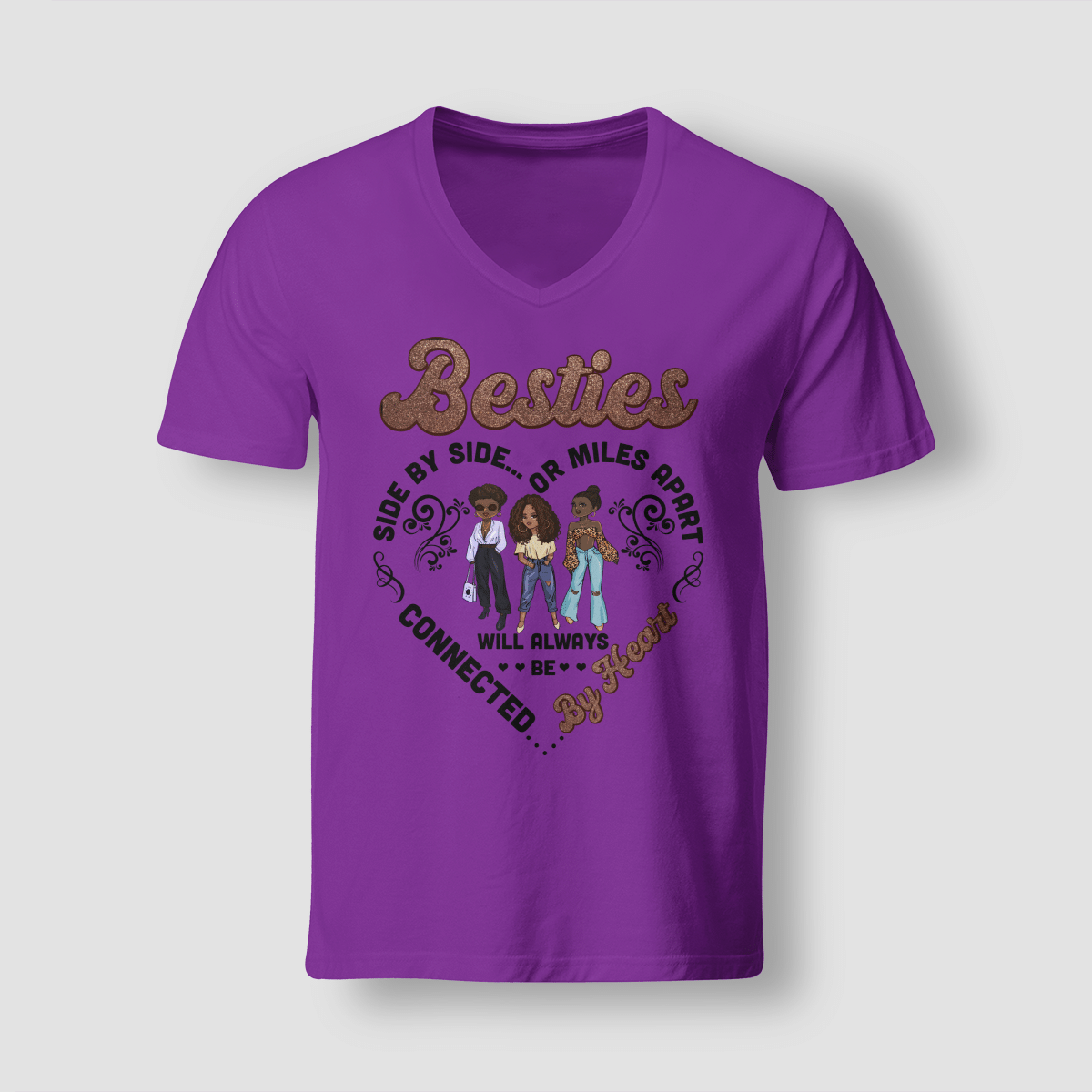Besties Shirt For Sister Friends Shirts Side By Side Ormiles Apart Bestie Will Always Be Connected By Heart Tshirt