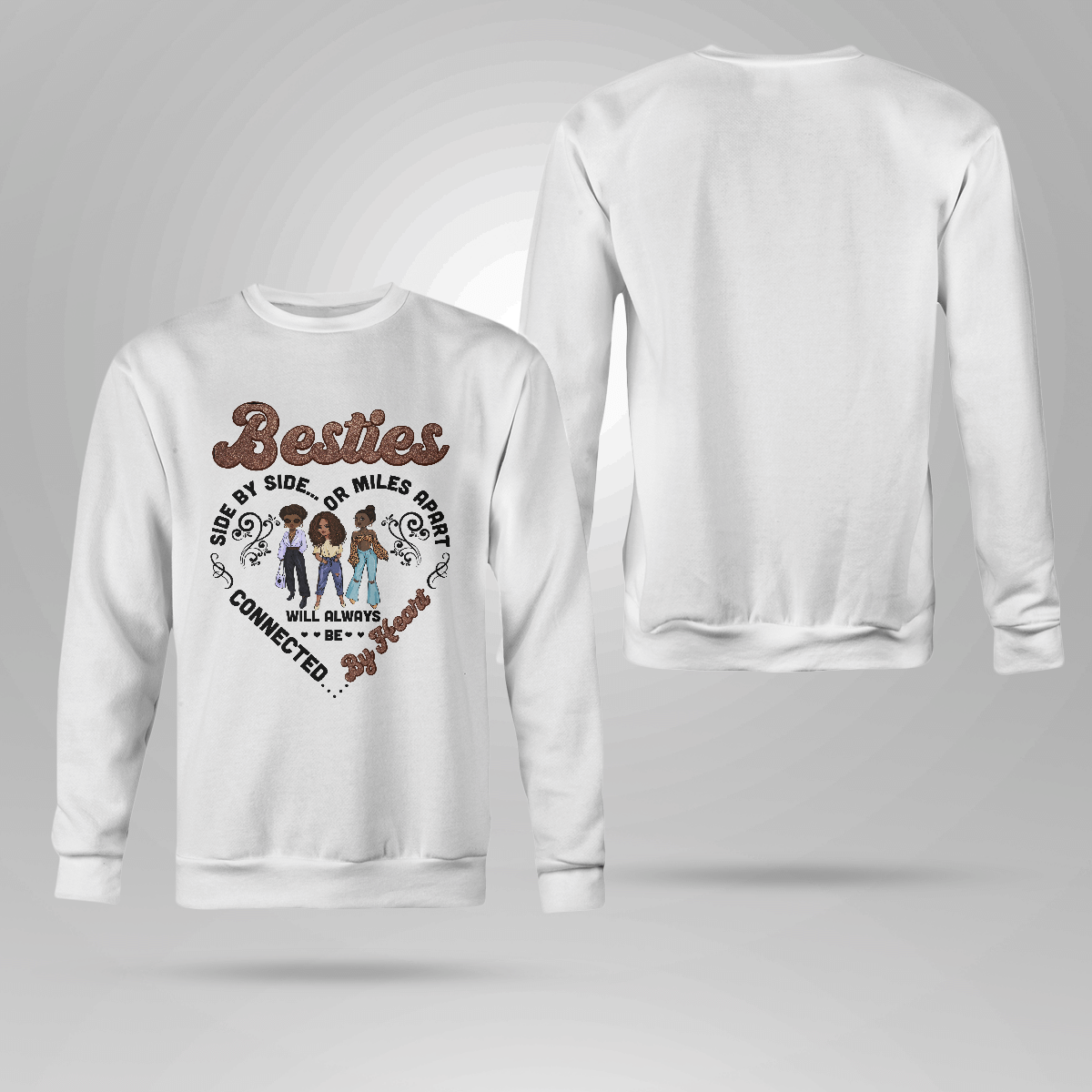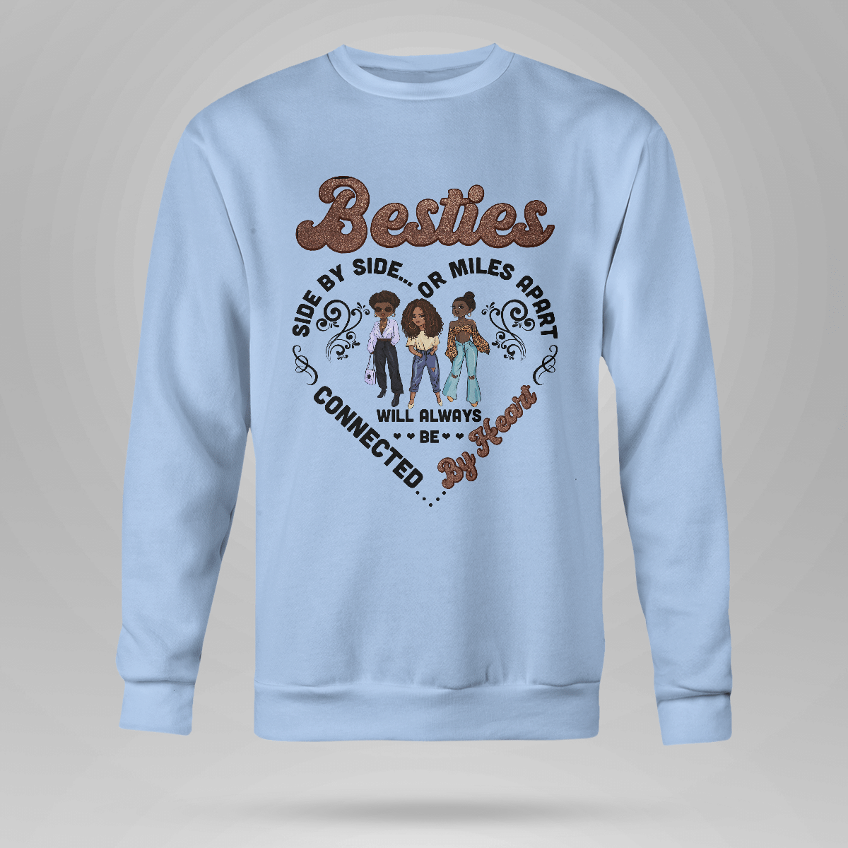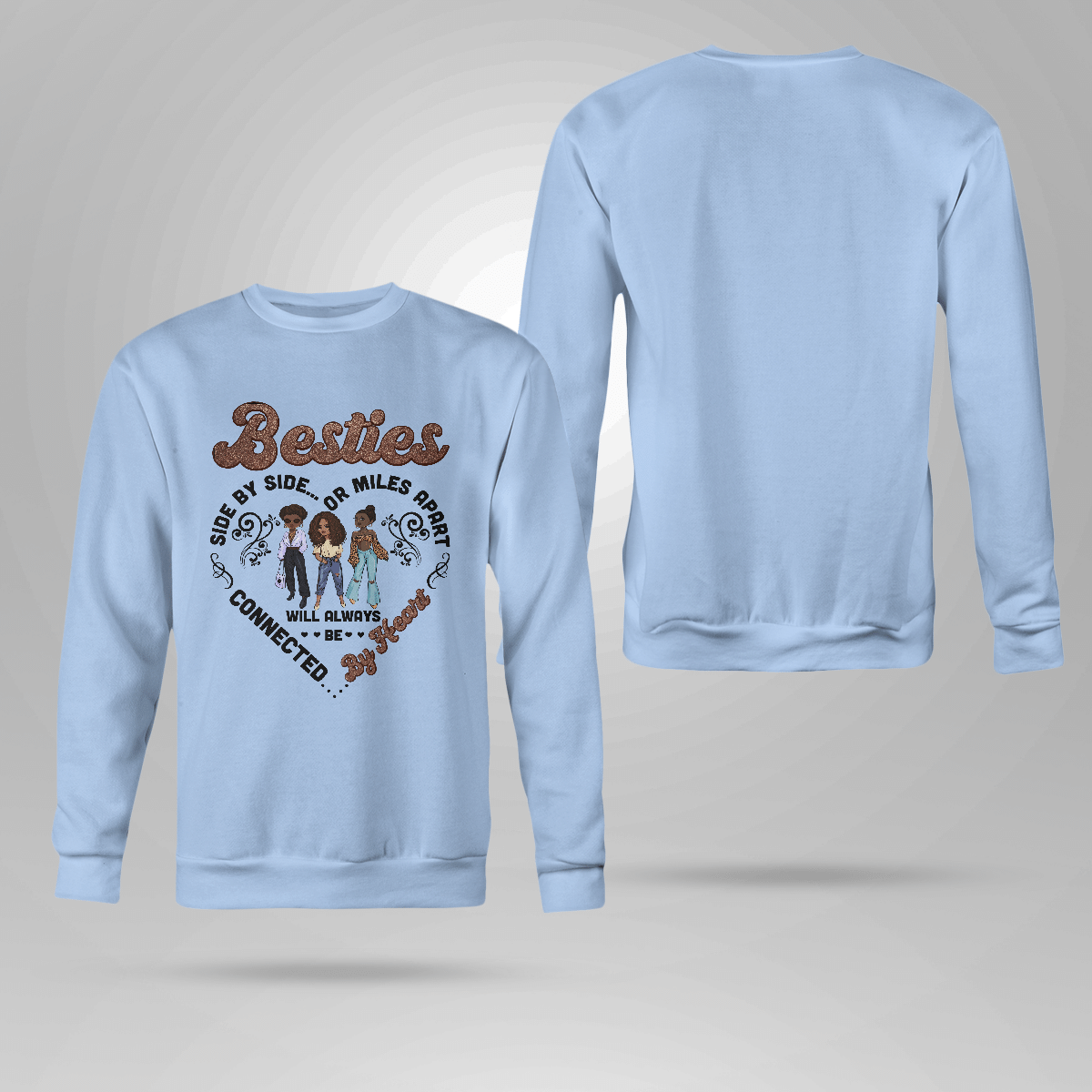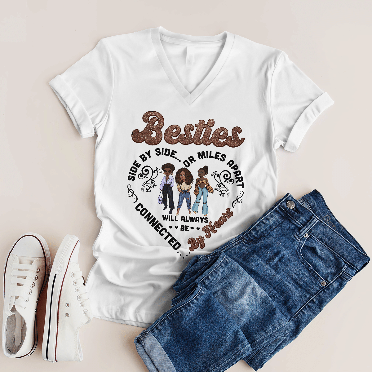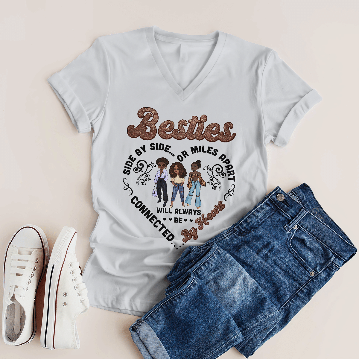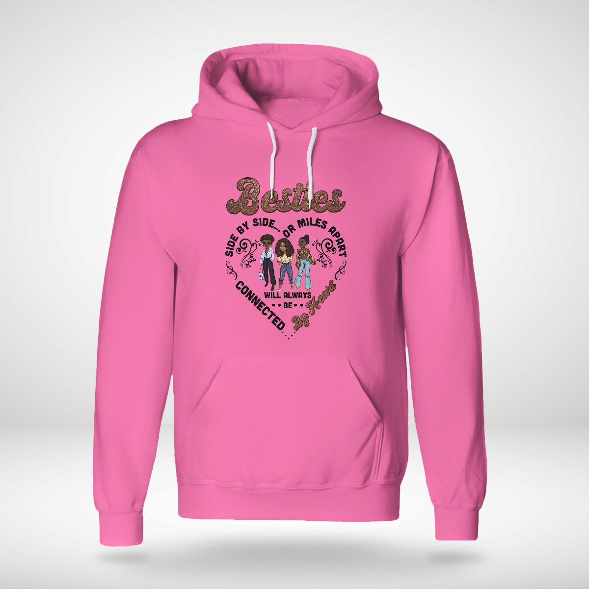 Besties Shirt For Sister Friends Shirts Side By Side Ormiles Apart Bestie Will Always Be Connected By Heart Tshirt