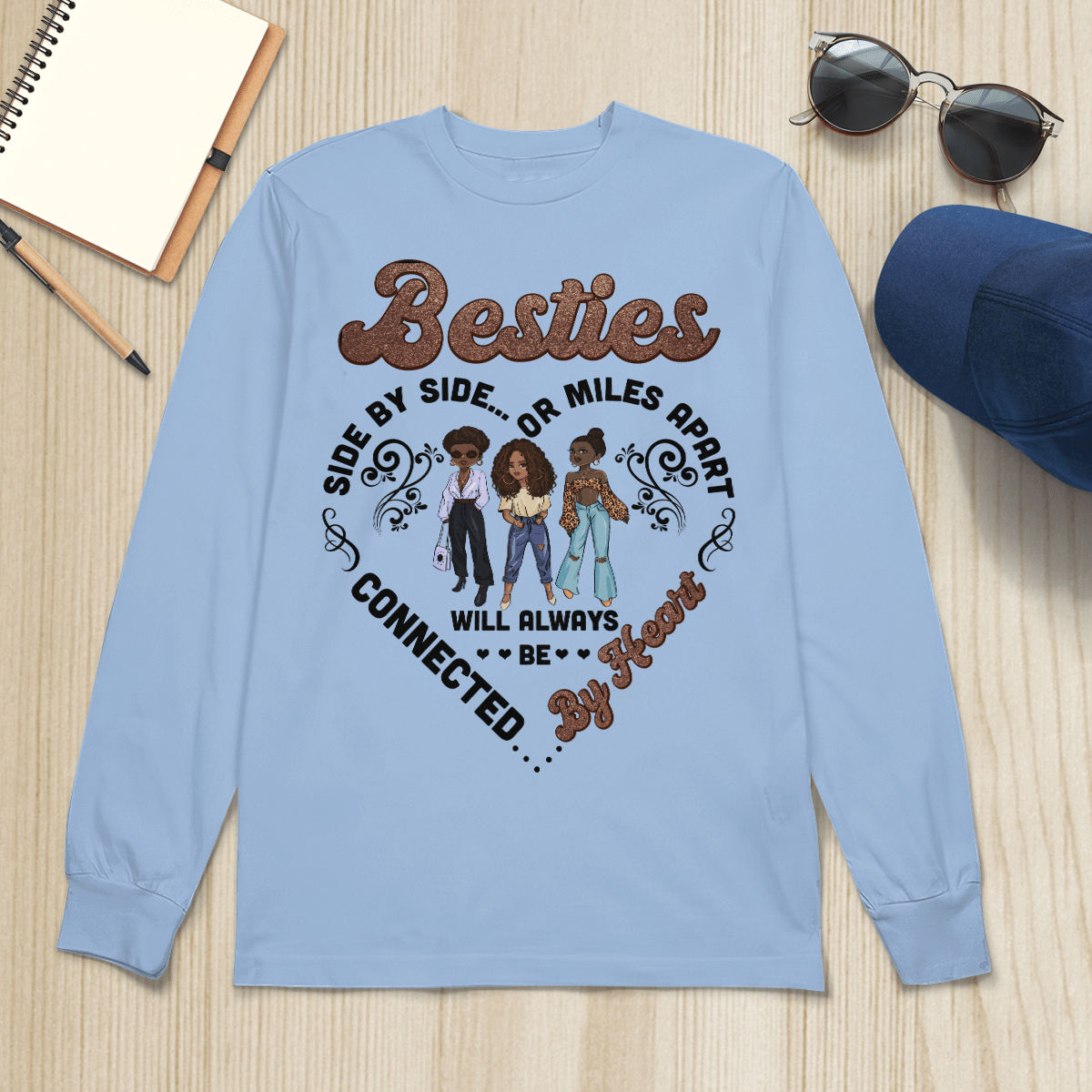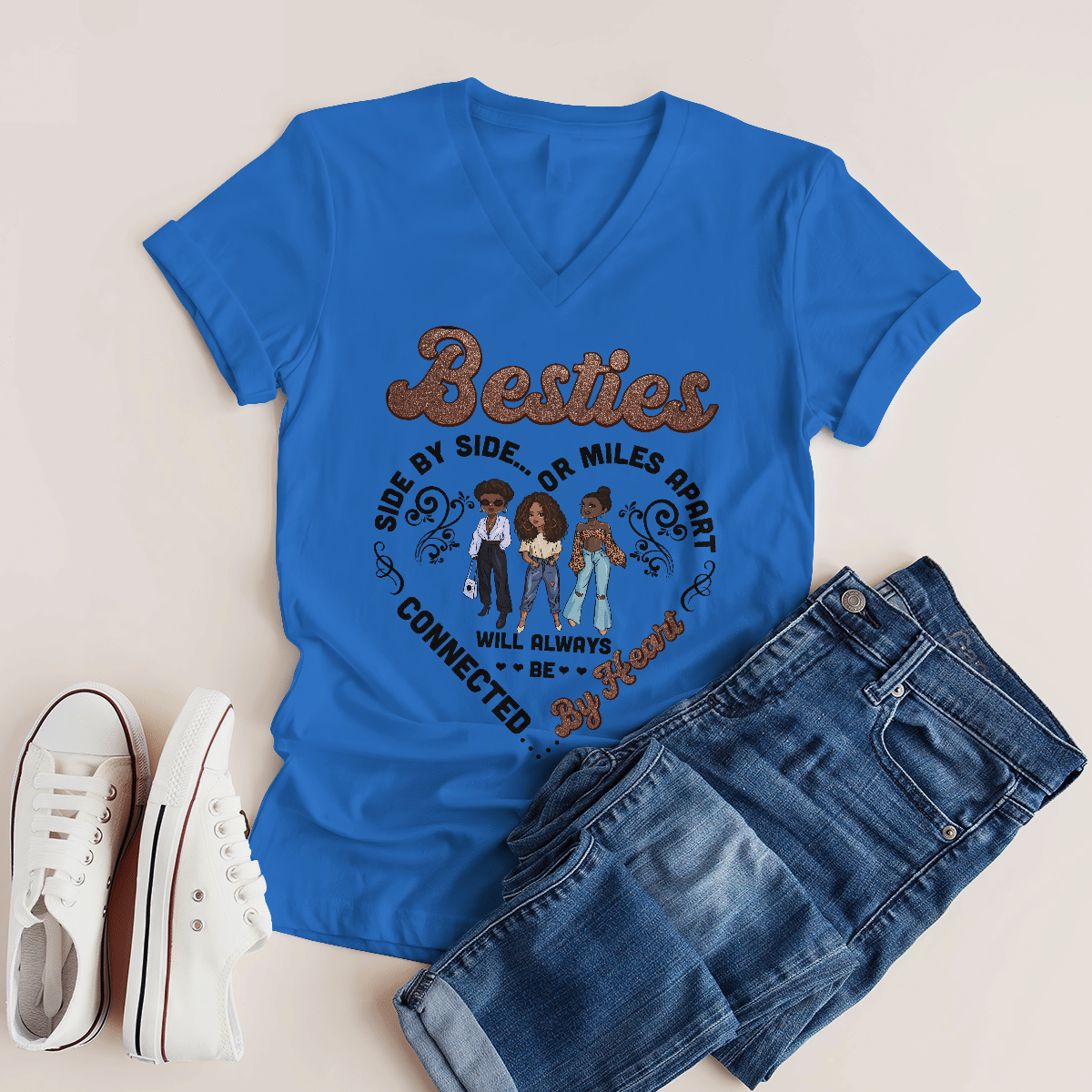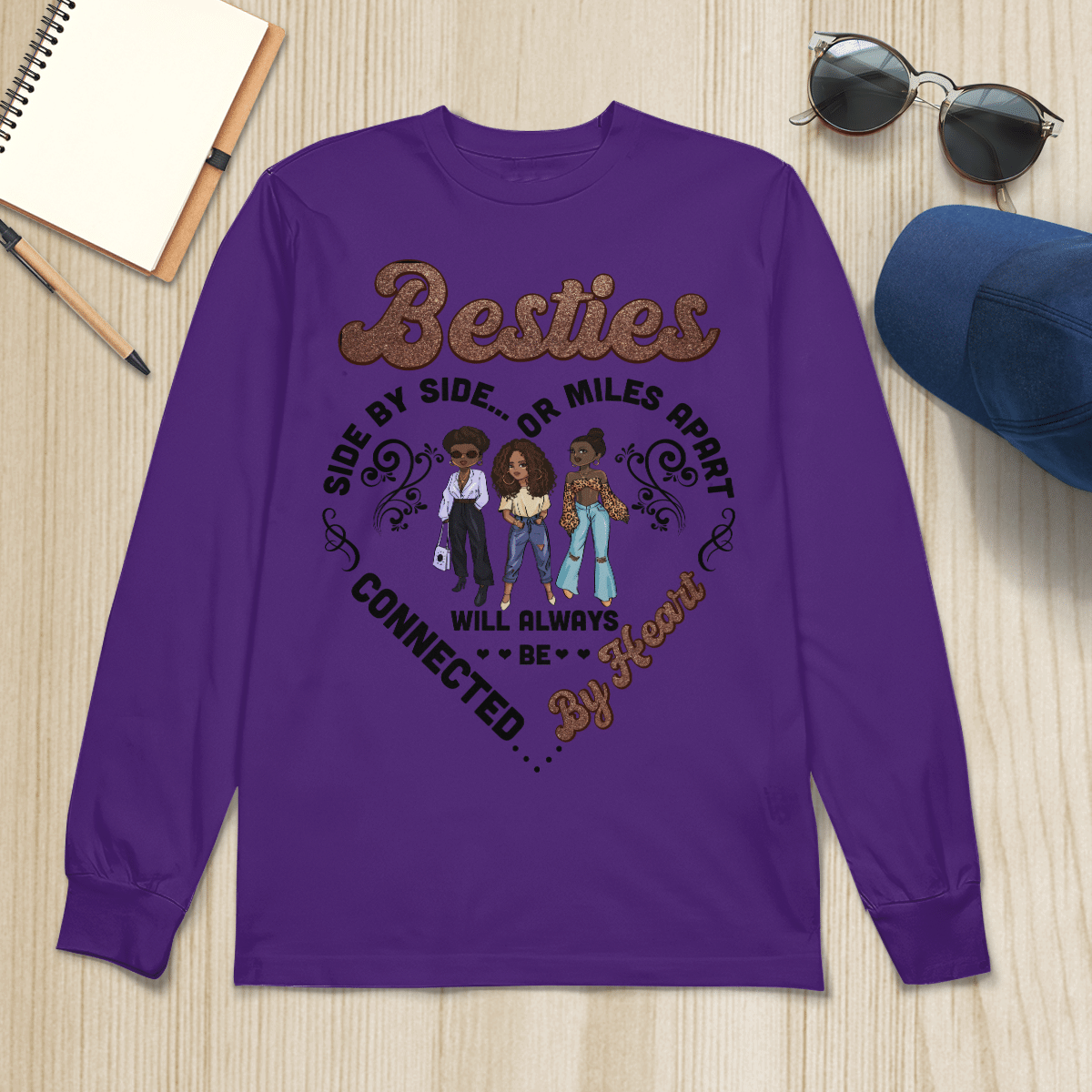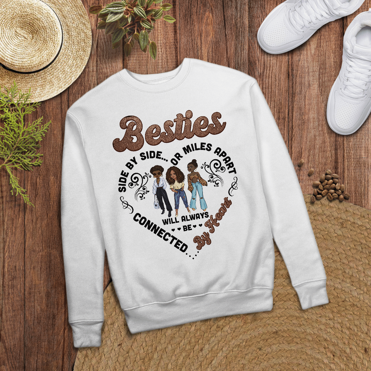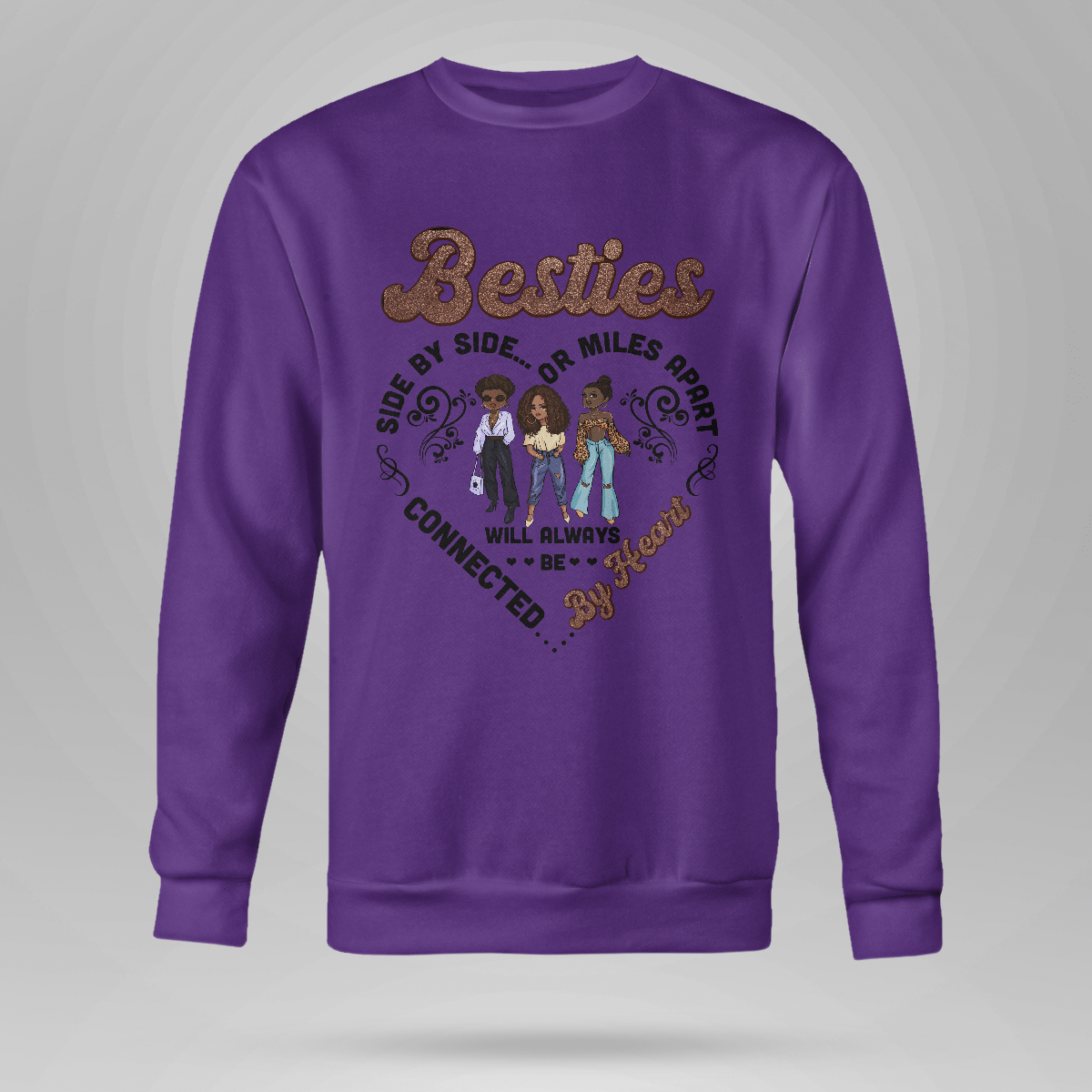 Besties Shirt For Sister Friends Shirts Side By Side Ormiles Apart Bestie Will Always Be Connected By Heart Tshirt