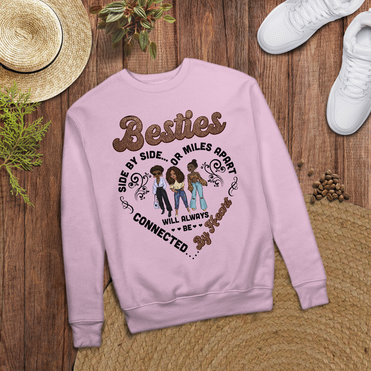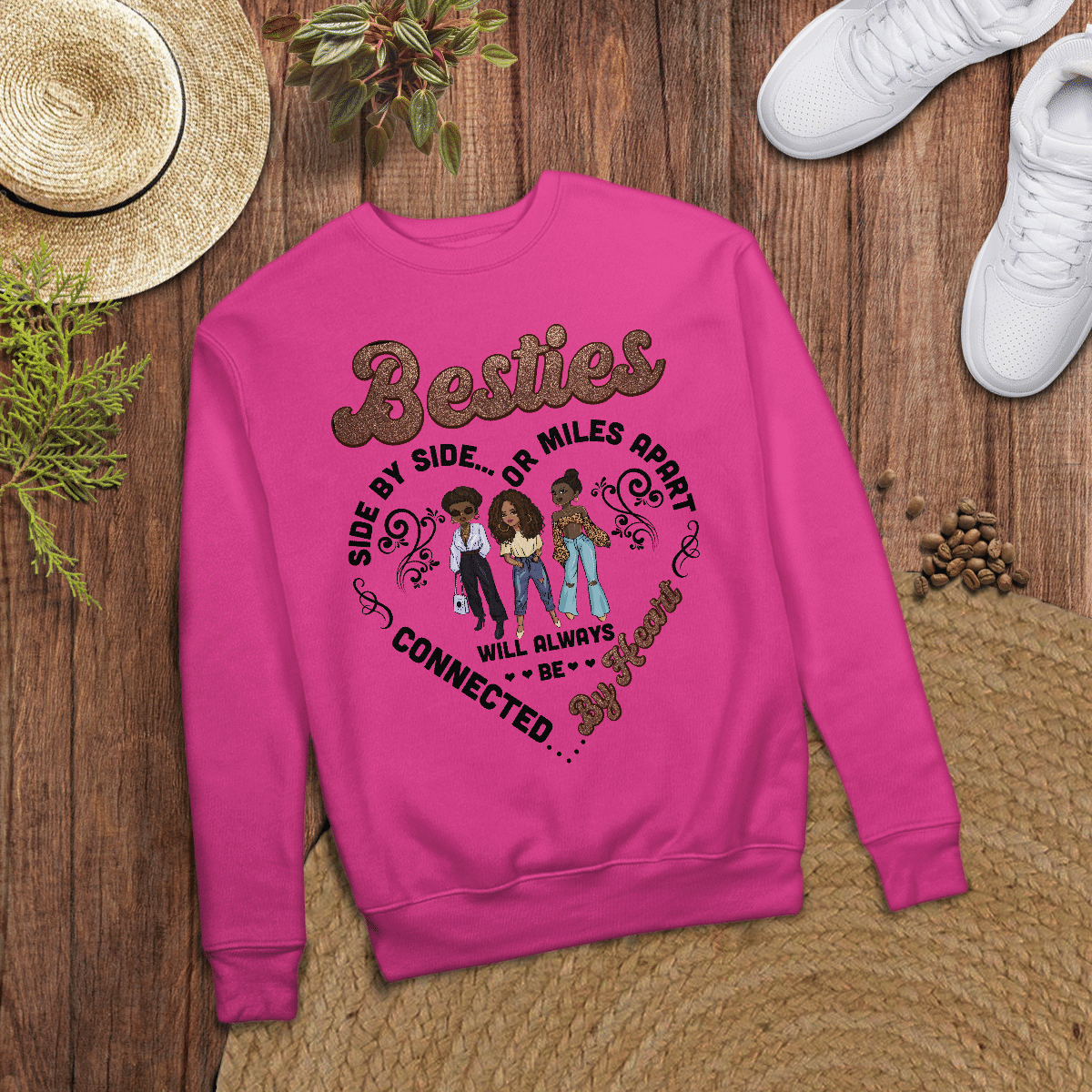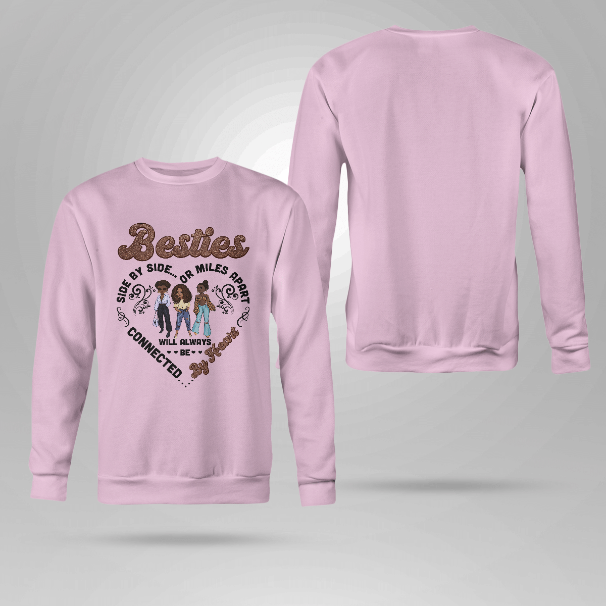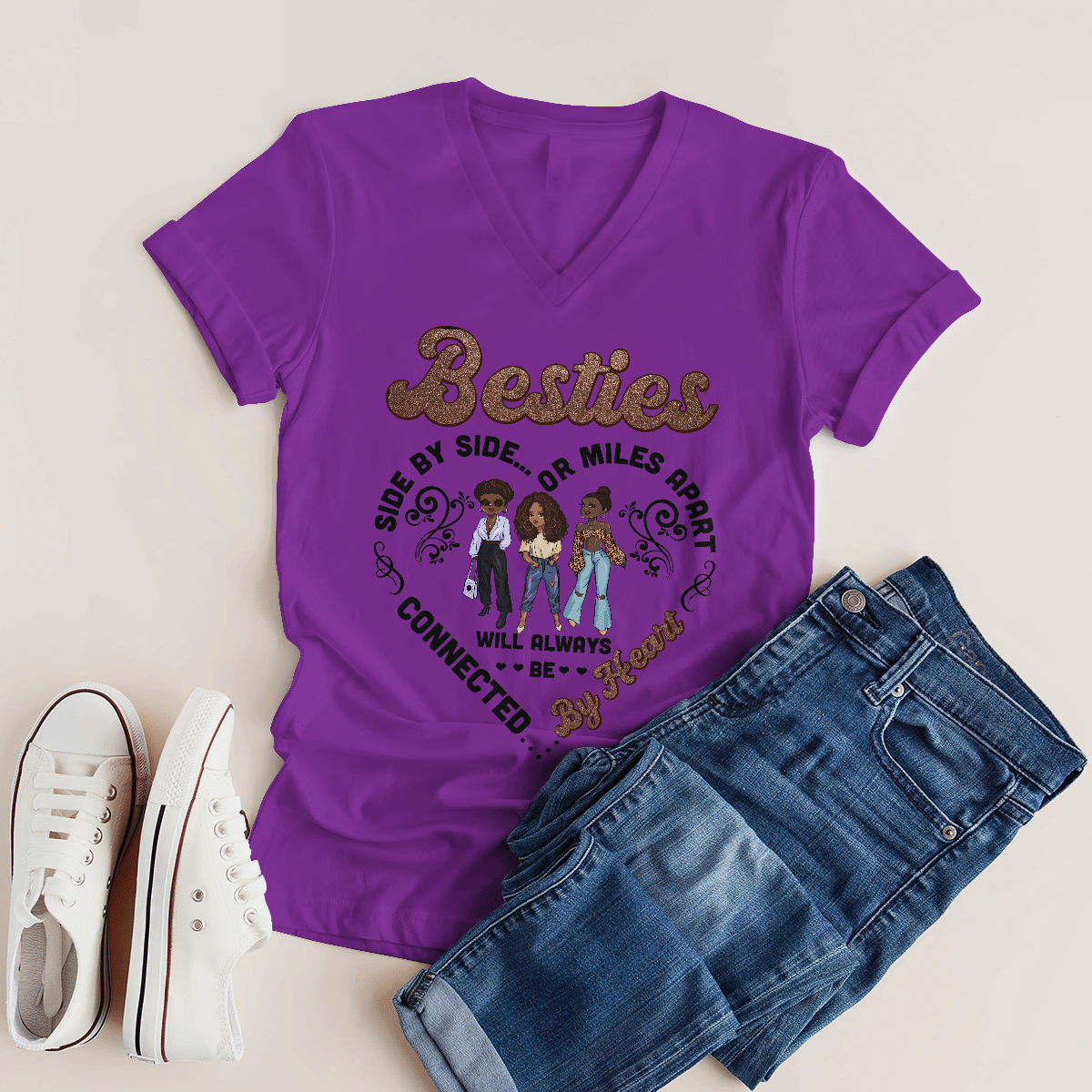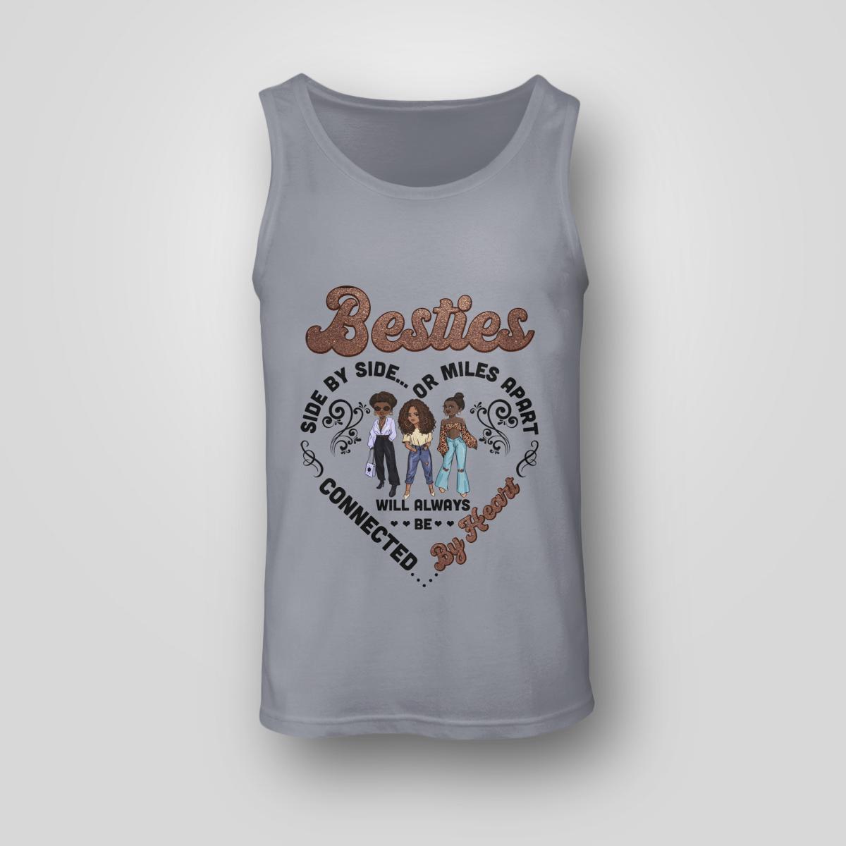 Besties Shirt For Sister Friends Shirts Side By Side Ormiles Apart Bestie Will Always Be Connected By Heart Tshirt