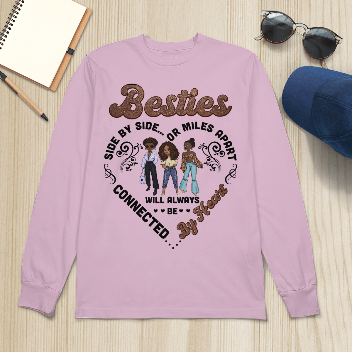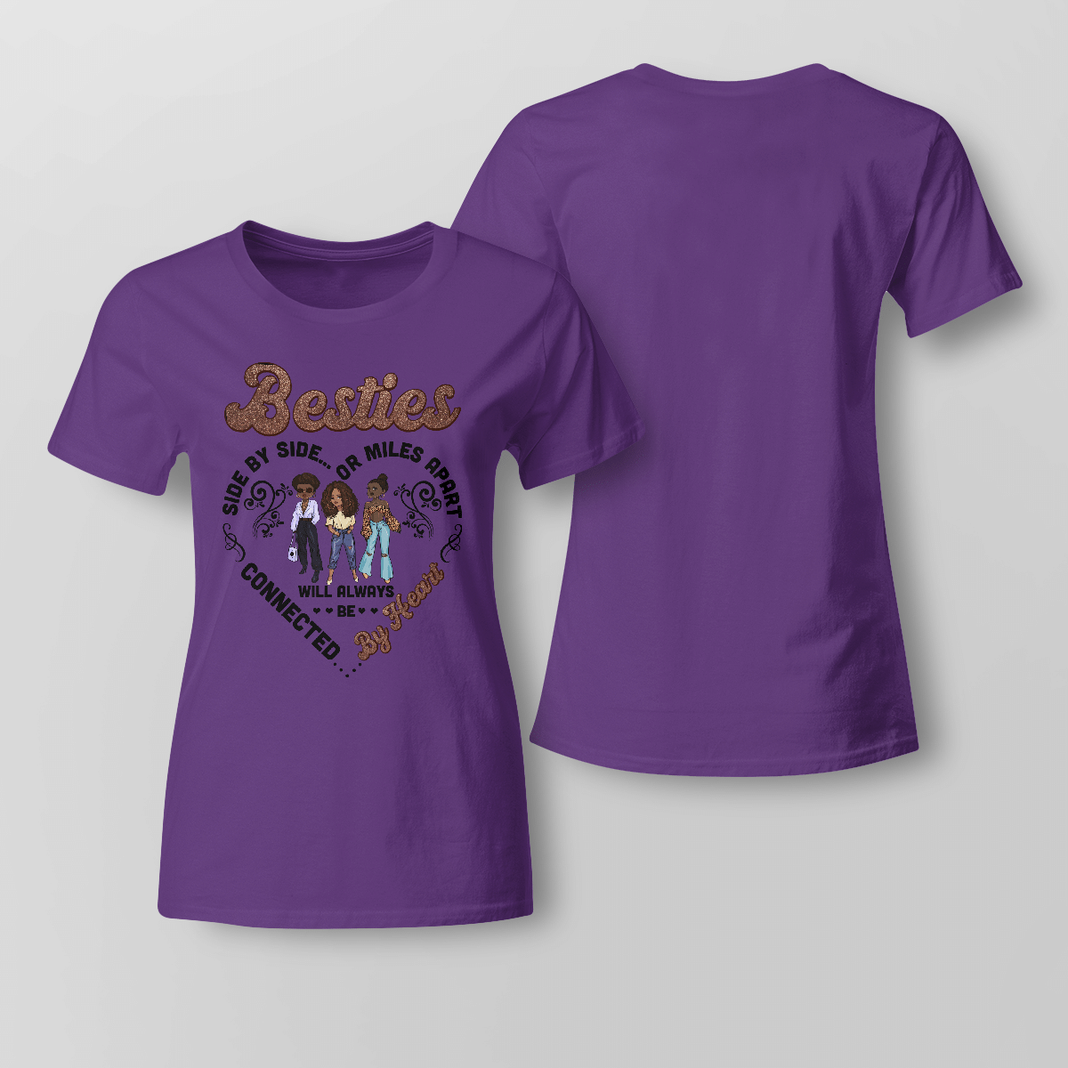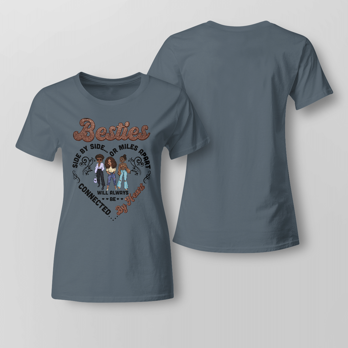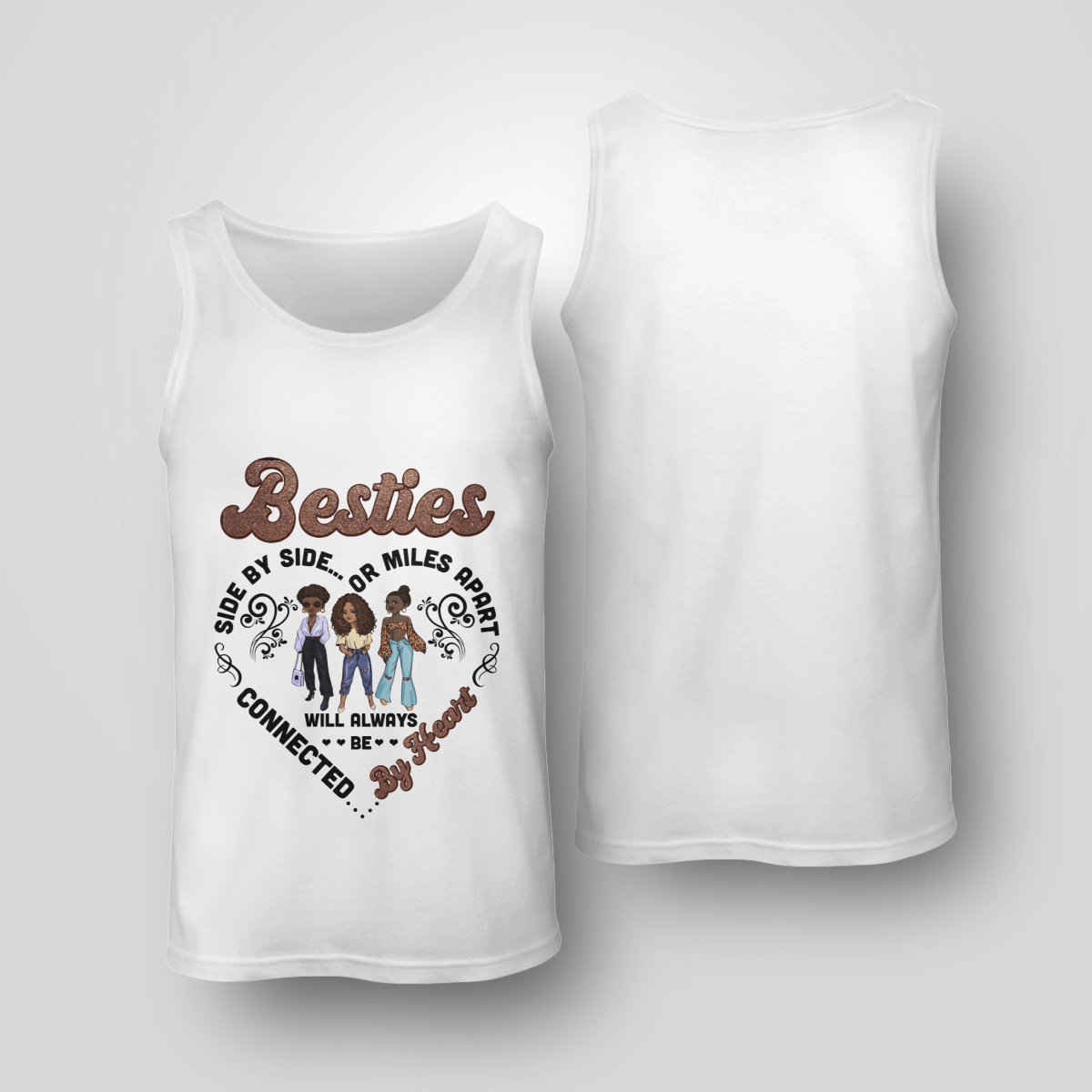 Our print-on-demand products are made with the highest quality materials, ensuring that your personalized Besties Shirt For Sister Friends Shirts Side By Side Ormiles Apart Bestie Will Always Be Connected By Heart Tshirt design looks great and feels comfortable. You can wear your new custom product with pride or give it as a unique and memorable gift that will be cherished for years to come.