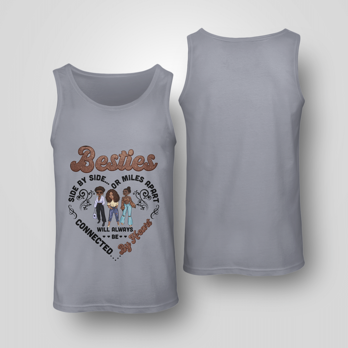 So whether you're looking to show off your own name or create a personalized gift for someone special, LateAndLow Store has got you covered. Start designing your own custom Besties Shirt For Sister Friends Shirts Side By Side Ormiles Apart Bestie Will Always Be Connected By Heart Tshirt print-on-demand product today, and let us bring your vision to life!