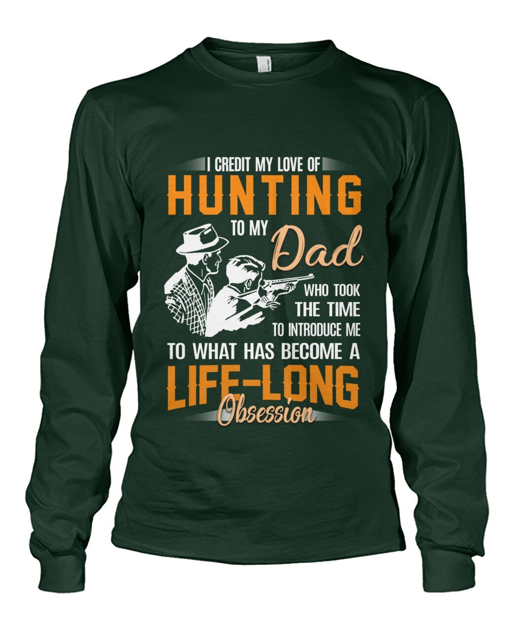 So whether you're looking to show off your own name or create a personalized gift for someone special, LateAndLow Store has got you covered. Start designing your own custom Black long-sleeved shirt Credit Love To A Hunting Dad print-on-demand product today, and let us bring your vision to life!