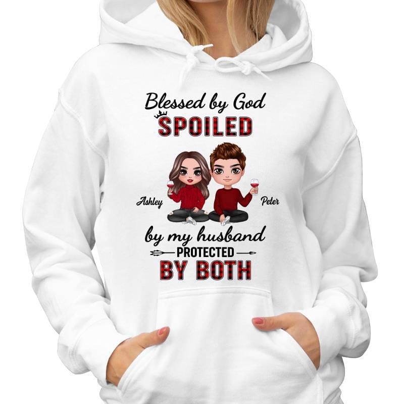 So whether you're looking to show off your own name or create a personalized gift for someone special, LateAndLow Store has got you covered. Start designing your own custom Blessed By God Doll Couple Valentine‘S Day Gift Personalized Hoodie Sweatshirt print-on-demand product today, and let us bring your vision to life!
