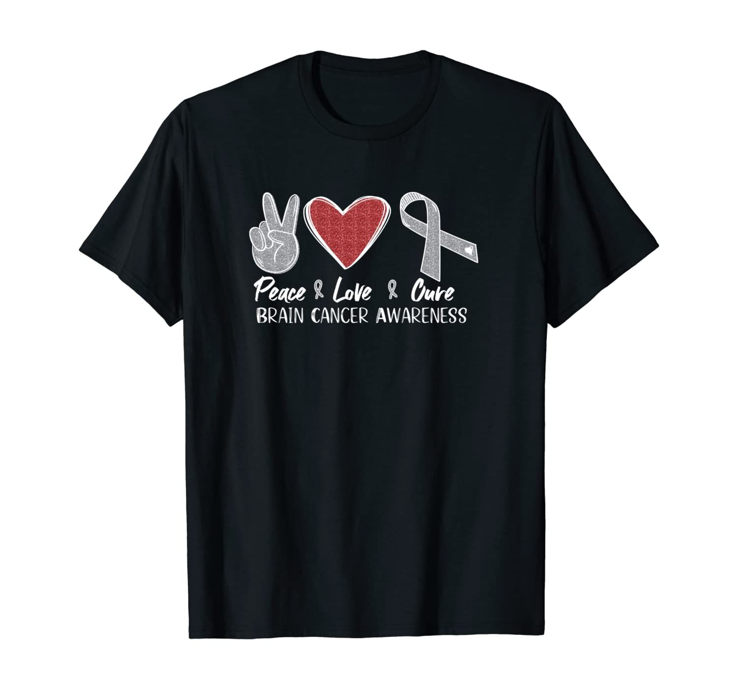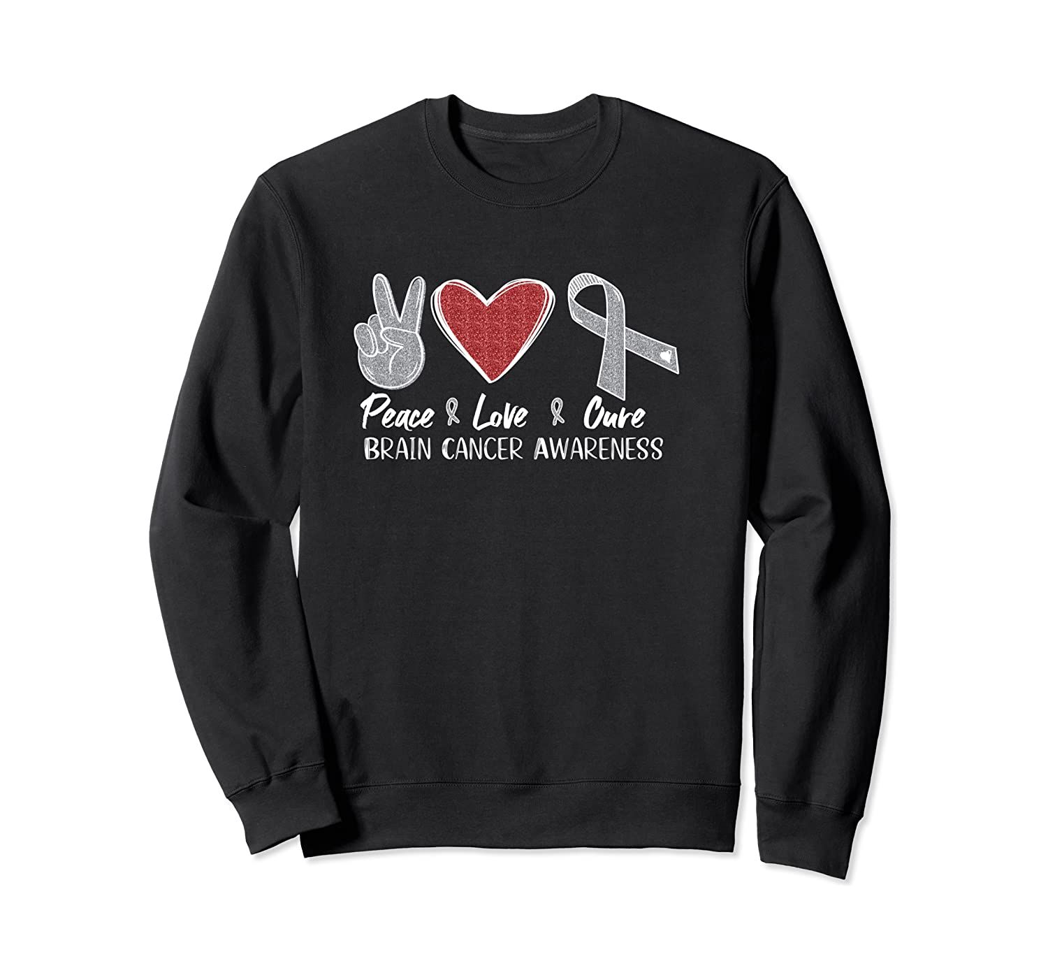 Brain Cancer Awareness Peace Love Cure Pullover Hoodie, T-Shirt, Sweatshirt