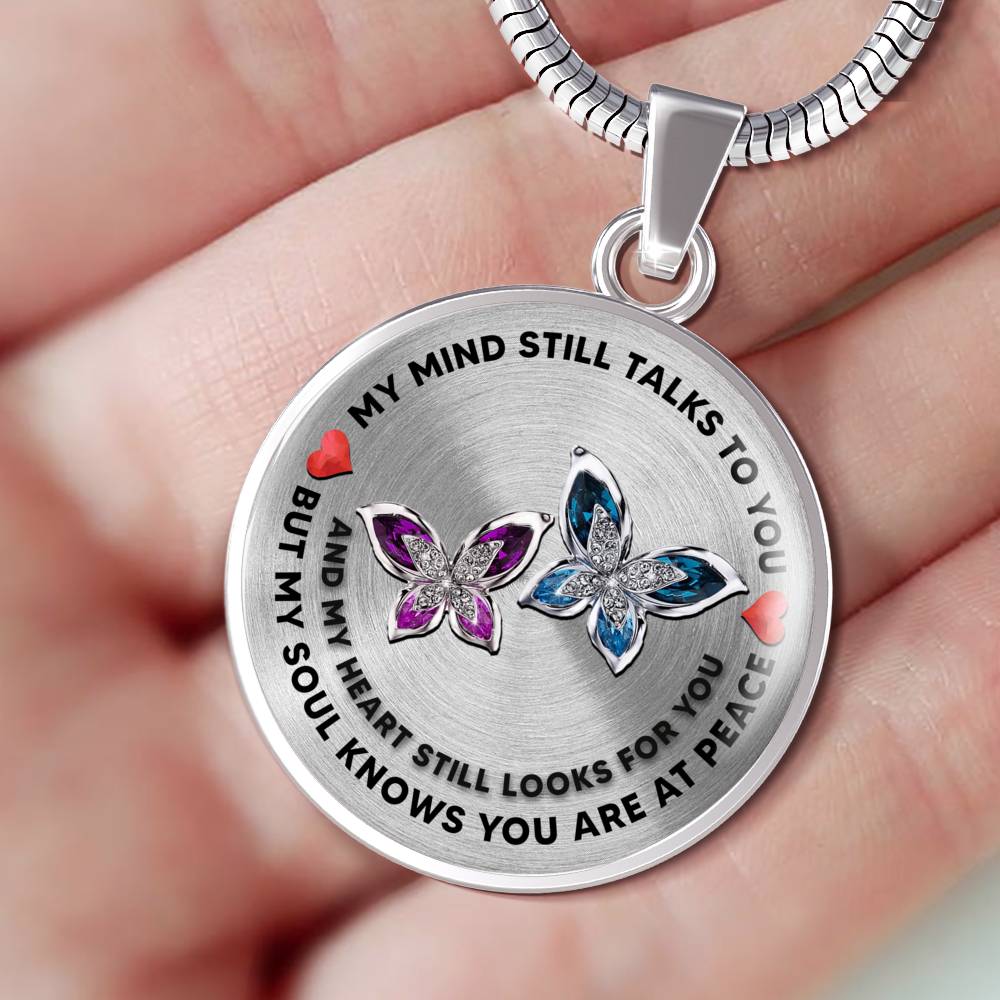 So whether you're looking to show off your own name or create a personalized gift for someone special, LateAndLow Store has got you covered. Start designing your own custom Butterflies My Mind Still Talks To You Couple 3D Gem Printed Luxury Necklace With Back Engraving Ver 2 print-on-demand product today, and let us bring your vision to life!